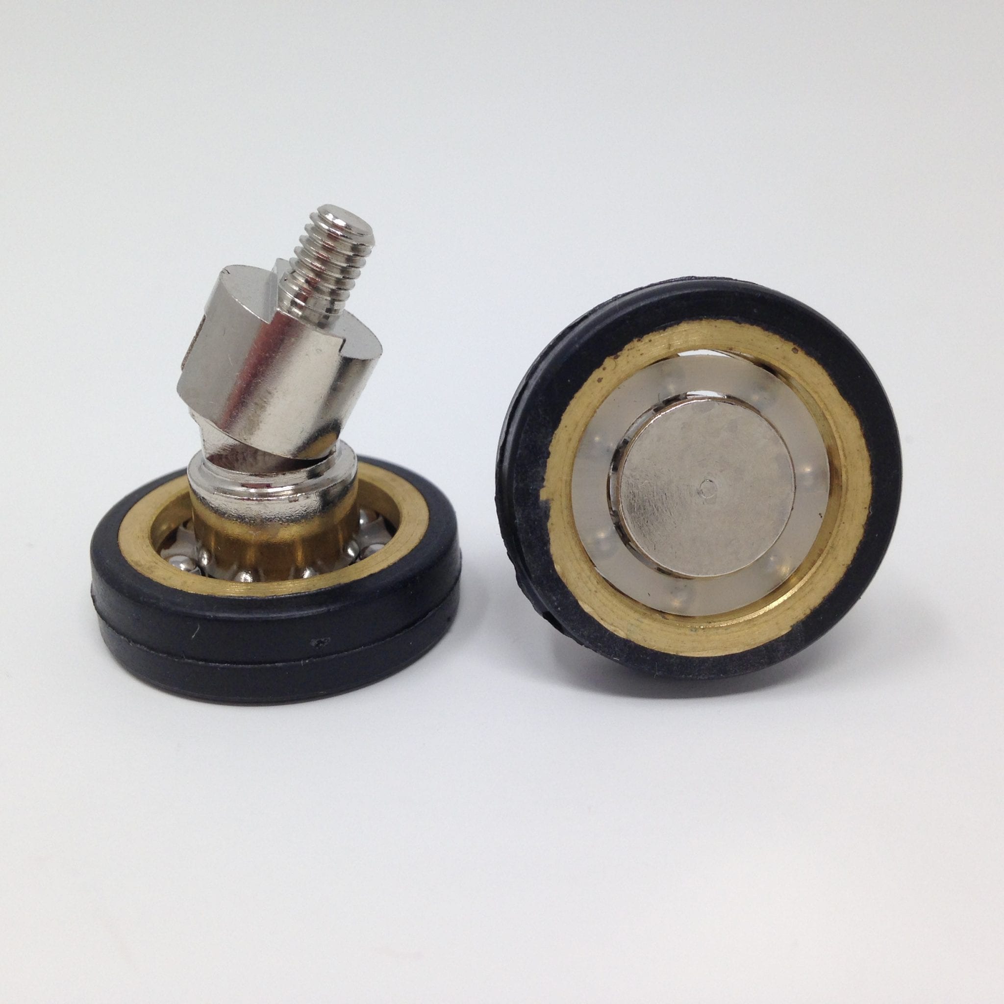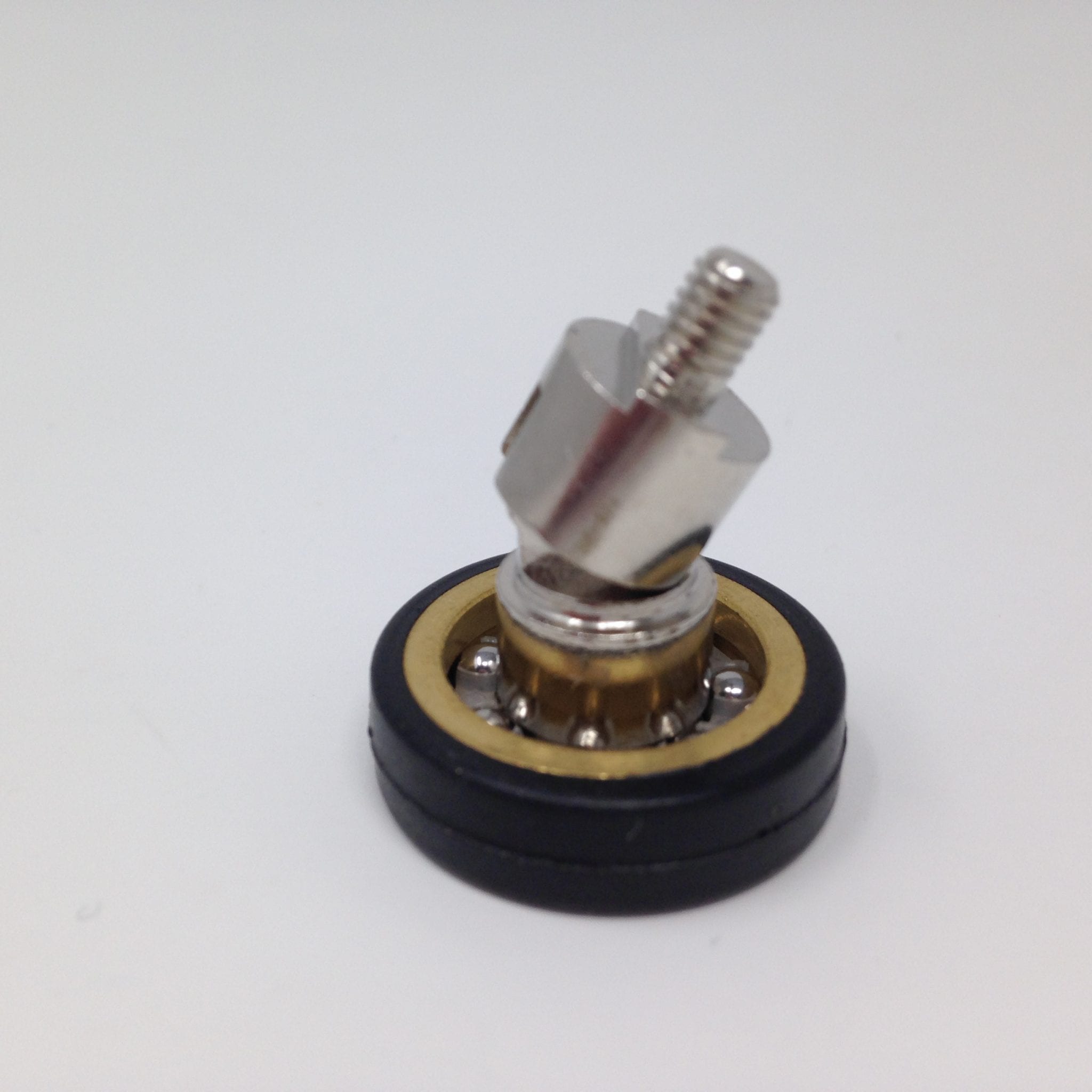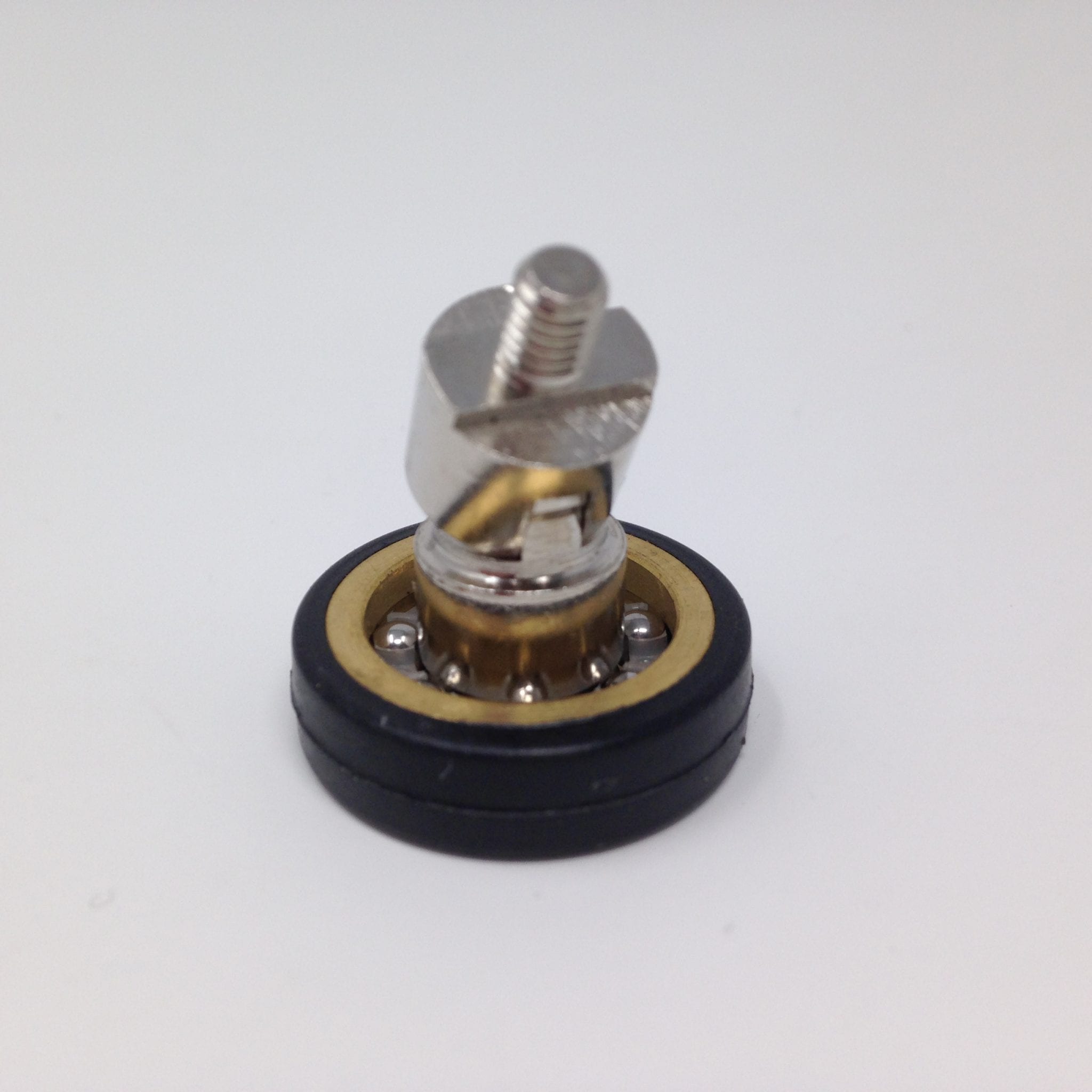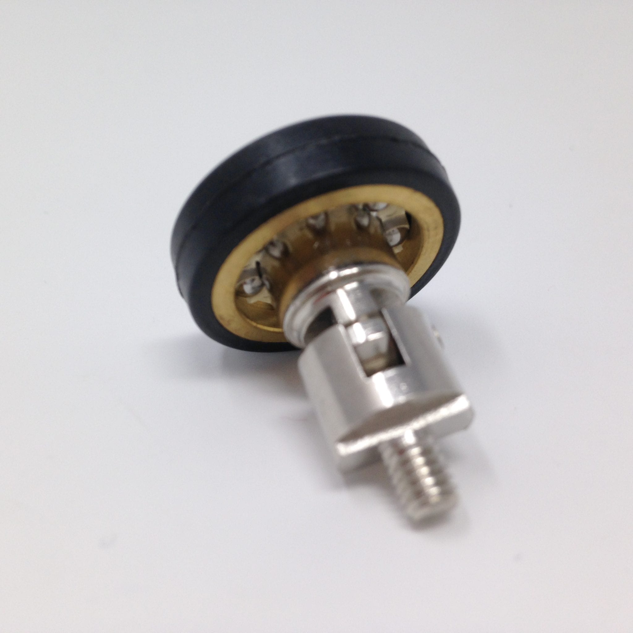 Roulette simple pour porte coulissante de cabine de douche. Vendue par lot de 2, cette roulette se compose d’un corps en laiton. Le bandage plat de la roulette est en téflon, recouvrant un roulement à billes étanche en acier inoxydable. Le choix et la qualité des matériaux employés offrent une utilisation optimale de confort, limitant ainsi le frottement et le bruit lors de la manipulation de la porte.