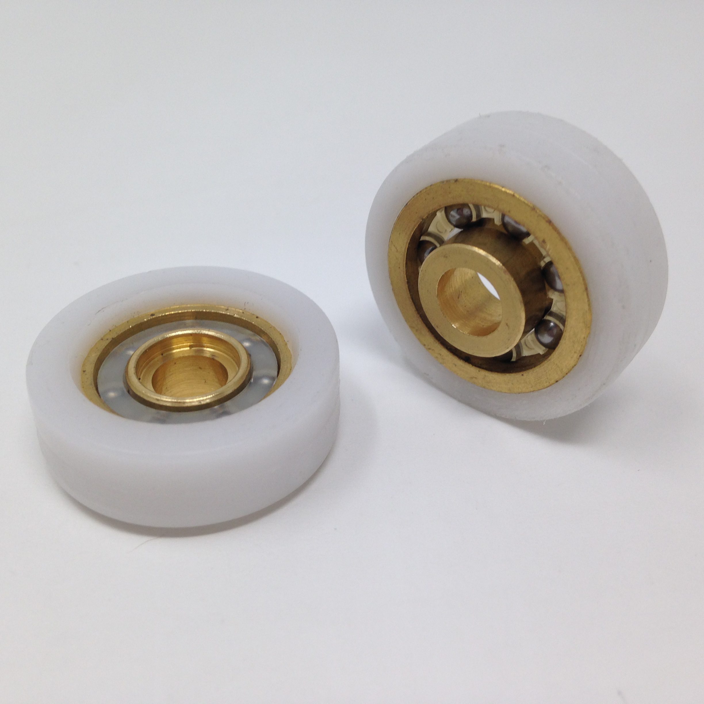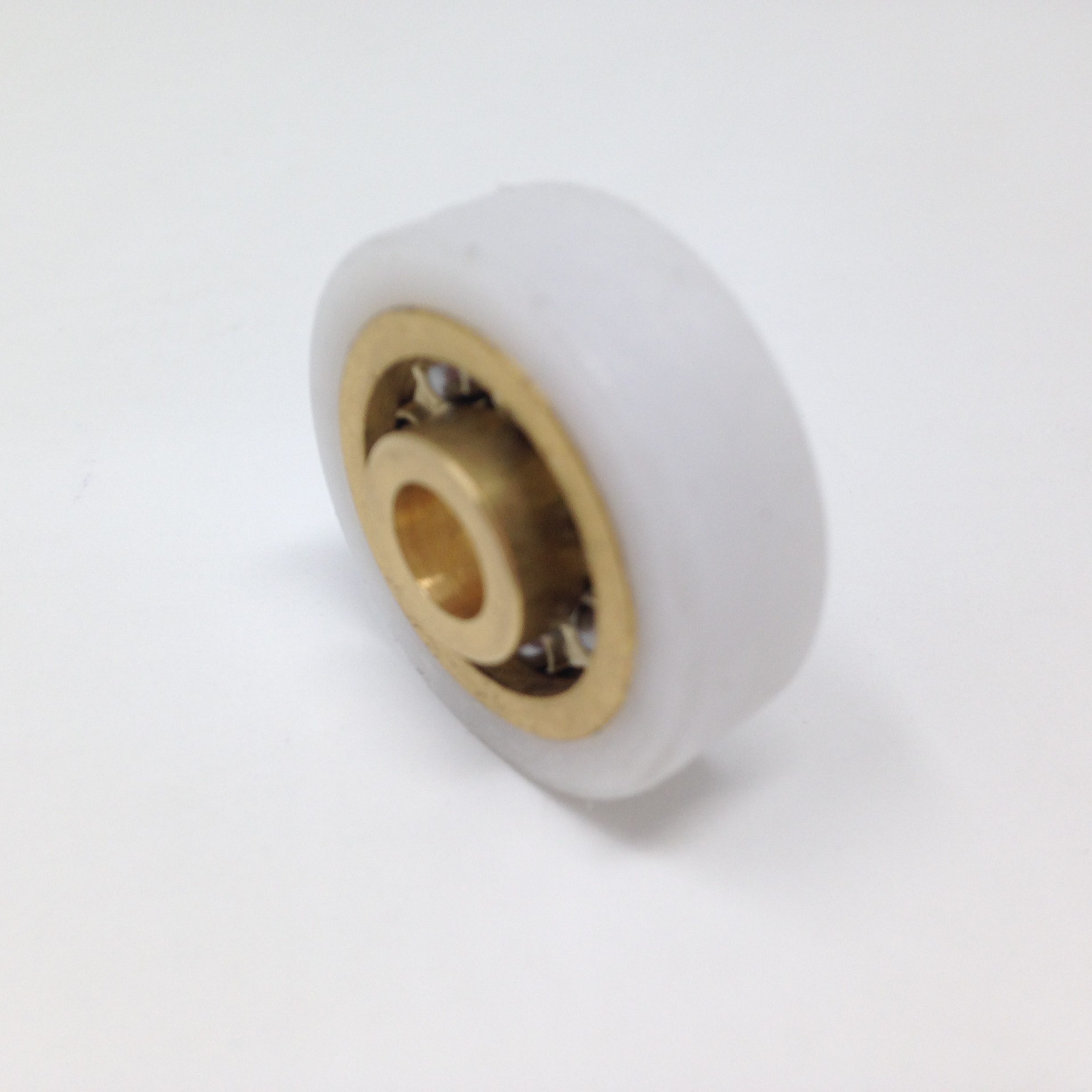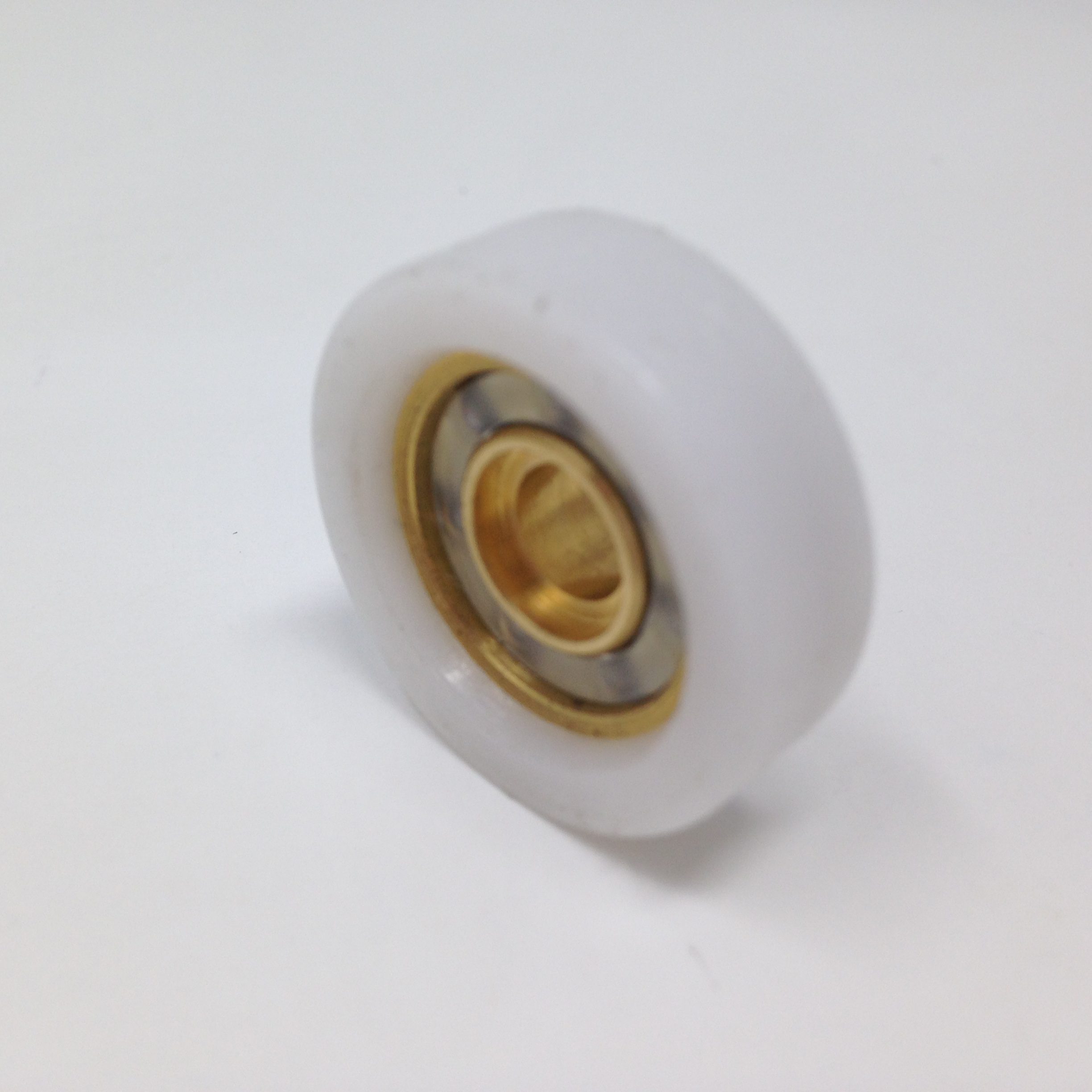 Roulette simple pour porte coulissante de cabine de douche. Vendue pat lot de 2, cette roulette se compose d’un corps en acier inoxydable. Le bandage de la roulette est en téflon, recouvrant un roulement à billes étanche en acier inoxydable. Le choix et la qualité des matériaux employés offrent une utilisation optimale de confort, limitant ainsi le frottement et le bruit lors de la manipulation de la porte.