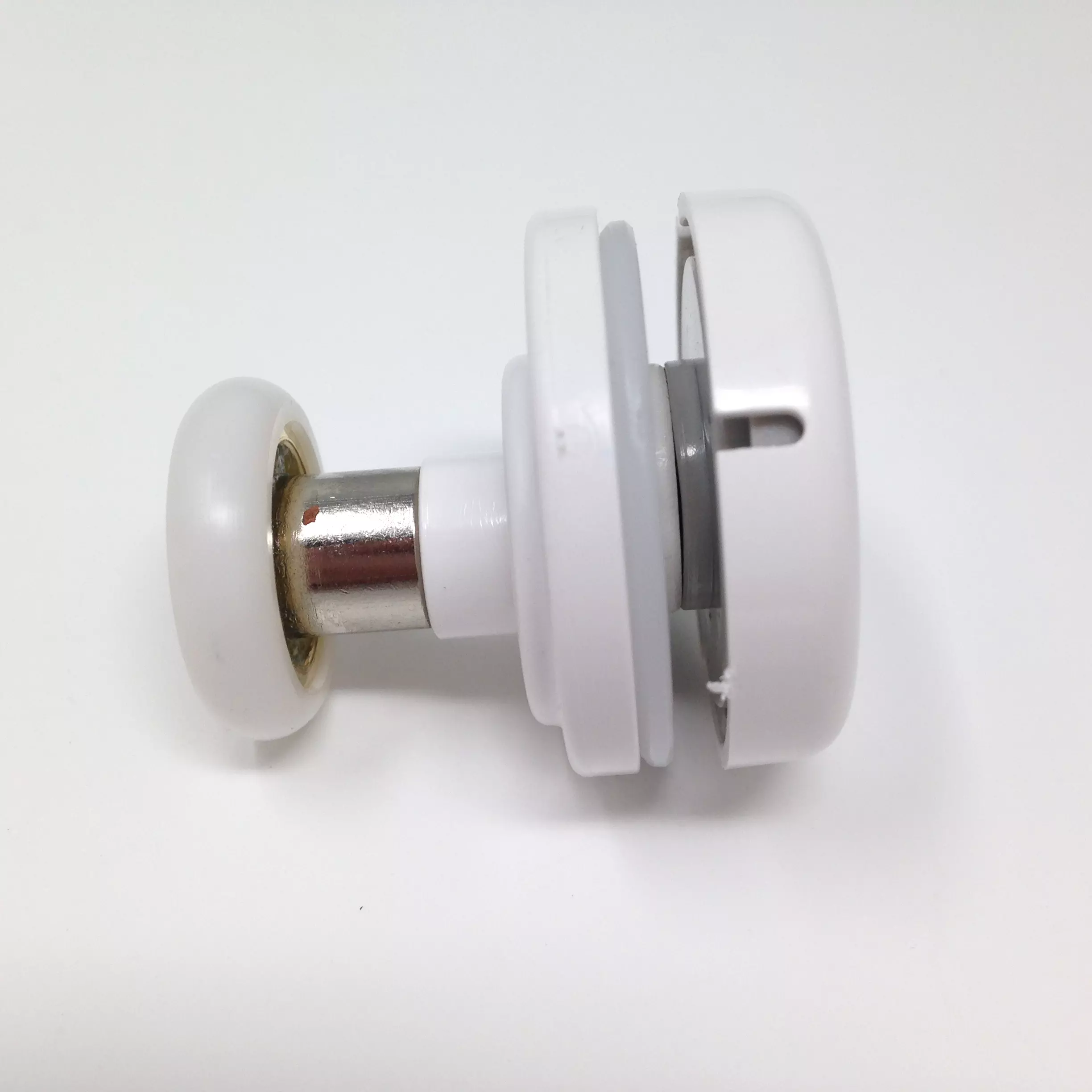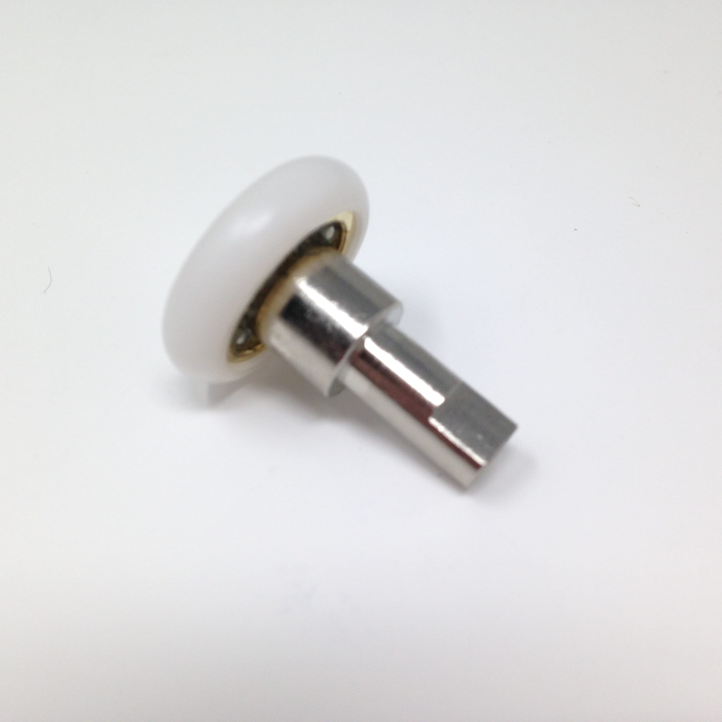 Roulette droite simple pour porte coulissante de cabine de douche. Vendues par lot de 2, ces roulettes se composent d’un corps en laiton ou en alliage de zinc et d’éléments de soutien en plastique type ABS. Le bandage de la roulette est en téflon, recouvrant un roulement à billes étanche en acier inoxydable. Le choix et la qualité des matériaux employés offrent une utilisation optimale de confort, limitant ainsi le frottement et le bruit lors de la manipulation de la porte.