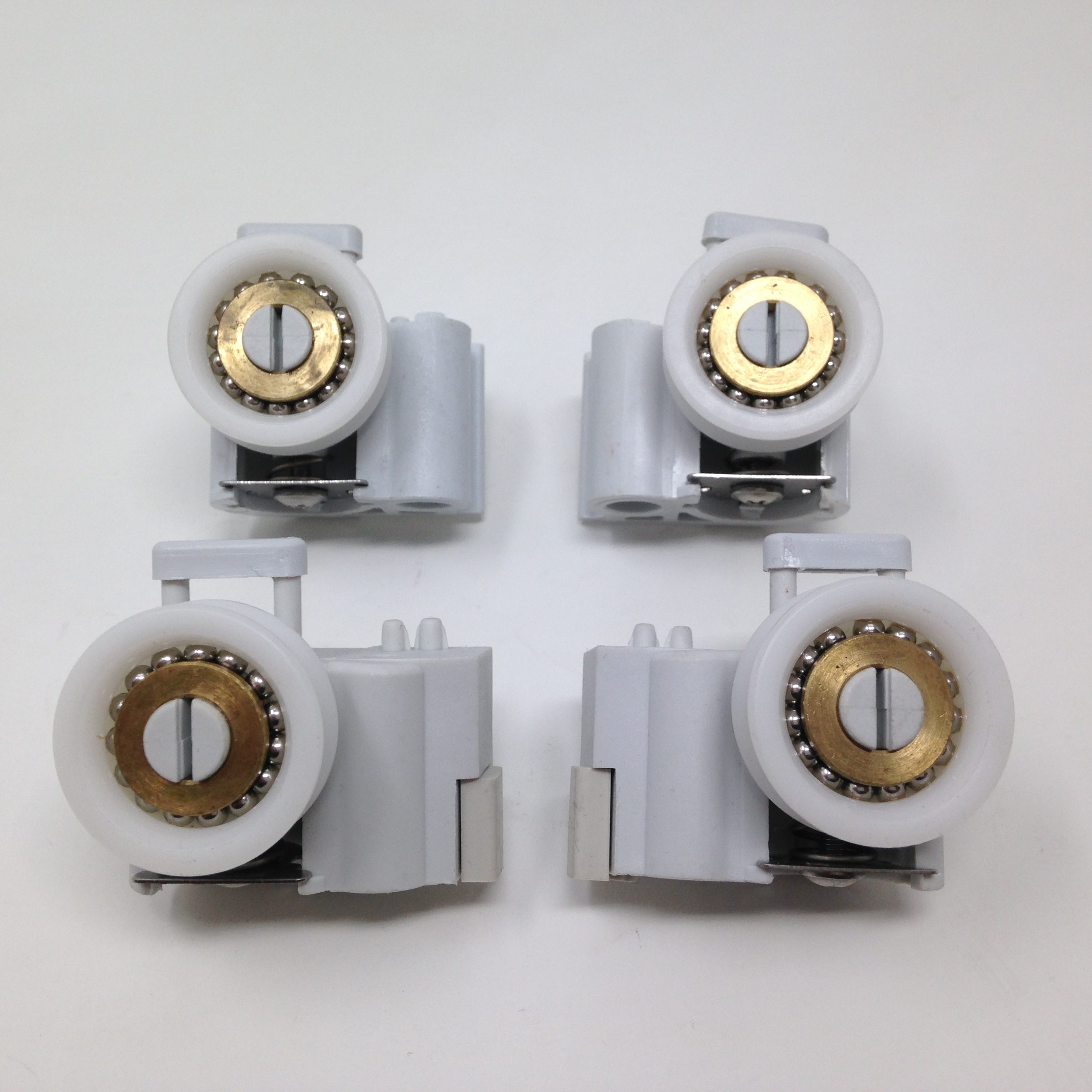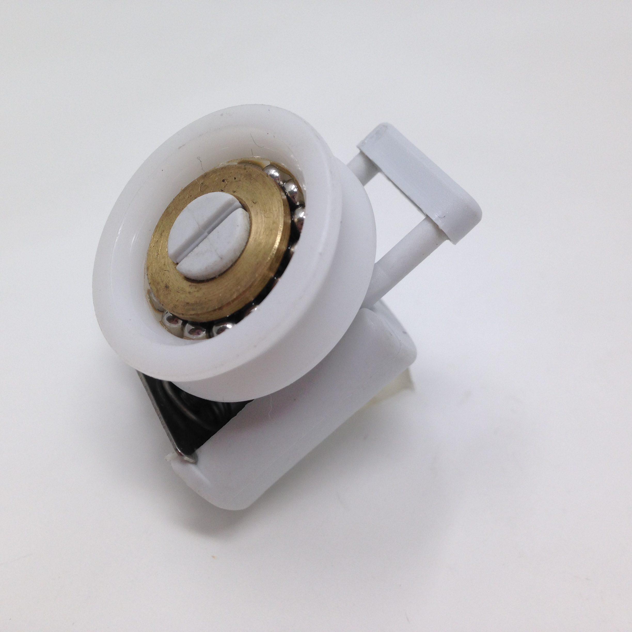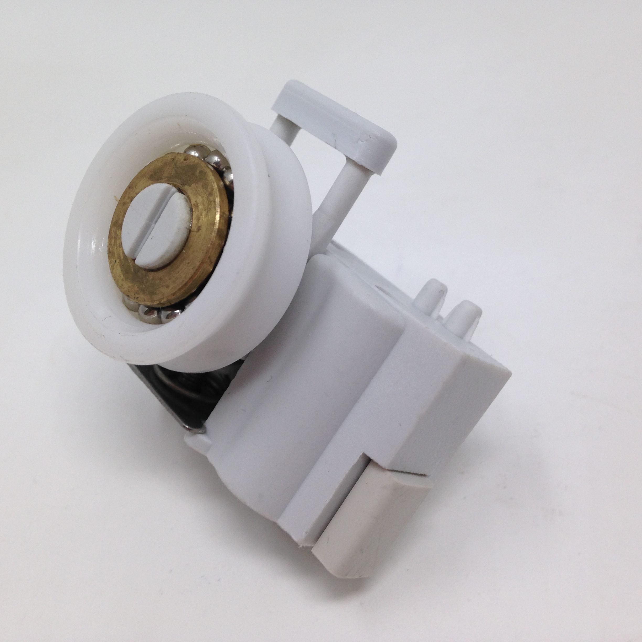 guide cabine douche NOVELLINI – mesroulettes.comRoulette simple articulée pour porte coulissante de cabine de douche. Vendue par lot de 4, cette roulette se compose d’un corps en plastique type ABS et en laiton. Le bandage de la roulette est en téflon. Le choix et la qualité des matériaux employés offrent une utilisation optimale de confort, limitant ainsi le frottement et le bruit lors de la manipulation de la porte.