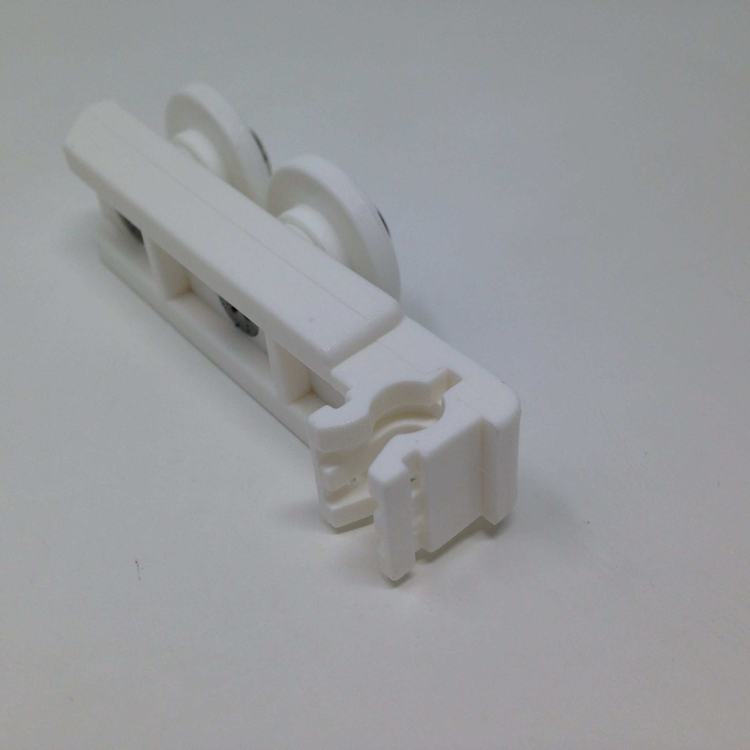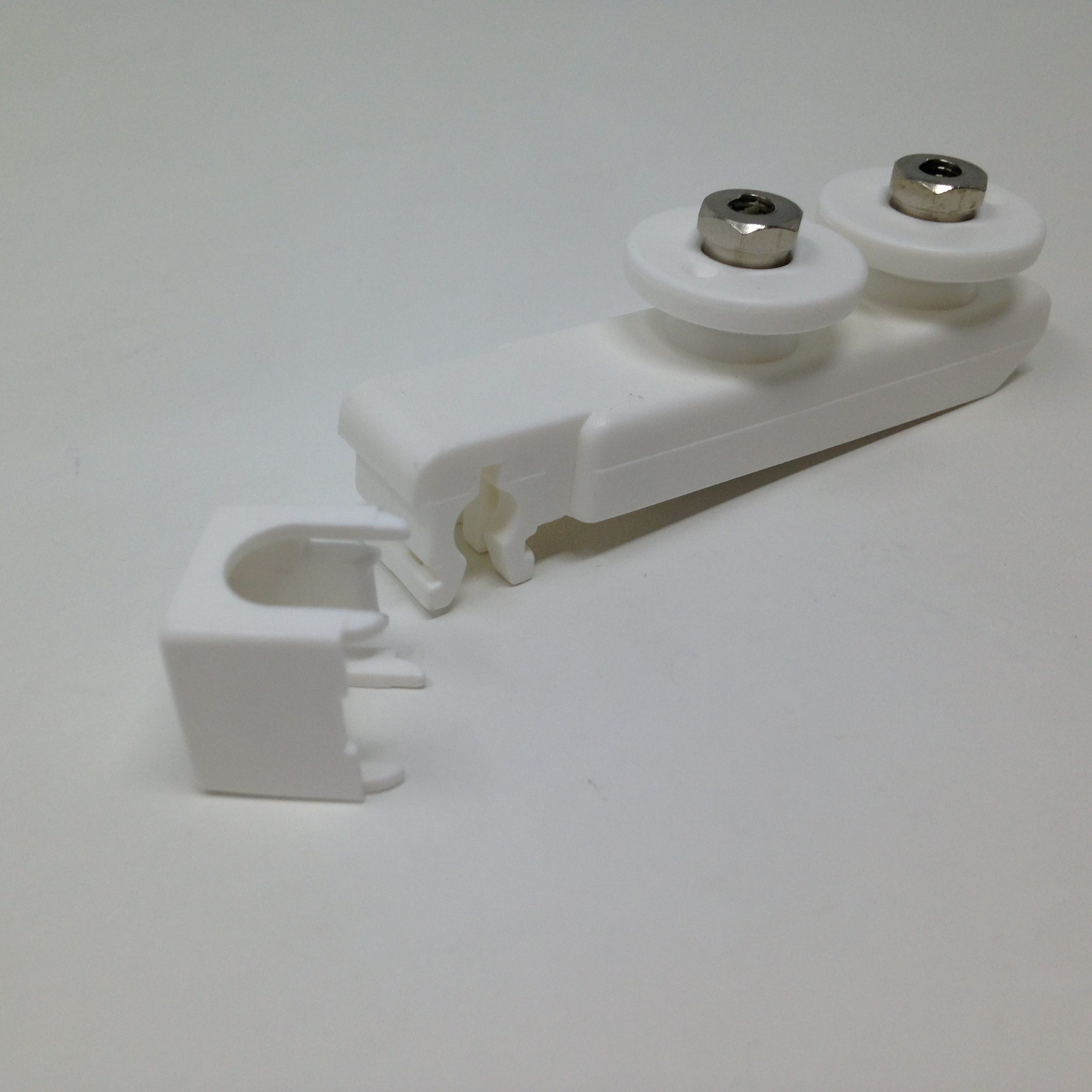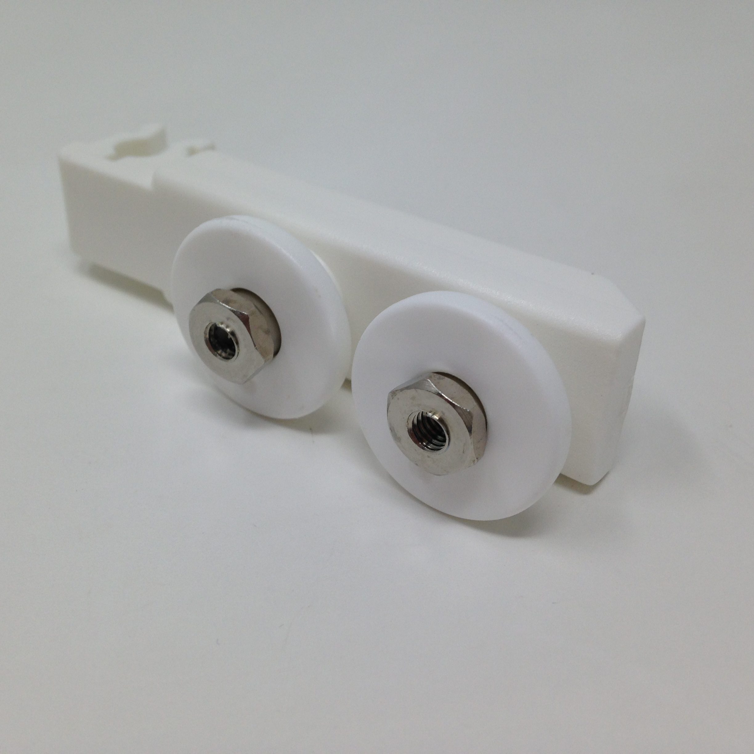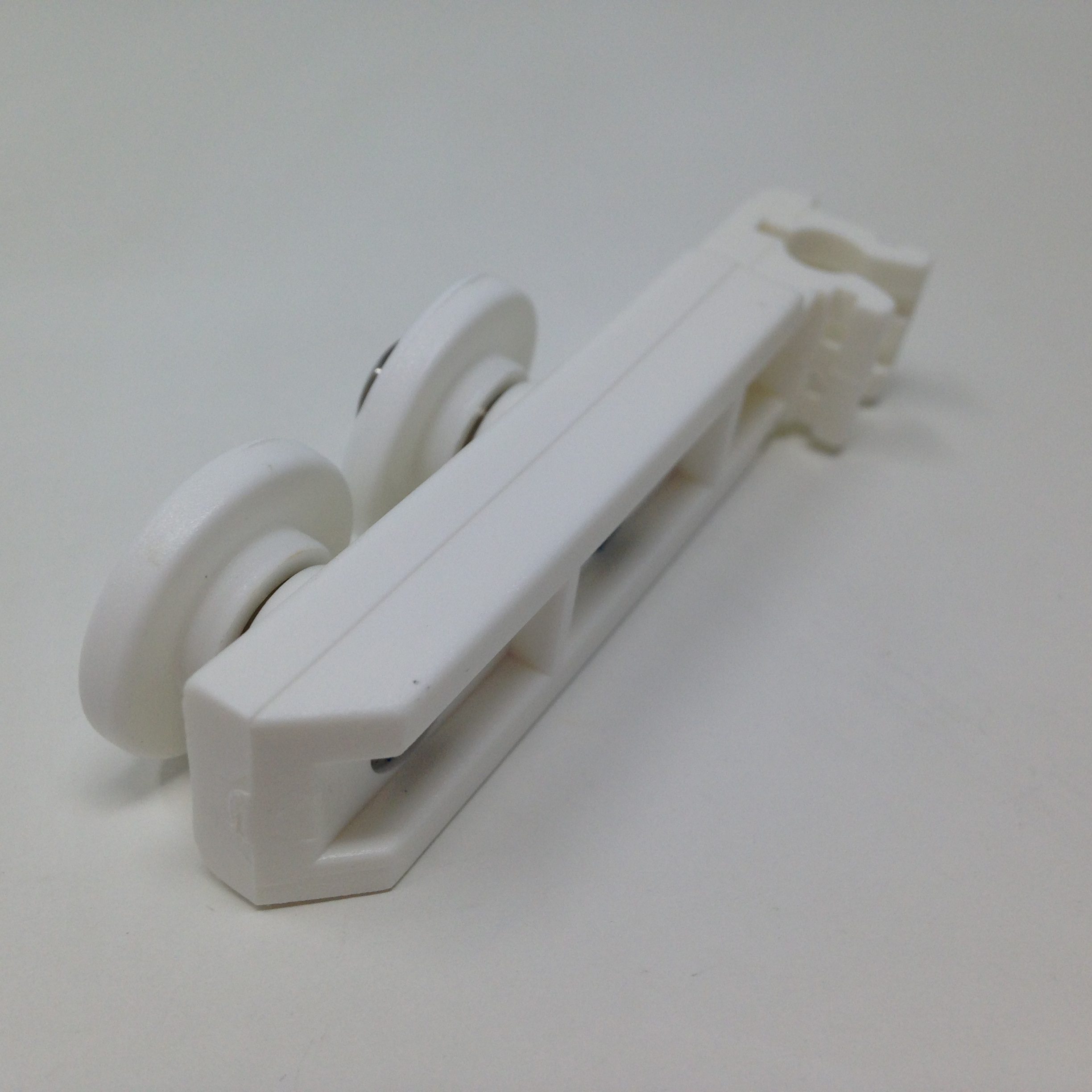 Roulette double pour porte coulissante de cabine de douche. Vendues à l’unité, cette roulette se compose d’un corps en laiton et d’éléments de soutien en plastique type ABS. Le bandage de la roulette est en téflon, recouvrant un roulement à billes étanche en acier inoxydable. Le choix et la qualité des matériaux employés offrent une utilisation optimale de confort, limitant ainsi le frottement et le bruit lors de la manipulation de la porte.