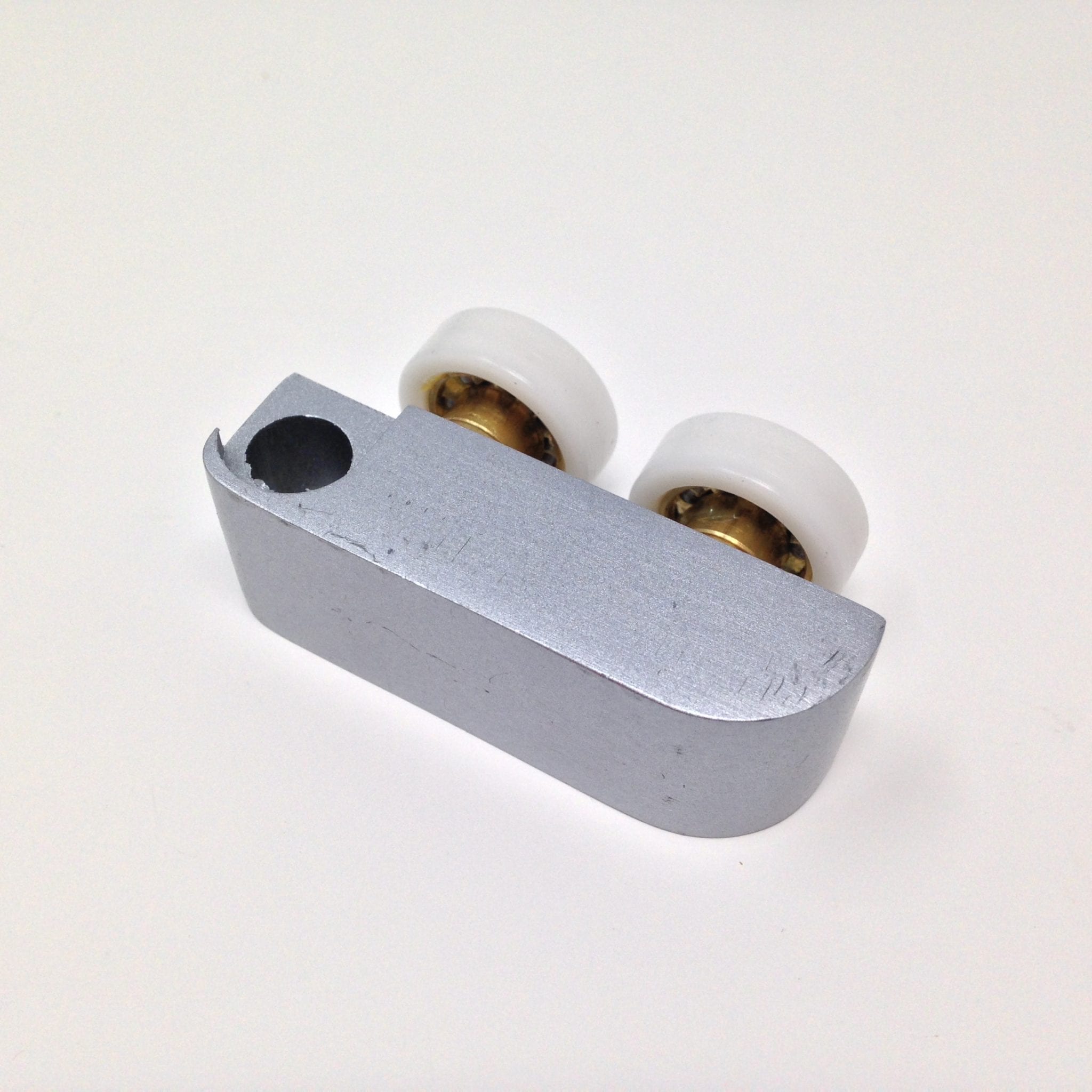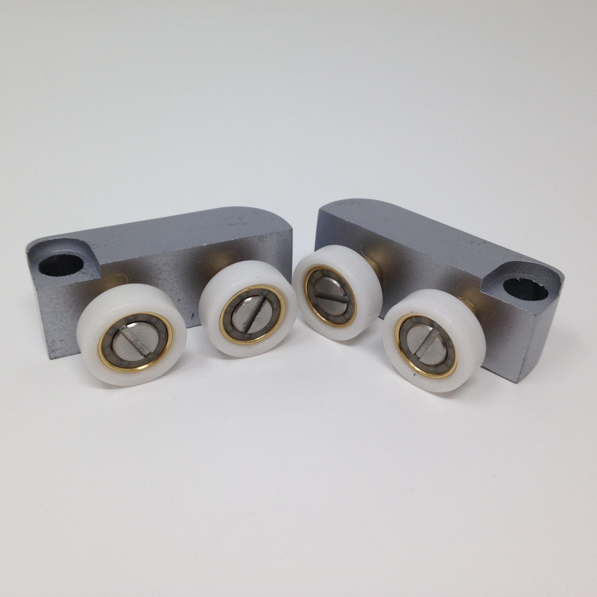 Roulette double pour porte coulissante de cabine de douche. Vendue par lot de 2, cette roulette se compose d’un corps en plastique type ABS et en laiton. Le bandage de la roulette est en téflon. Le choix et la qualité des matériaux employés offrent une utilisation optimale de confort, limitant ainsi le frottement et le bruit lors de la manipulation de la porte.