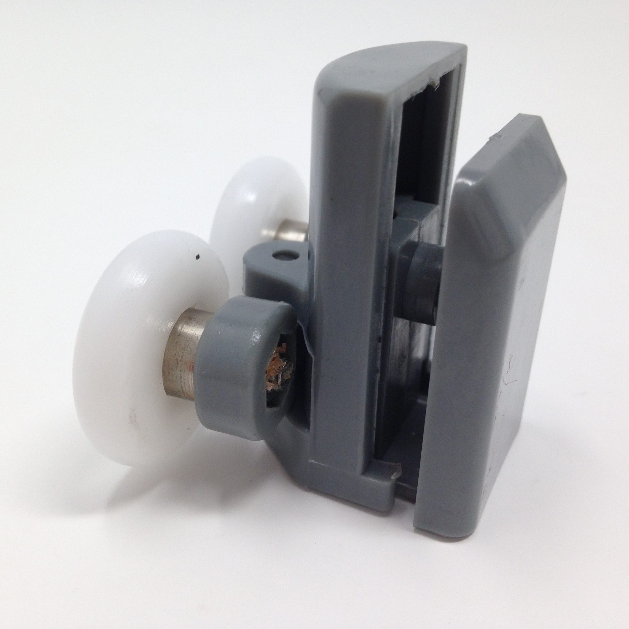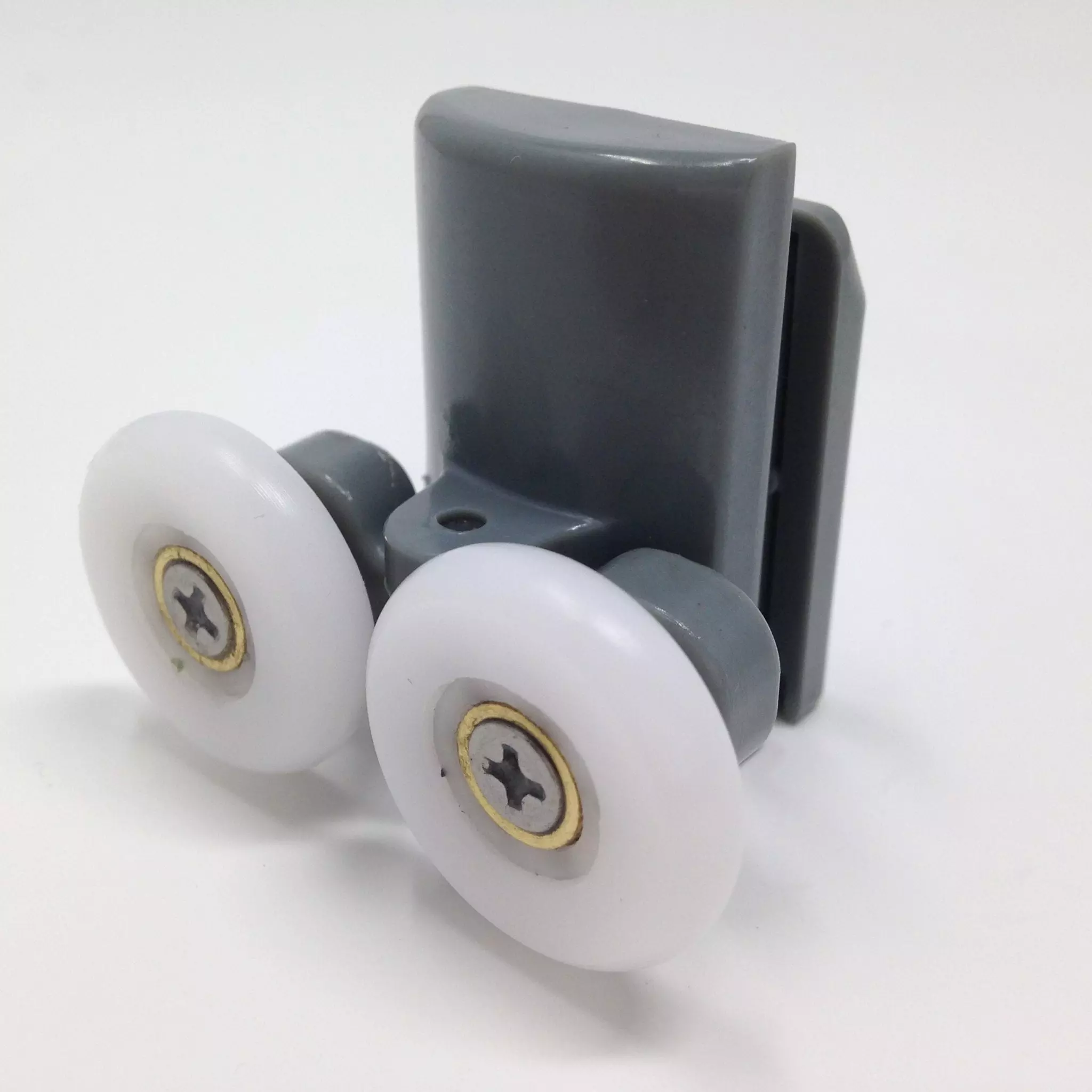 Roulette double pour porte coulissante de cabine de douche. Vendue par lot de 2, cette roulette se compose d’un corps en laiton et d’éléments de soutien en plastique type ABS. Le bandage de la roulette est en téflon, recouvrant un roulement à billes étanche en acier inoxydable. Le choix et la qualité des matériaux employés offrent une utilisation optimale de confort, limitant ainsi le frottement et le bruit lors de la manipulation de la porte.