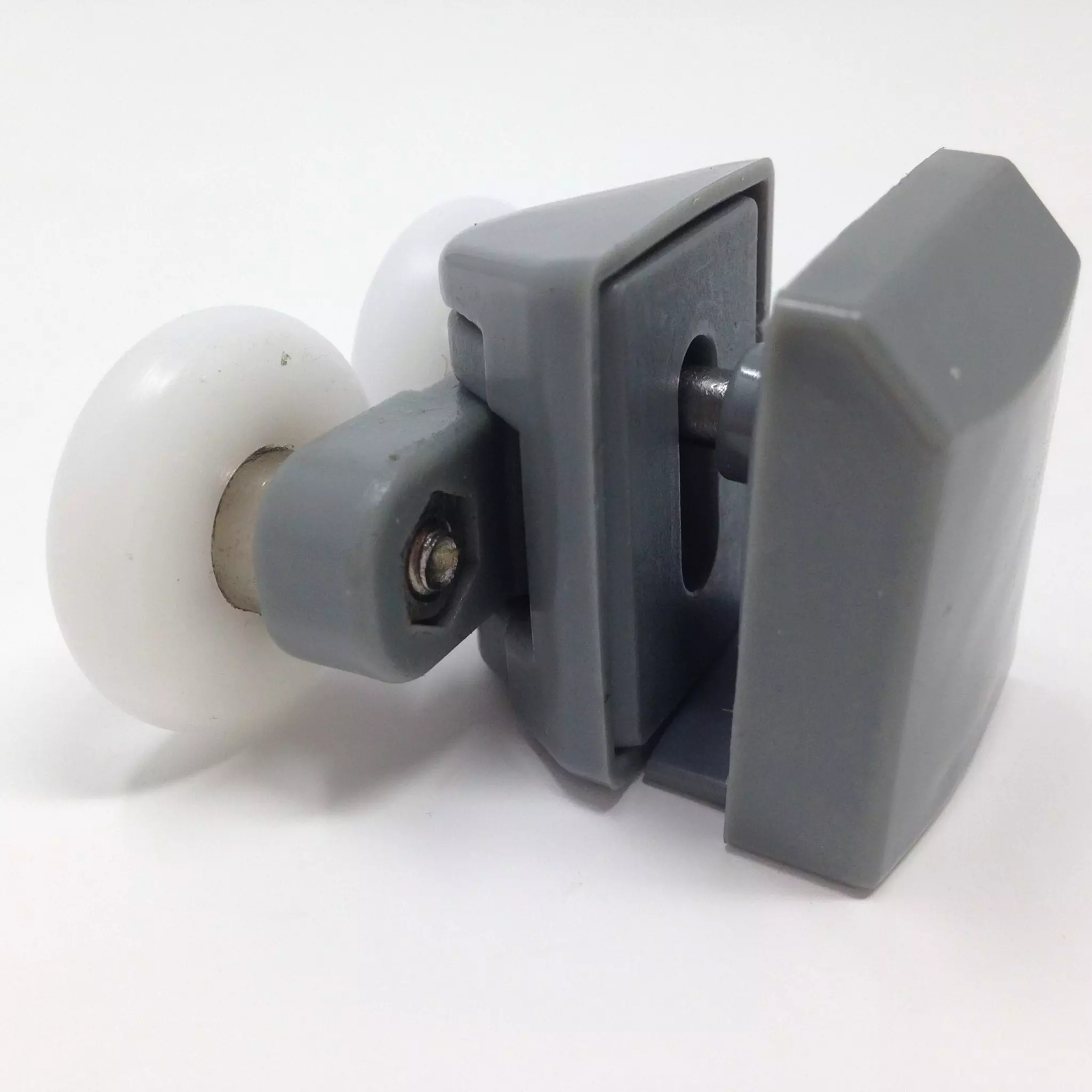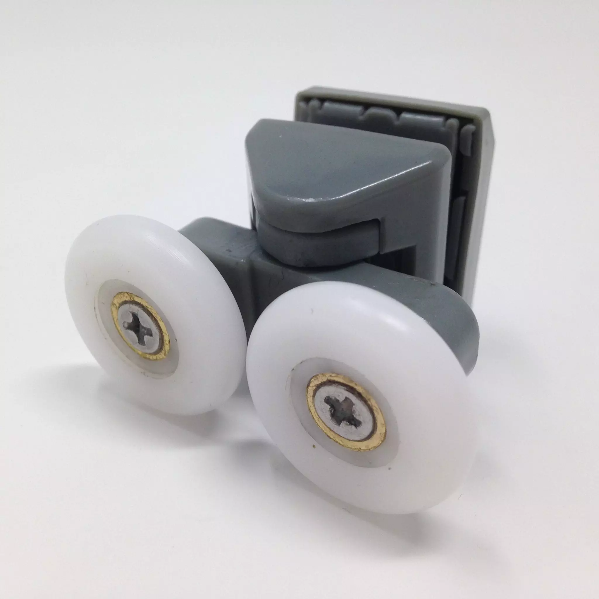 Roulette double pour porte coulissante de cabine de douche. Vendue par lot de 2, cette roulette se compose d’un corps en laiton et d’éléments de soutien en plastique type ABS. Le bandage de la roulette est en téflon, recouvrant un roulement à billes étanche en acier inoxydable. Le choix et la qualité des matériaux employés offrent une utilisation optimale de confort, limitant ainsi le frottement et le bruit lors de la manipulation de la porte.