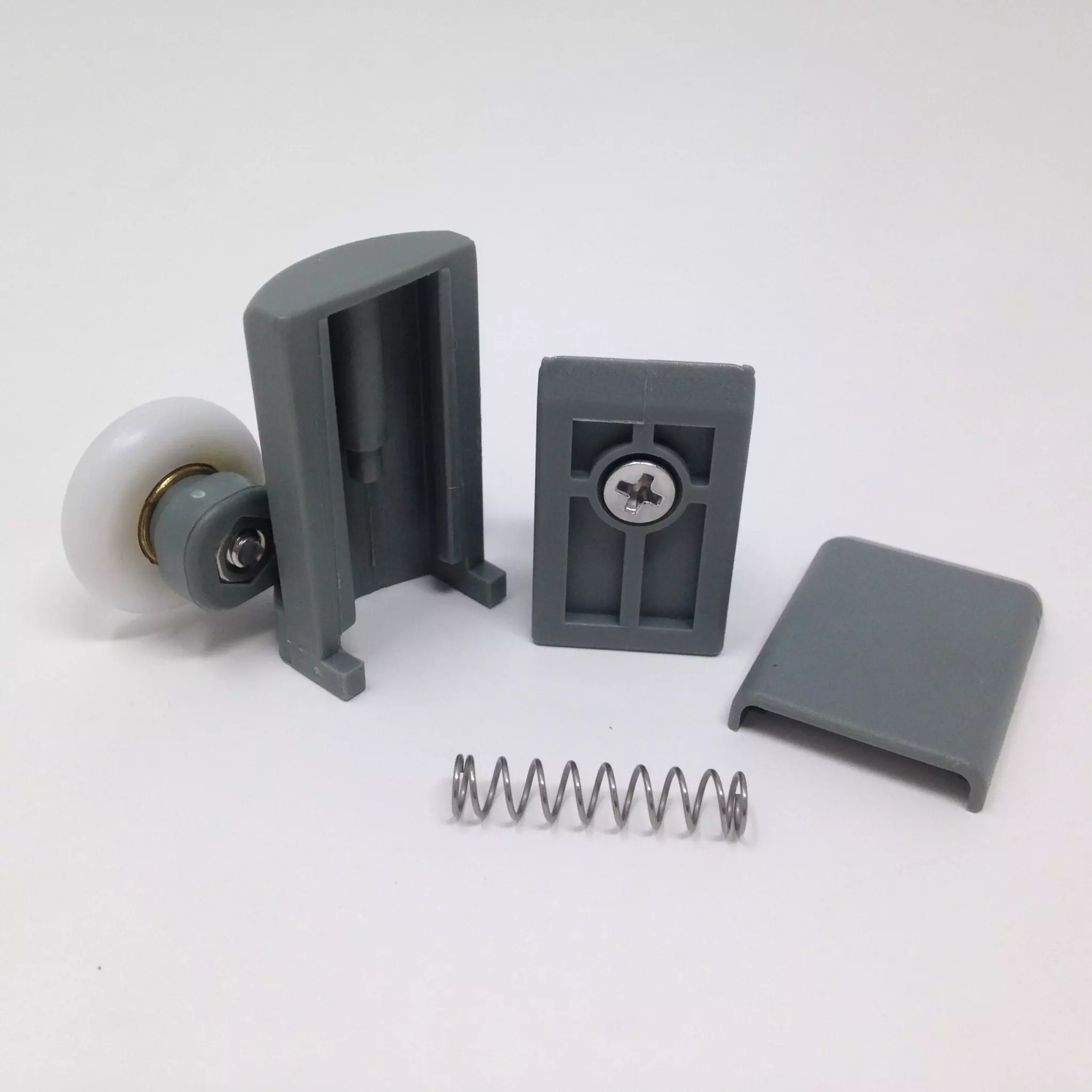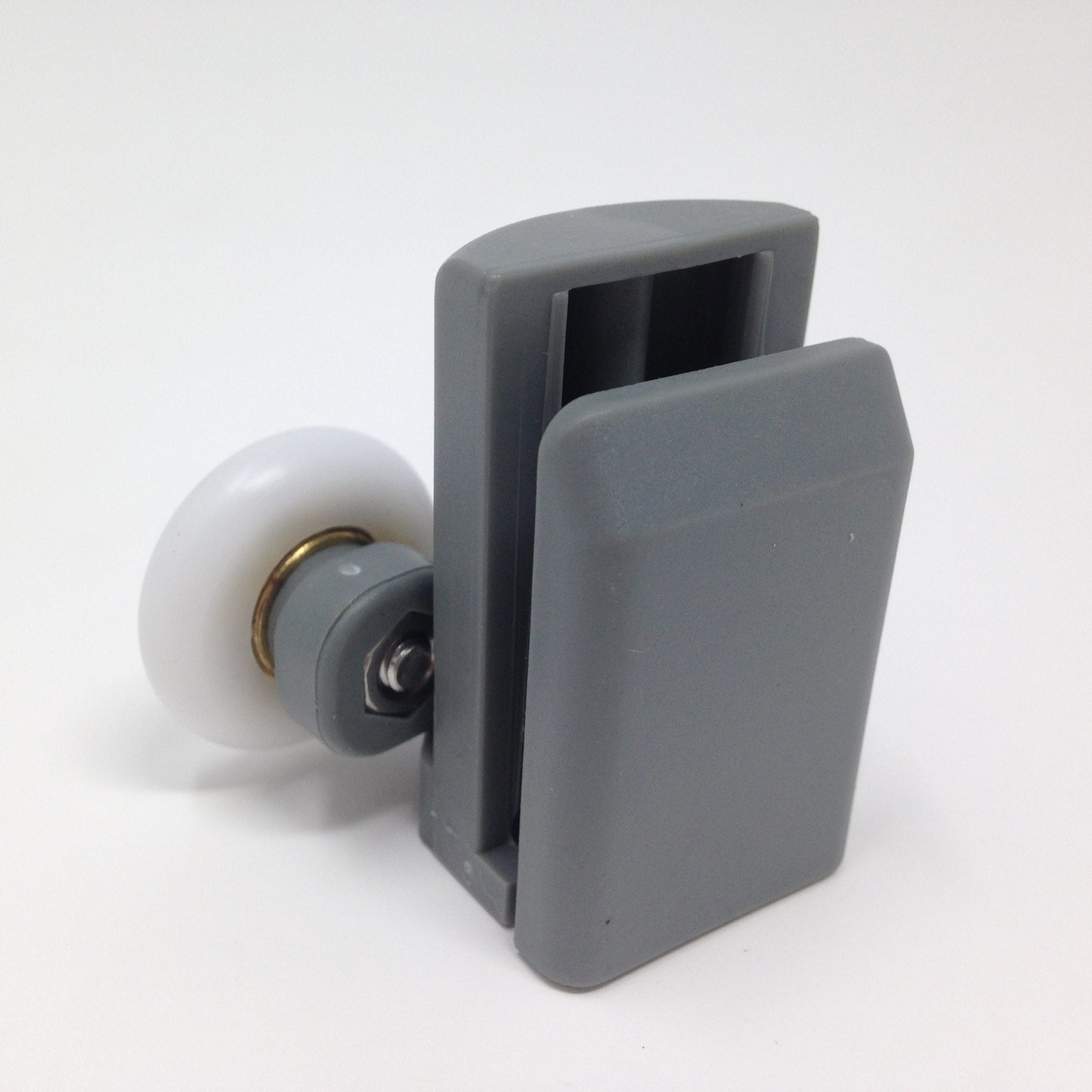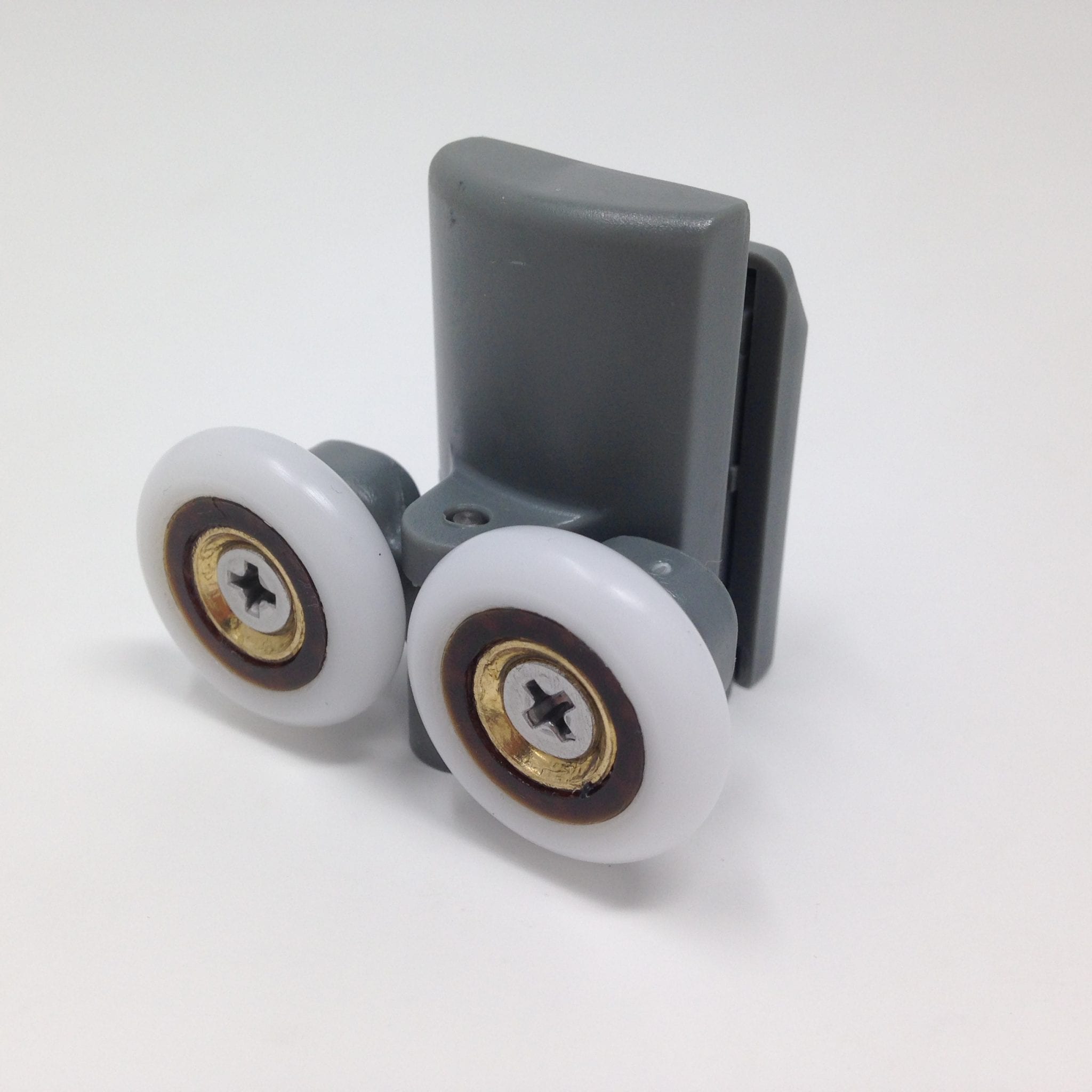 Roulette double pour porte coulissante de cabine de douche. Vendue à l’unité, cette roulette se compose d’un corps en laiton et d’éléments de soutien en plastique type ABS. Le bandage de la roulette est en téflon, recouvrant un roulement à billes étanche en acier inoxydable. Le choix et la qualité des matériaux employés offrent une utilisation optimale de confort, limitant ainsi le frottement et le bruit lors de la manipulation de la porte.