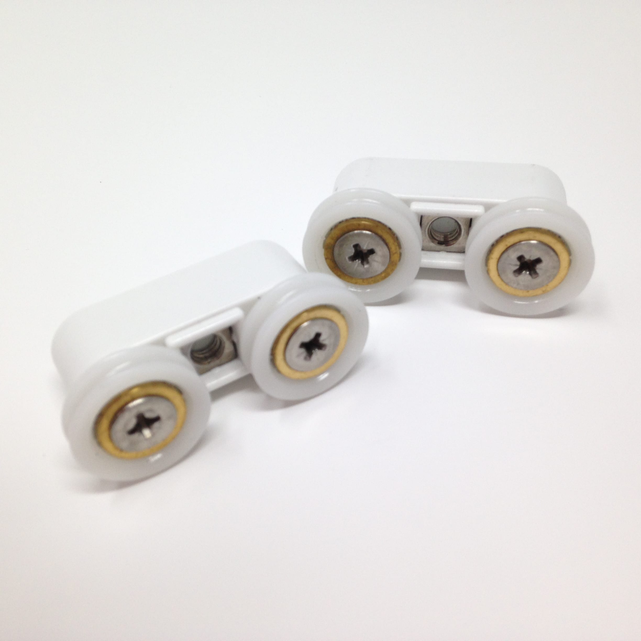 Vous achetez deux roulettes doubles, se montant entre autre sur les cabines de douche de marque SHOWERLUX