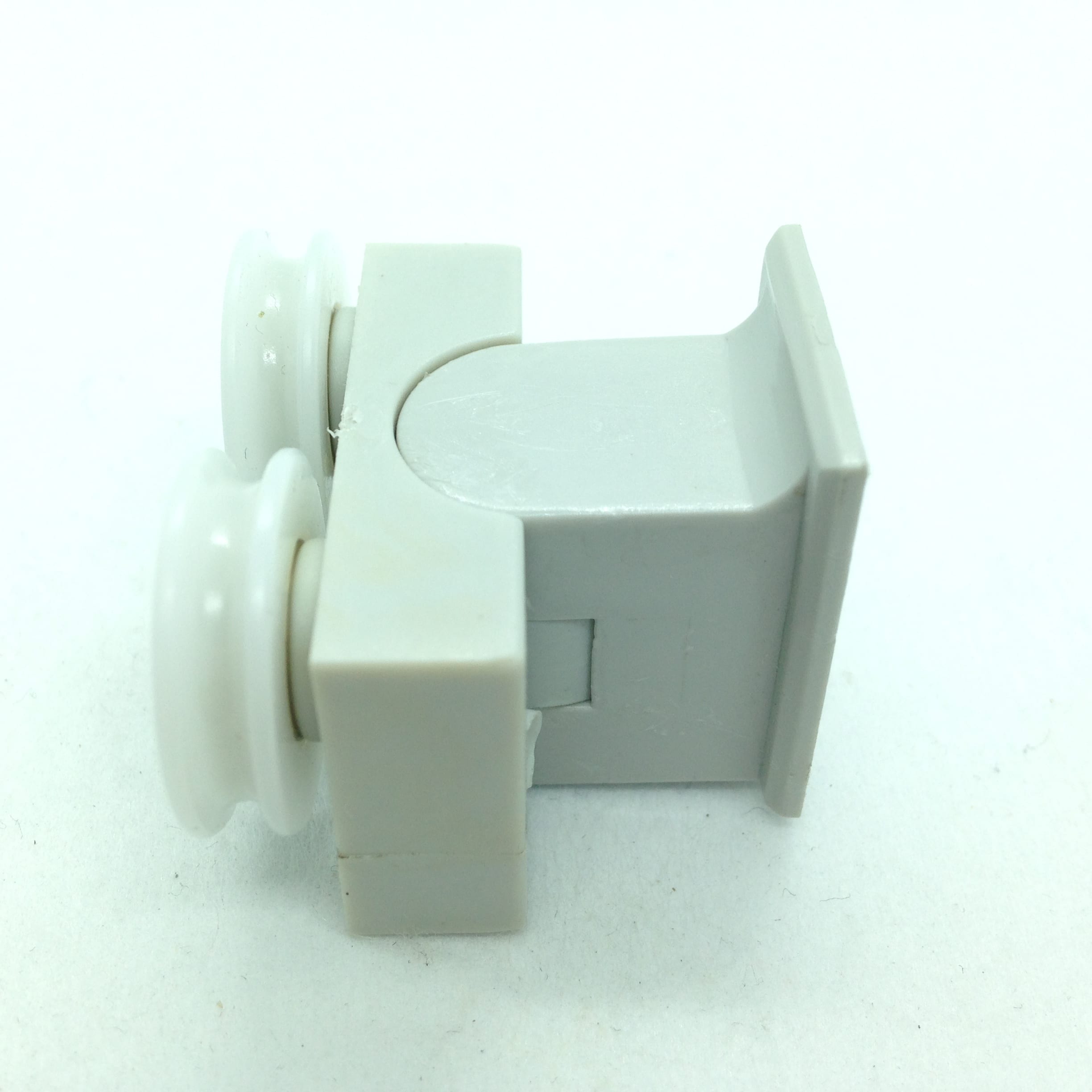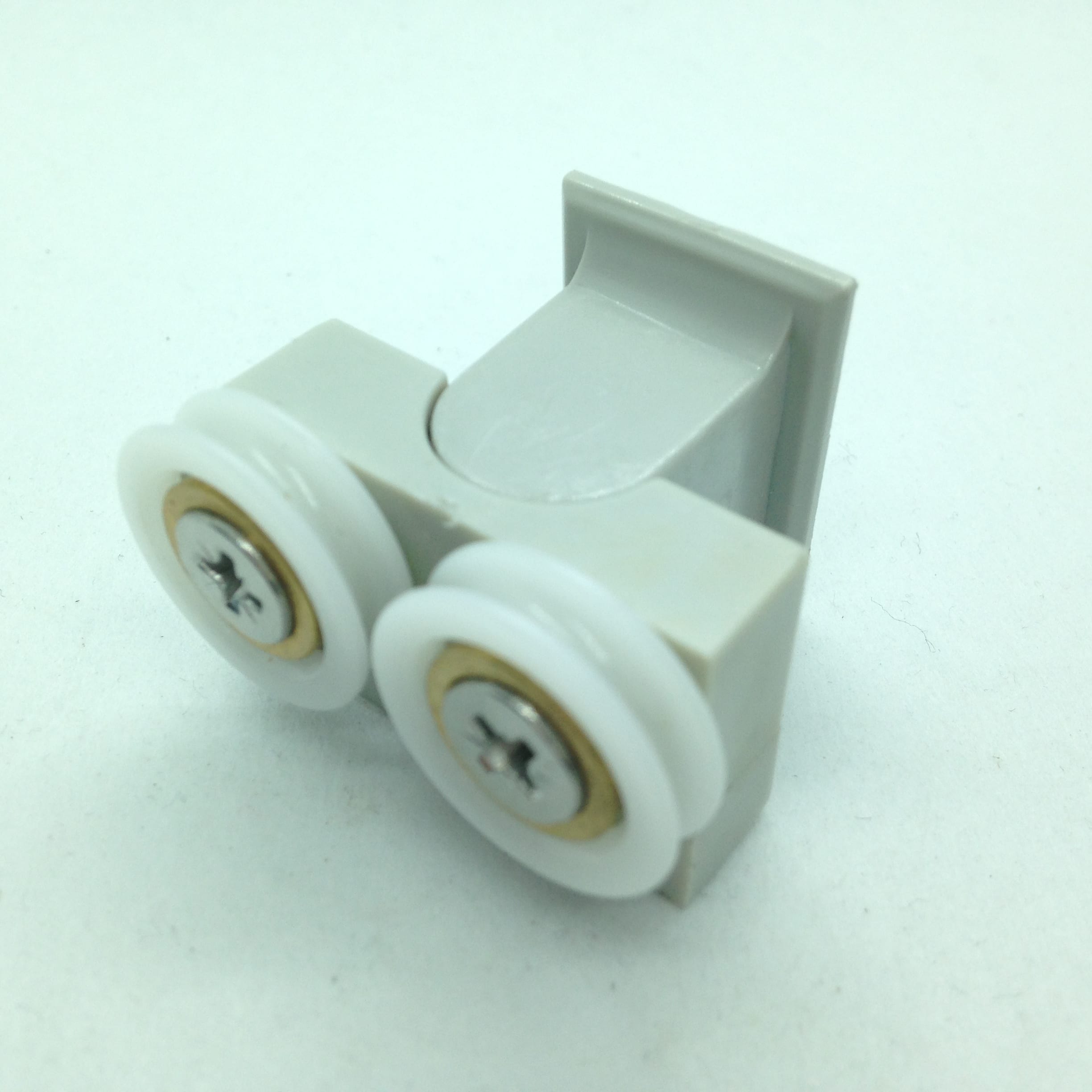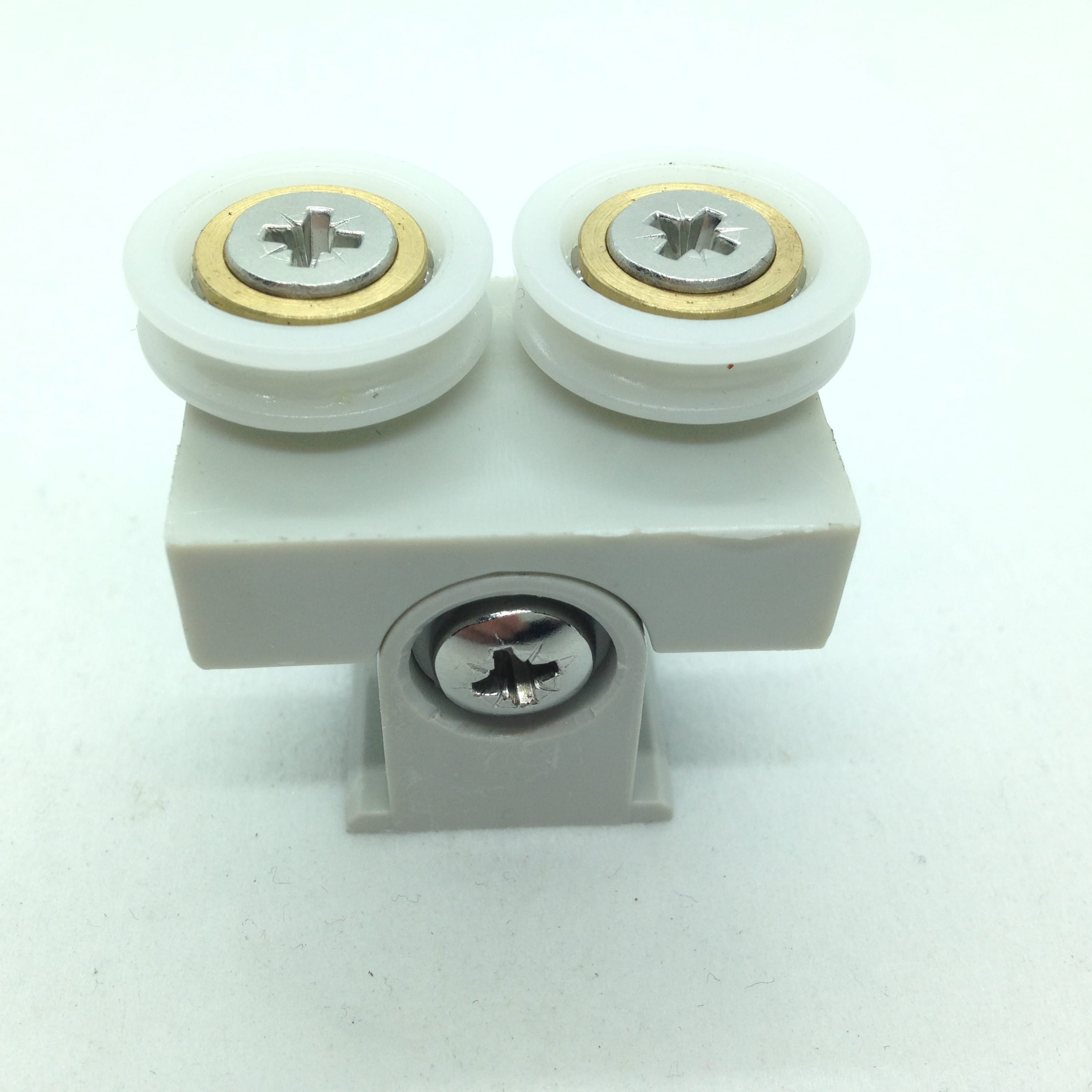 Roulette double pour porte coulissante de cabine de douche. Vendues à l’unité, cette roulette se compose d’un corps en laiton et d’éléments de soutien en plastique type ABS. Le bandage de la roulette est en téflon, recouvrant un roulement à billes étanche en acier inoxydable. Le choix et la qualité des matériaux employés offrent une utilisation optimale de confort, limitant ainsi le frottement et le bruit lors de la manipulation de la porte.
