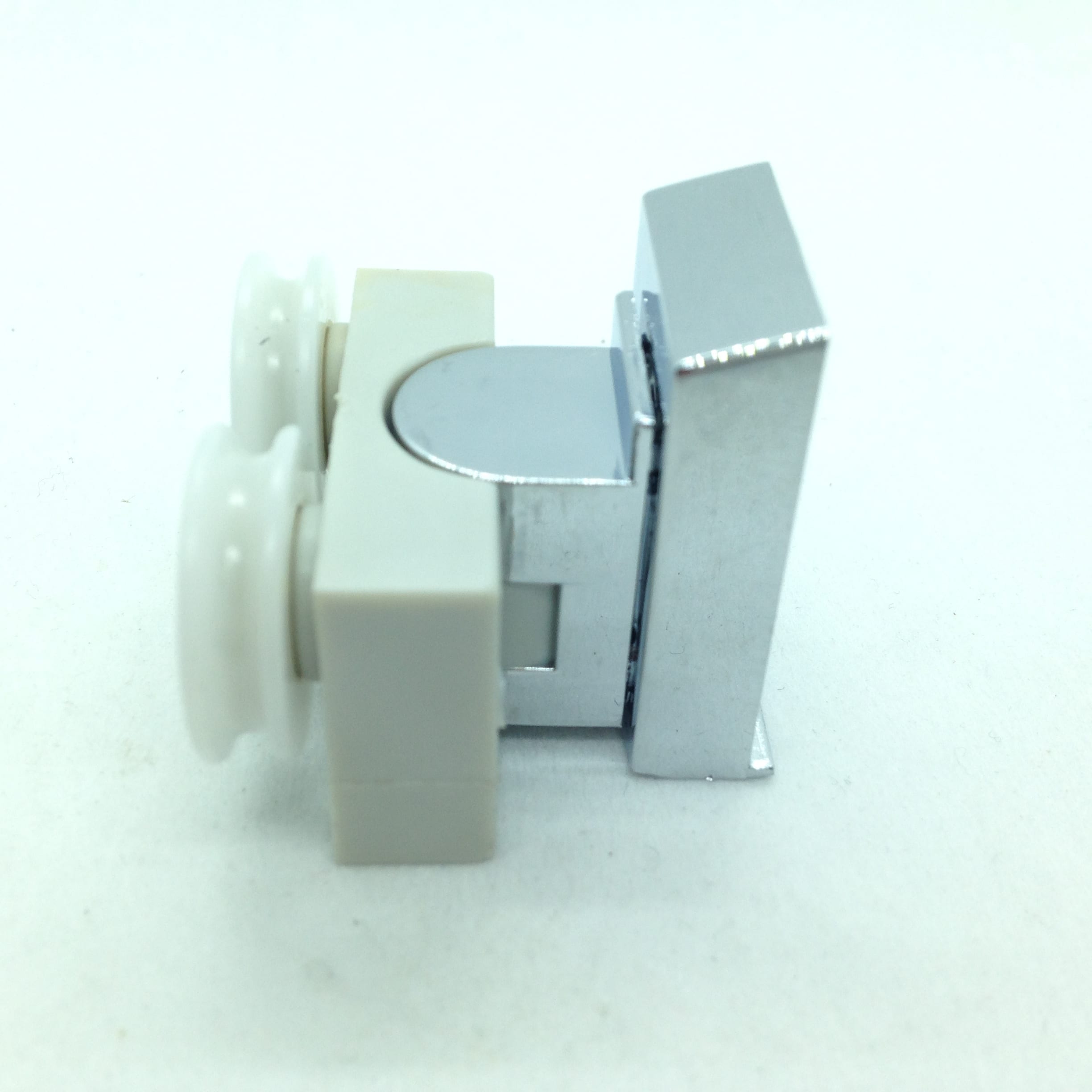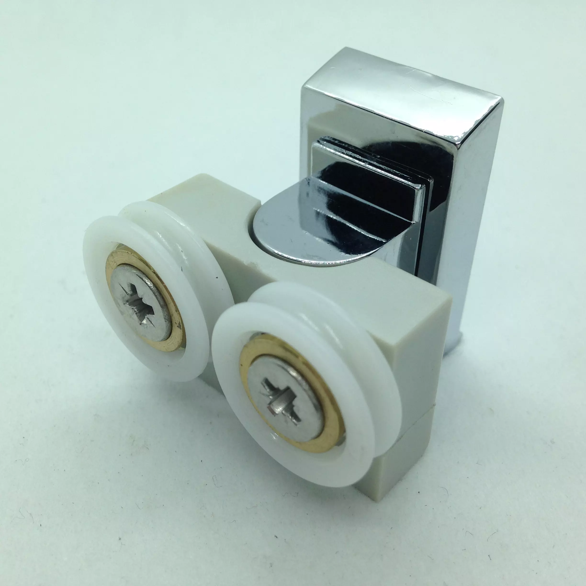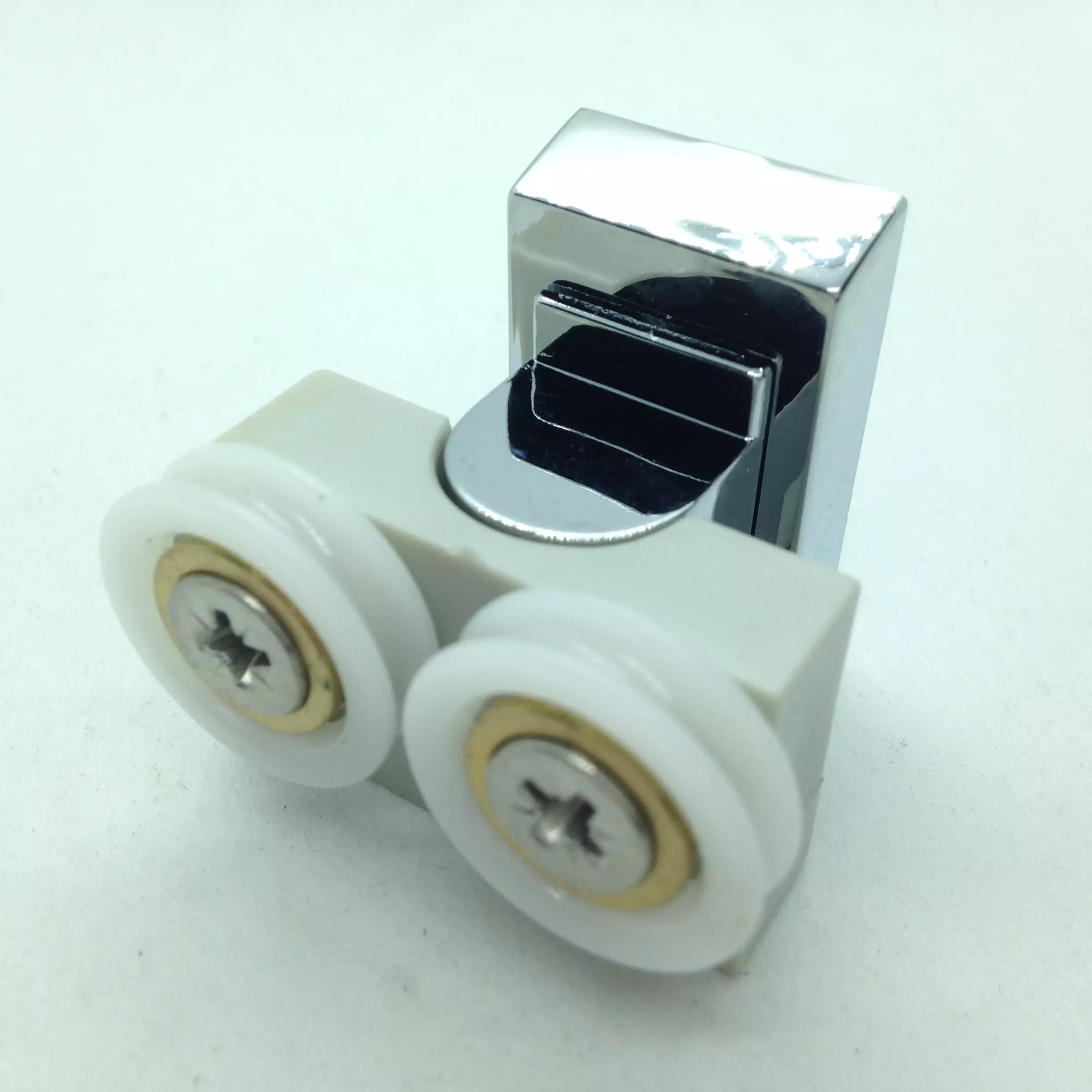 Roulette double pour porte coulissante de cabine de douche. Vendues à l’unité, cette roulette se compose d’un corps en laiton et d’éléments de soutien en plastique type ABS. Le bandage de la roulette est en téflon, recouvrant un roulement à billes étanche en acier inoxydable. Le choix et la qualité des matériaux employés offrent une utilisation optimale de confort, limitant ainsi le frottement et le bruit lors de la manipulation de la porte.