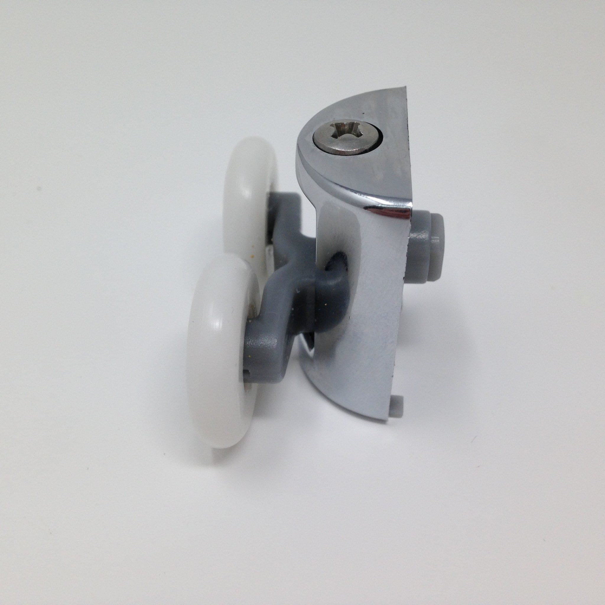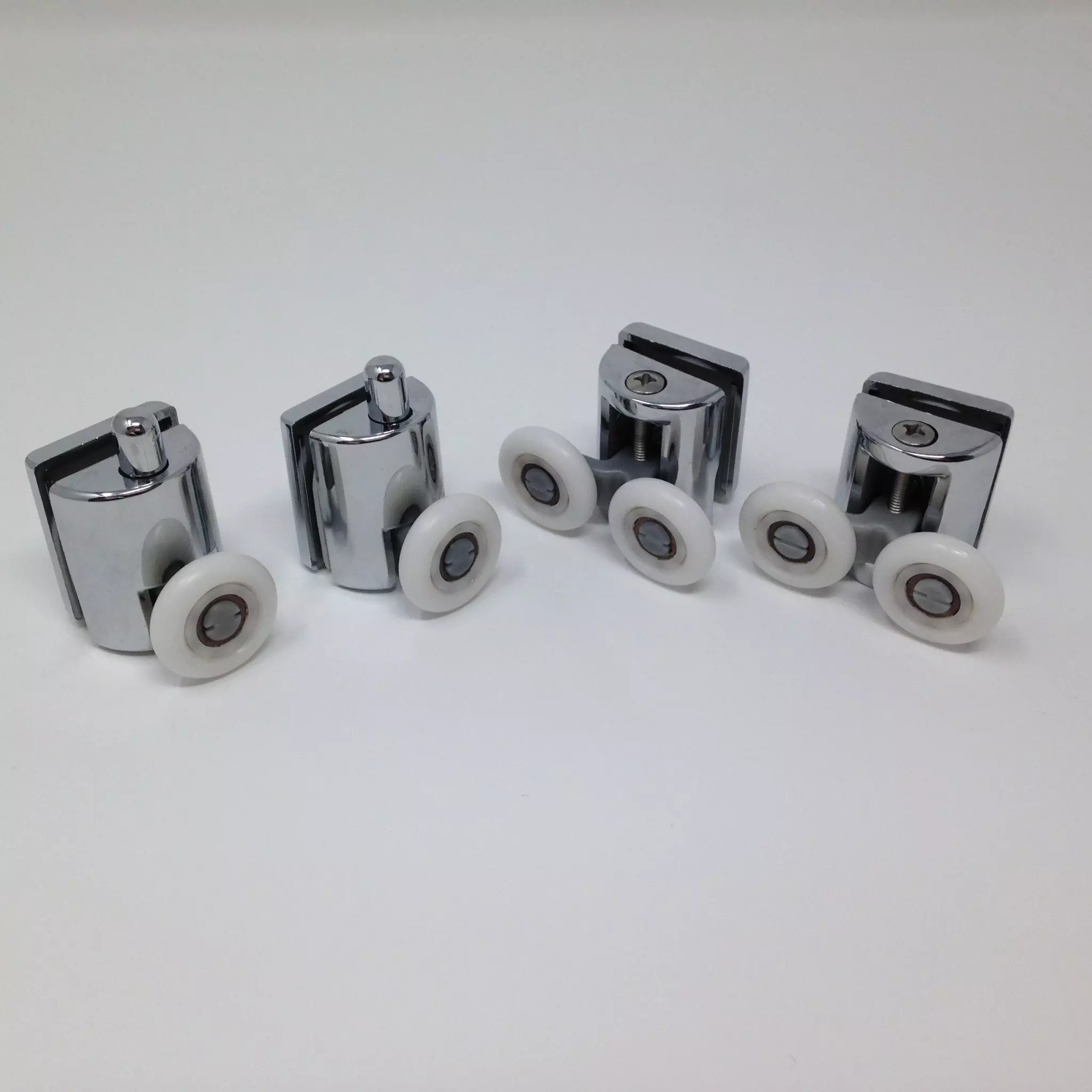 Roulette double et simple haute et basse pour porte coulissante de cabine de douche. Vendues par lot de 4, ces roulettes se composent d’un corps et d’éléments de soutien en plastique type ABS. Le bandage de la roulette est en téflon, recouvrant un roulement à billes étanche en acier inoxydable. Le choix et la qualité des matériaux employés offrent une utilisation optimale de confort, limitant ainsi le frottement et le bruit lors de la manipulation de la porte.