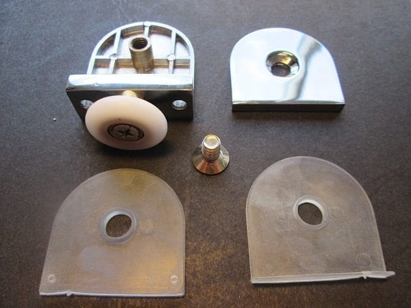 Roulette excentrique simple pour porte coulissante de cabine de douche. Vendues par lot de 2, ces roulettes se composent d’un corps en laiton ou en alliage de zinc et d’éléments de soutien en plastique type ABS. Le bandage de la roulette est en téflon, recouvrant un roulement à billes étanche en acier inoxydable. Le choix et la qualité des matériaux employés offrent une utilisation optimale de confort, limitant ainsi le frottement et le bruit lors de la manipulation de la porte.