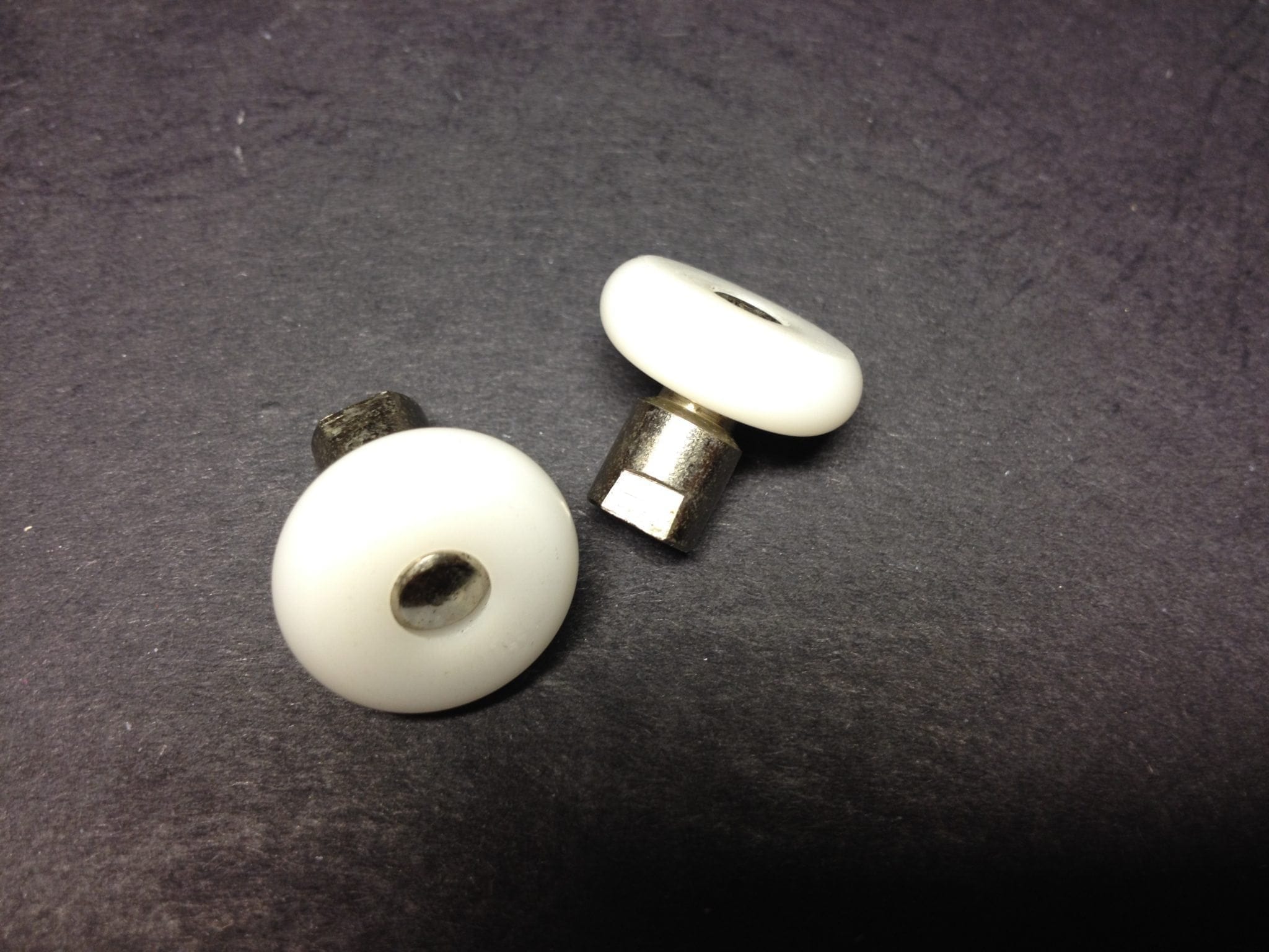 Roulette à tête articulée pour porte coulissante de cabine de douche. Vendues par lot de 4, ces roulettes se composent d’un corps en laiton ou en alliage de zinc et d’éléments de soutien en plastique type ABS. Le bandage de la roulette est en téflon. Le choix et la qualité des matériaux employés offrent une utilisation optimale de confort, limitant ainsi le frottement et le bruit lors de la manipulation de la porte.