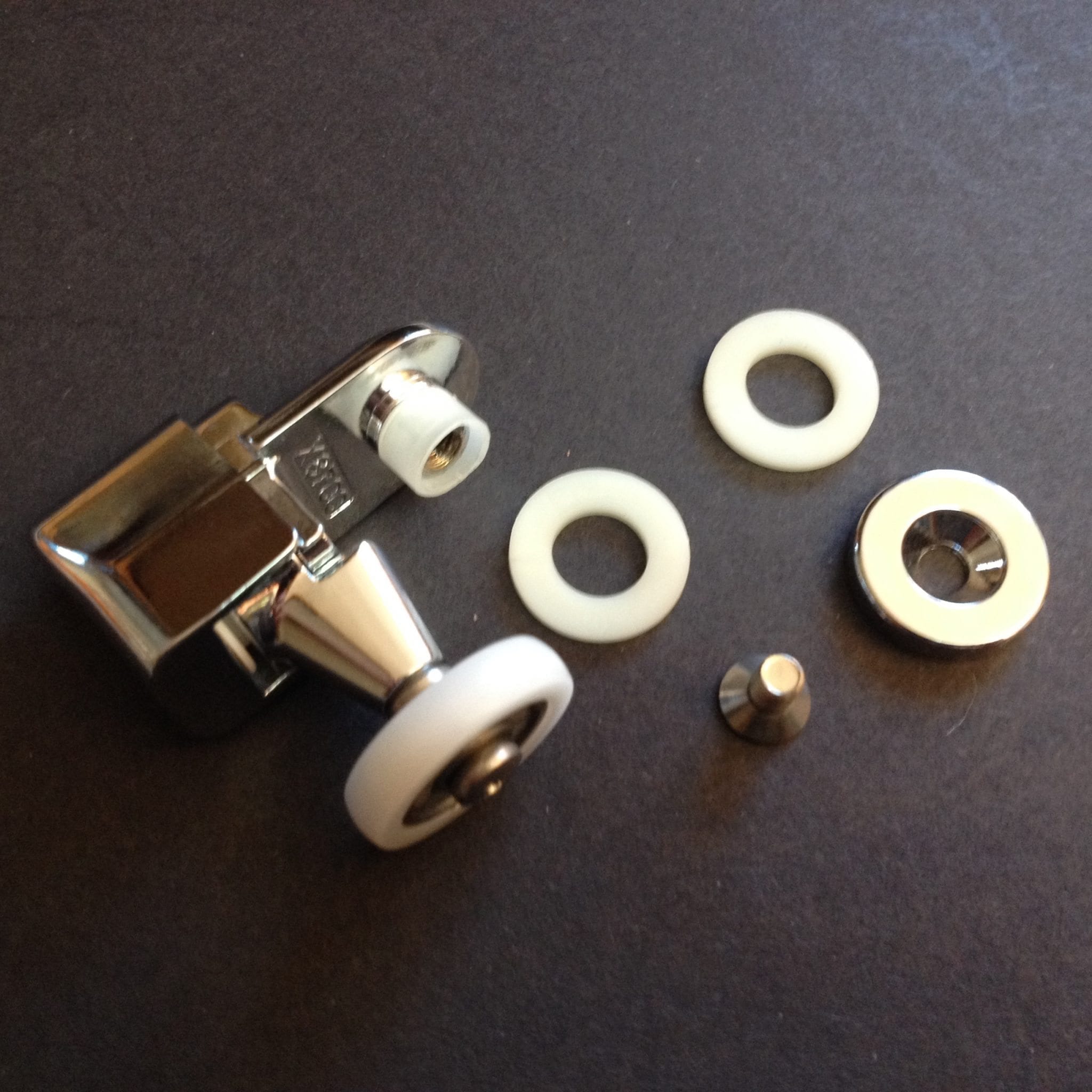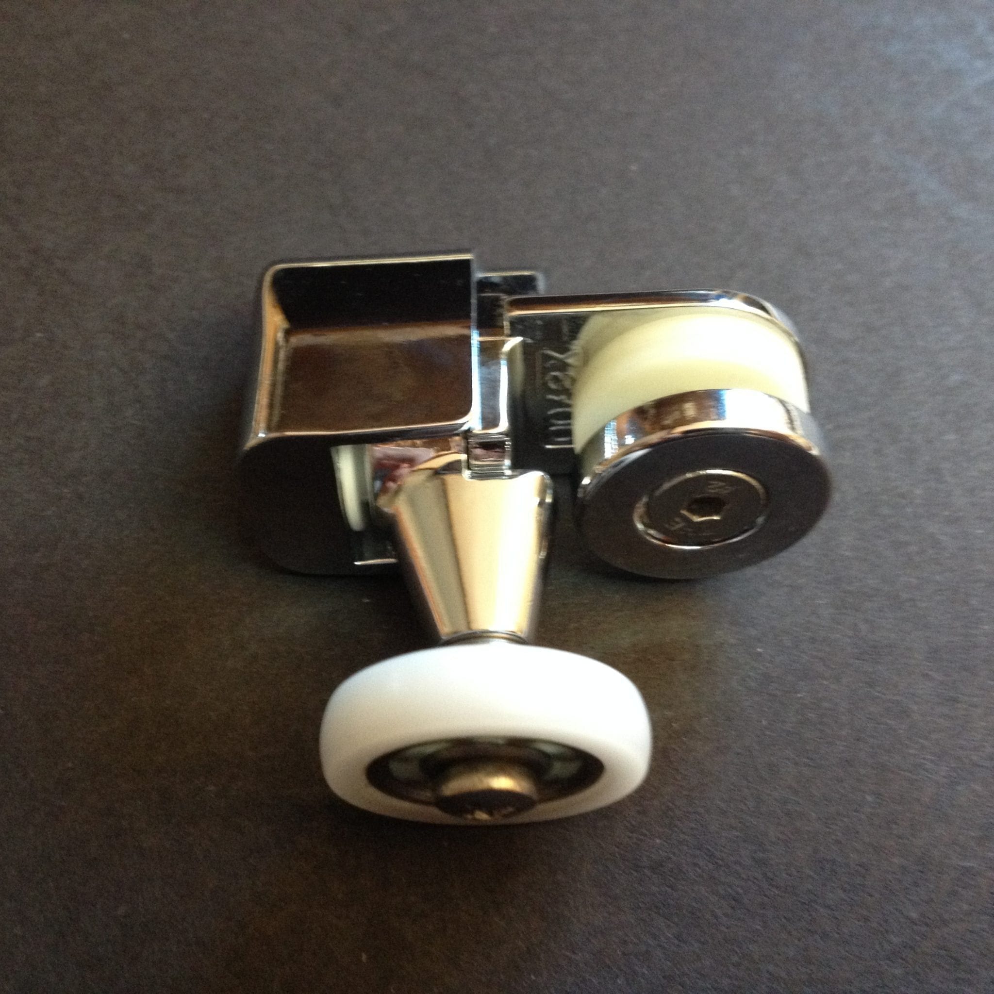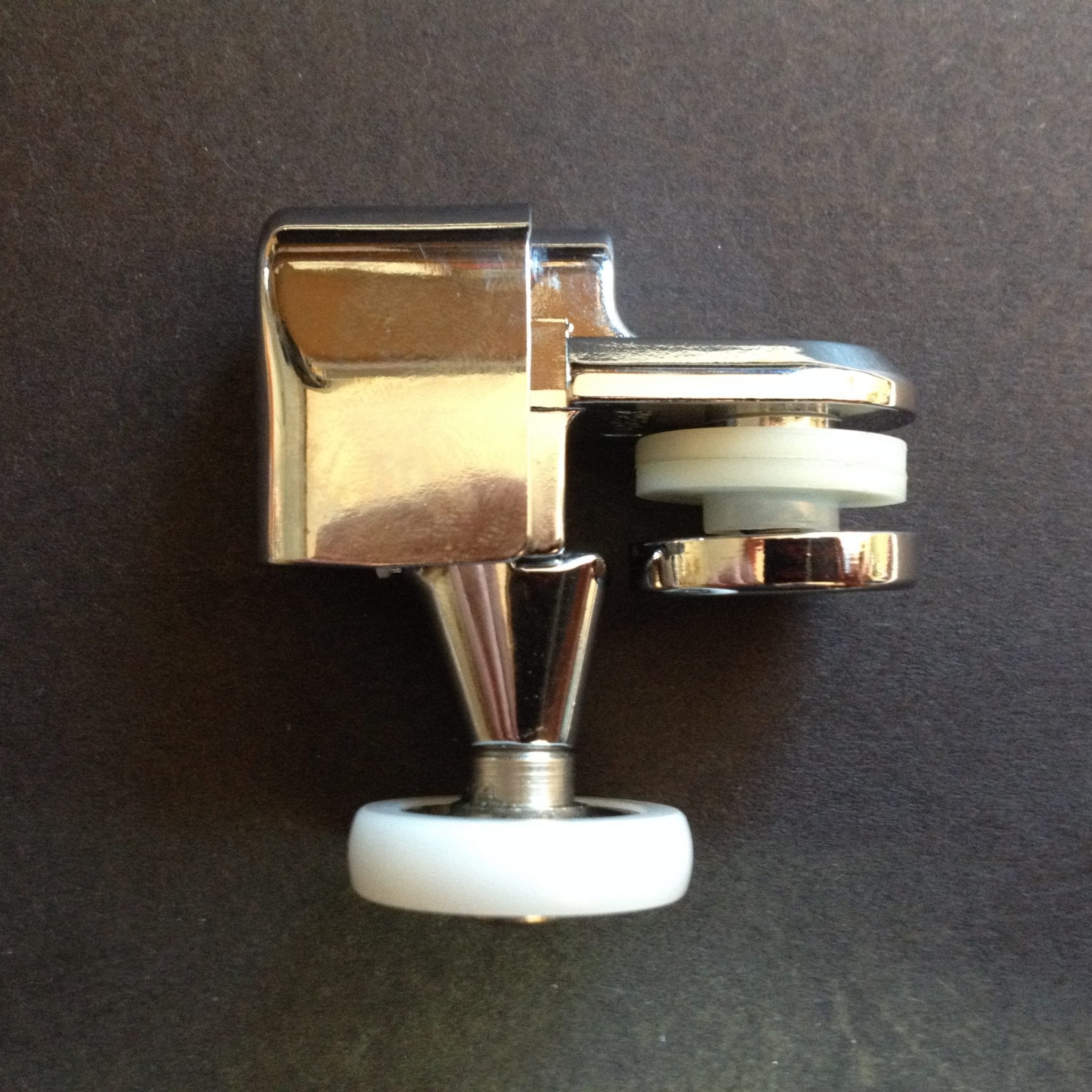 Roulette simple pour porte coulissante de cabine de douche. Vendue à l’unité, cette roulette se compose d’un corps en laiton et d’éléments de soutien en plastique type ABS et en laiton chromé. Le bandage de la roulette est en téflon, recouvrant un roulement à billes étanche en acier inoxydable. Le choix et la qualité des matériaux employés offrent une utilisation optimale de confort, limitant ainsi le frottement et le bruit lors de la manipulation de la porte.