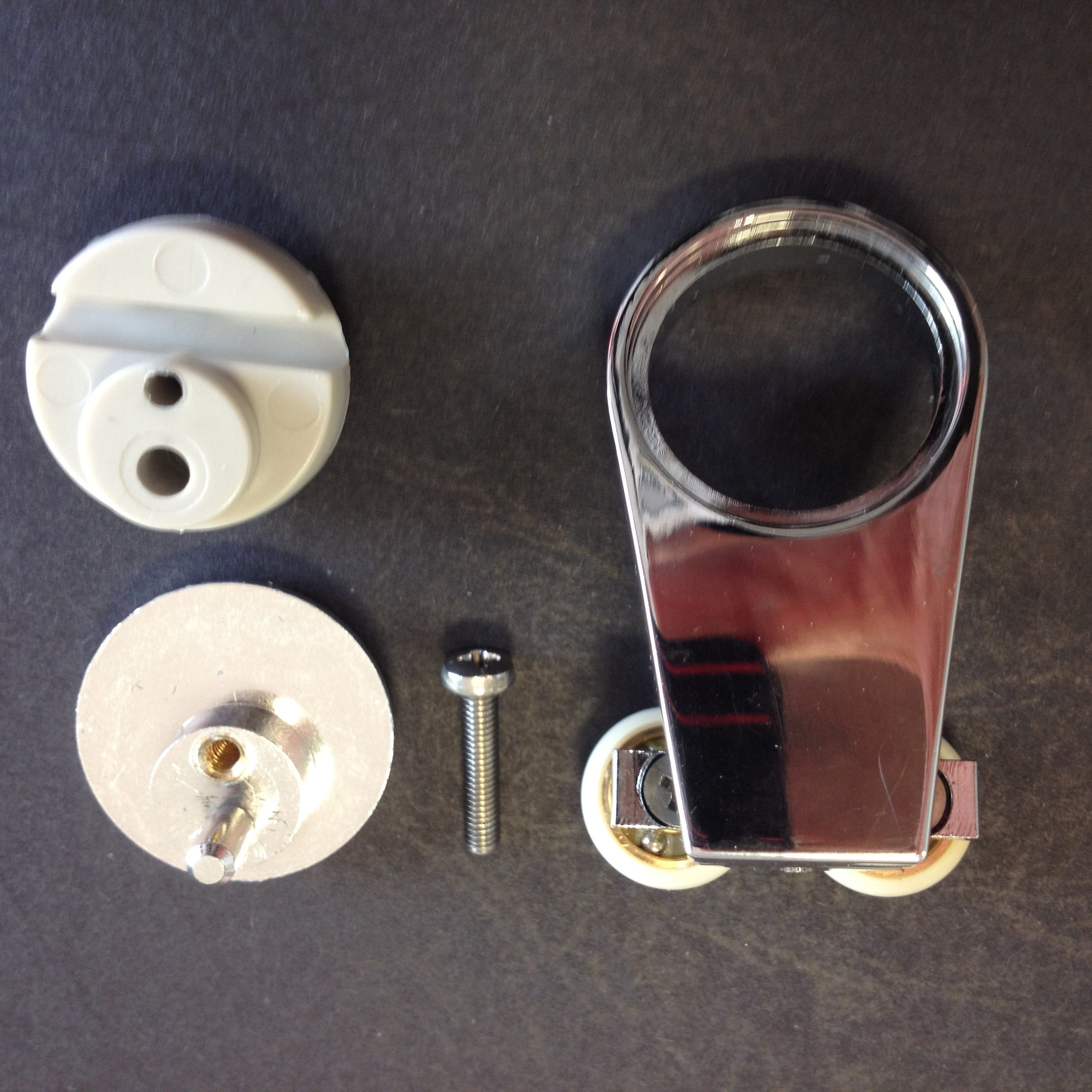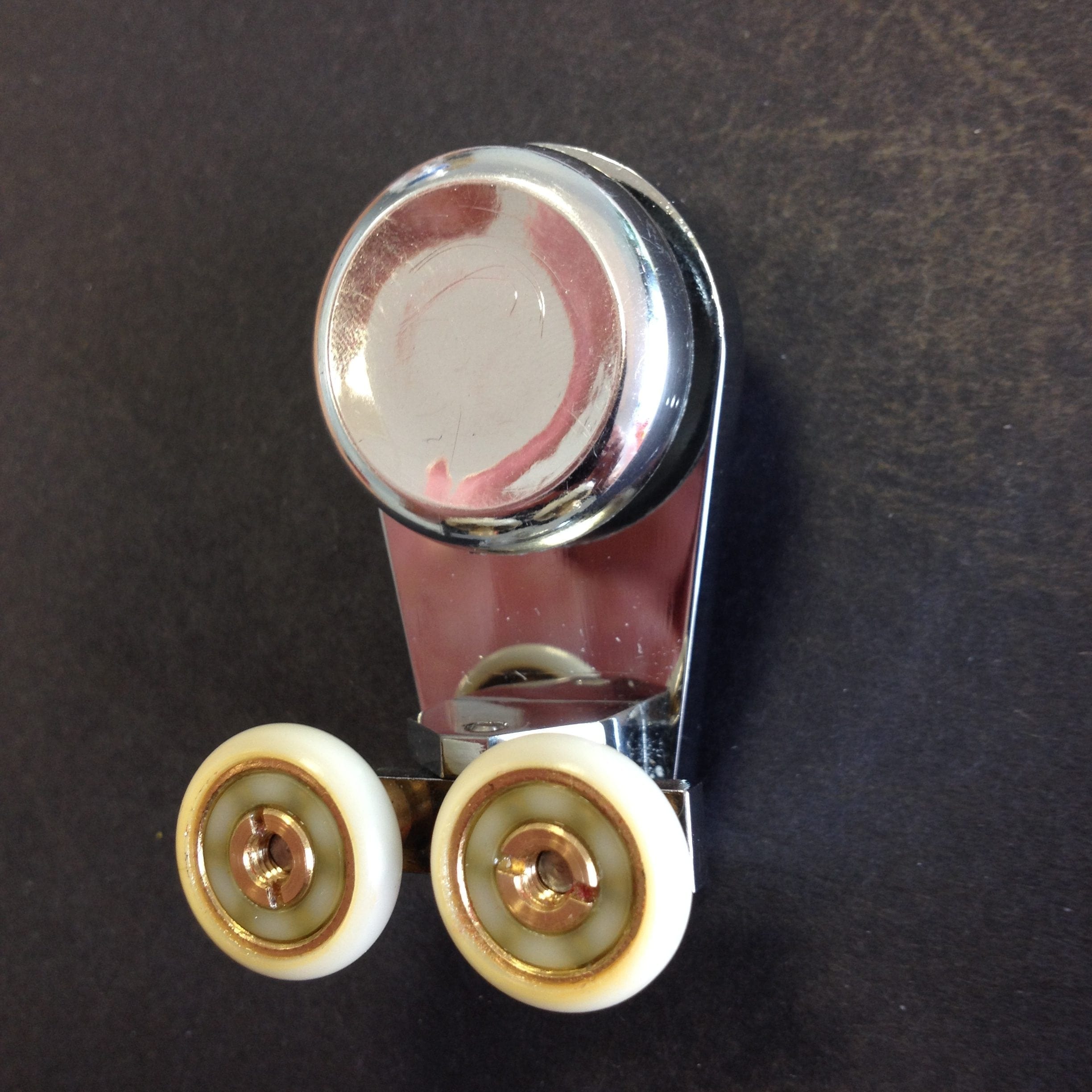 Roulette double haute pour porte coulissante de cabine de douche. Vendue à l’unité, cette roulette se compose d’un corps en laiton et d’éléments de soutien en plastique type ABS et en laiton chromé. Le bandage de la roulette est en téflon, recouvrant un roulement à billes étanche en acier inoxydable. Le choix et la qualité des matériaux employés offrent une utilisation optimale de confort, limitant ainsi le frottement et le bruit lors de la manipulation de la porte.