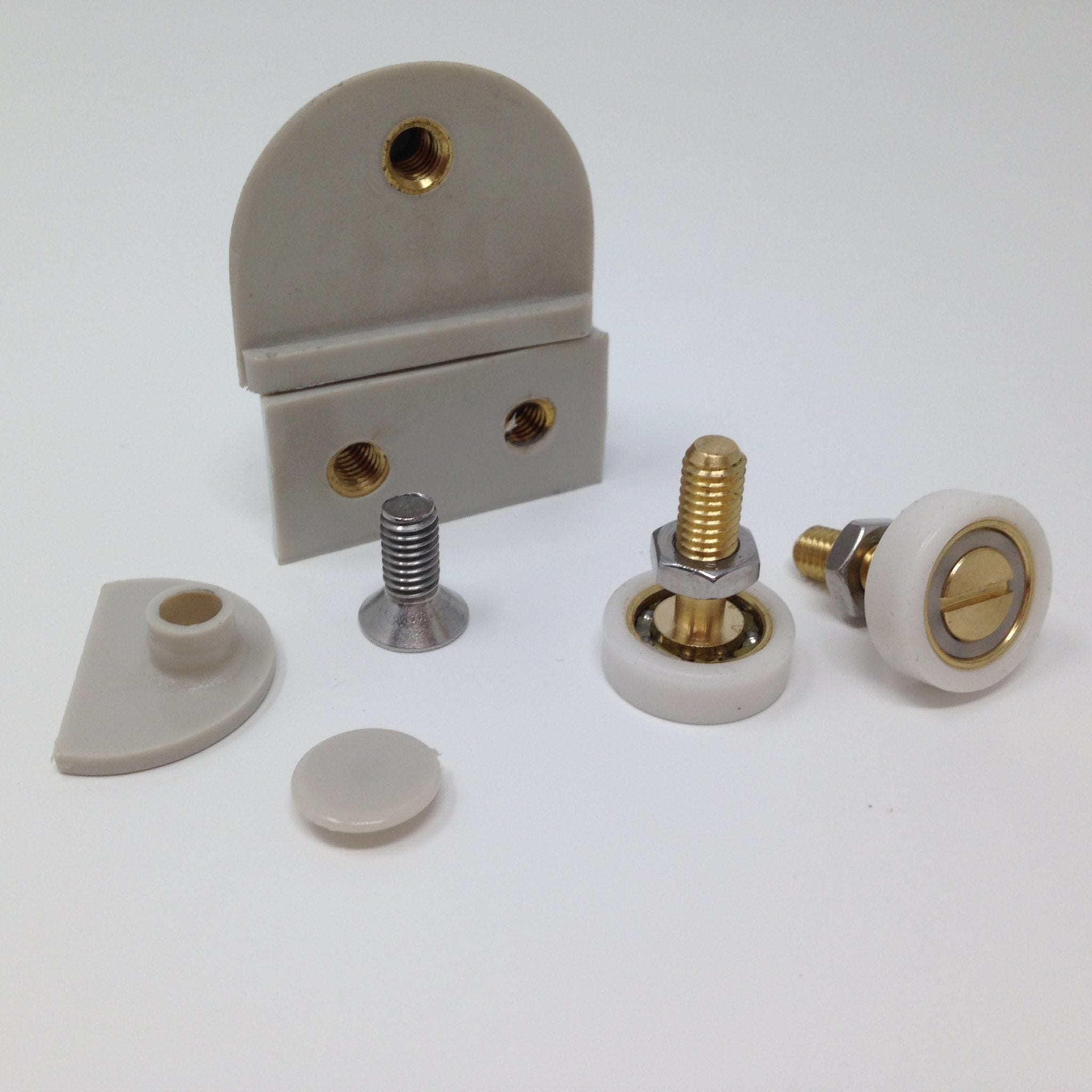 Roulette double haute et basse pour porte coulissante de cabine de douche. Vendue à l’unité, cette roulette se compose d’un corps en laiton et d’éléments de soutien en plastique type ABS. Le bandage de la roulette est en téflon, recouvrant un roulement à billes étanche en acier inoxydable. Le choix et la qualité des matériaux employés offrent une utilisation optimale de confort, limitant ainsi le frottement et le bruit lors de la manipulation de la porte.