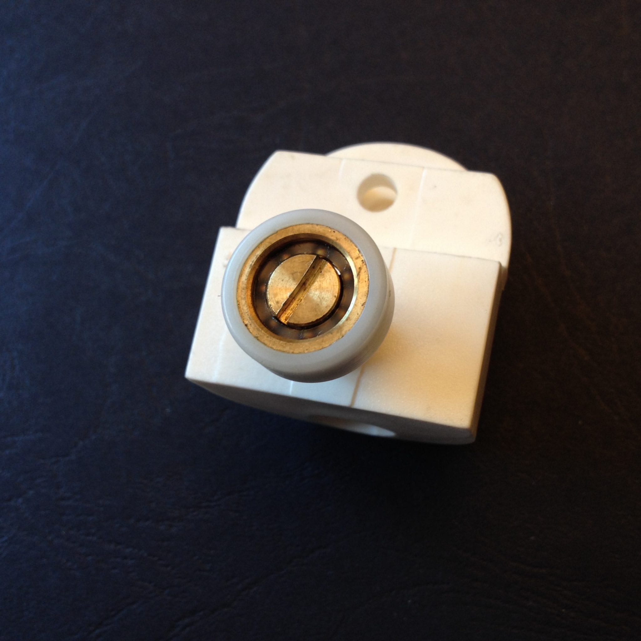 Roulette simple pour porte coulissante de cabine de douche. Vendue à l’unité, cette roulette se compose d’un corps en laiton et d’éléments de soutien en plastique type ABS et en laiton chromé. Le bandage de la roulette est en téflon, recouvrant un roulement à billes étanche en acier inoxydable. Le choix et la qualité des matériaux employés offrent une utilisation optimale de confort, limitant ainsi le frottement et le bruit lors de la manipulation de la porte.