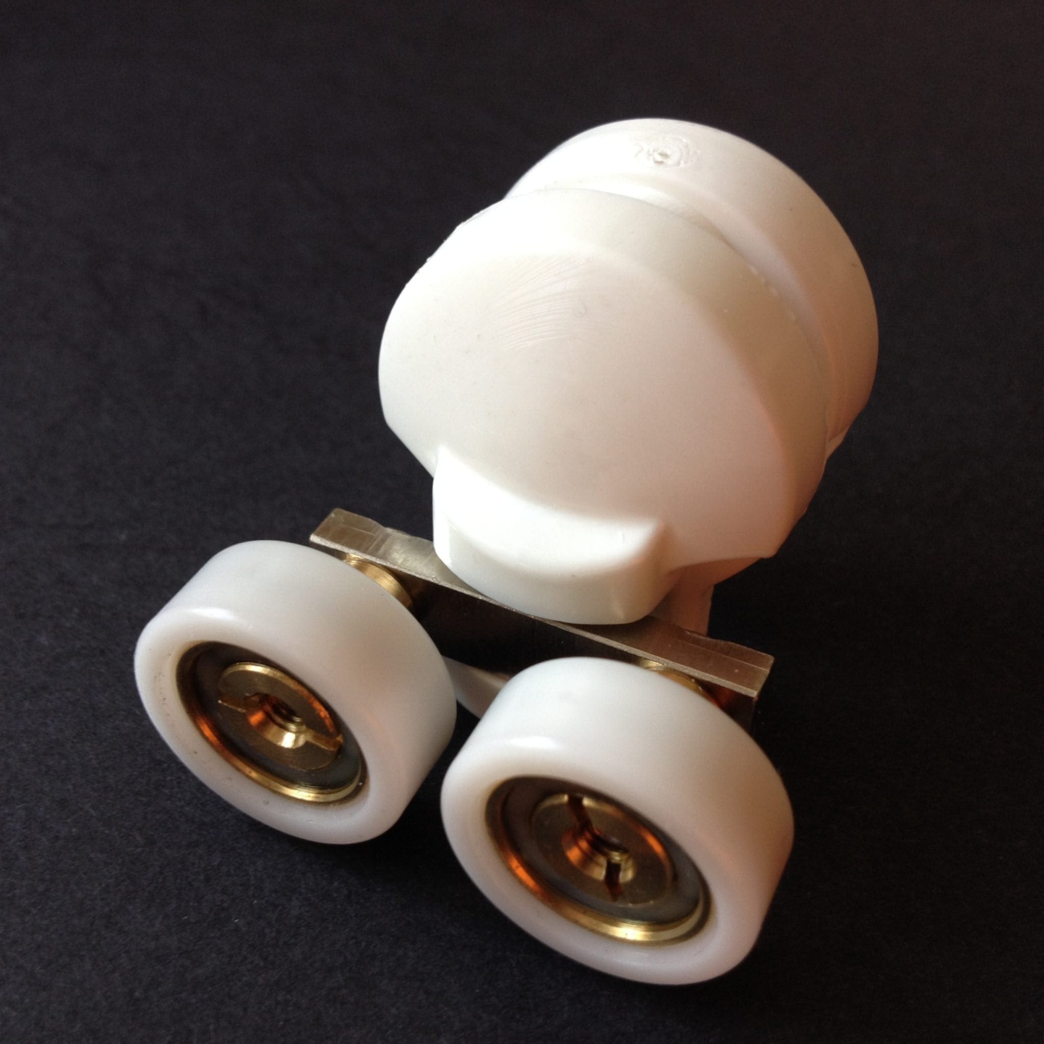 Roulette double haute et basse pour porte coulissante de cabine de douche. Vendue à l’unité, cette roulette se compose d’un corps en laiton et d’éléments de soutien en plastique type ABS. Le bandage de la roulette est en téflon, recouvrant un roulement à billes étanche en acier inoxydable. Le choix et la qualité des matériaux employés offrent une utilisation optimale de confort, limitant ainsi le frottement et le bruit lors de la manipulation de la porte.