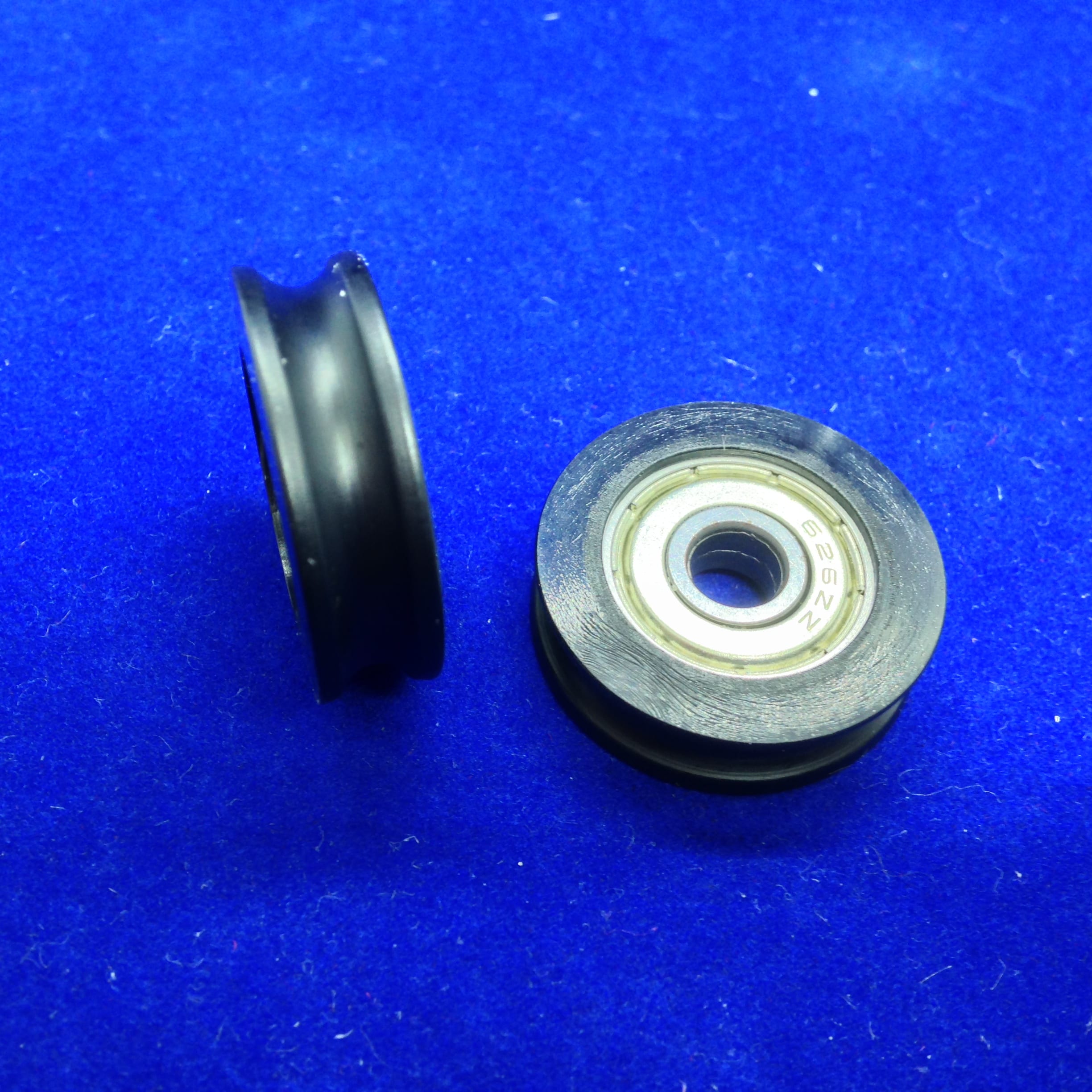 Roulette simple droite à gorge en U pour porte coulissante de cabine de douche. Vendues par lot de 4, ces roulettes se composent d’un corps en acier inoxydable. Le bandage de la roulette est en téflon, recouvrant un roulement à billes étanche en acier inoxydable. Le choix et la qualité des matériaux employés offrent une utilisation optimale de confort, limitant ainsi le frottement et le bruit lors de la manipulation de la porte.