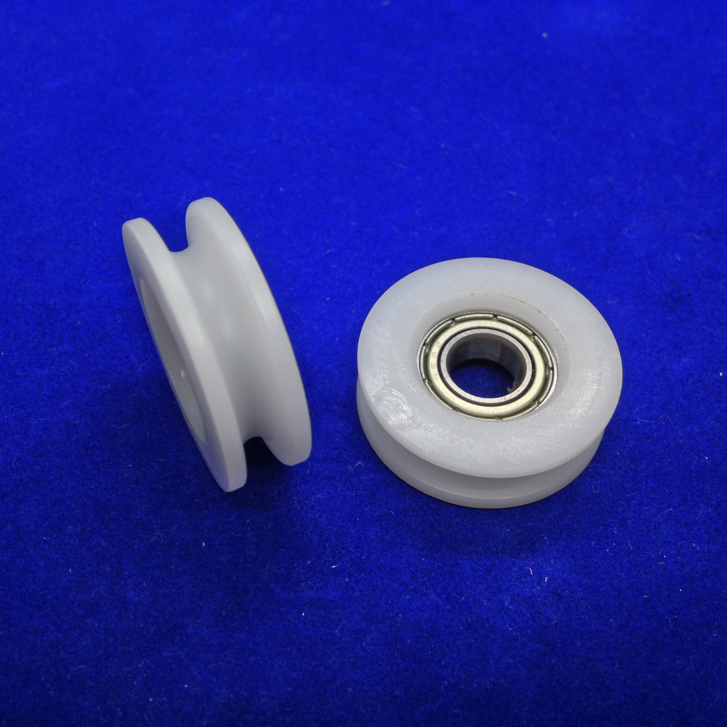 Roulette simple droite à gorge en U pour porte coulissante de cabine de douche. Vendues par lot de 4, ces roulettes se composent d’un corps en acier inoxydable. Le bandage de la roulette est en téflon, recouvrant un roulement à billes étanche en acier inoxydable. Le choix et la qualité des matériaux employés offrent une utilisation optimale de confort, limitant ainsi le frottement et le bruit lors de la manipulation de la porte.