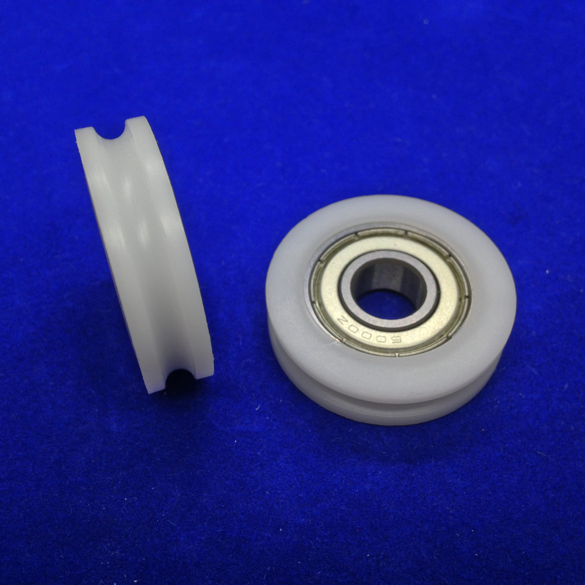 Roulette simple droite à gorge en U pour porte coulissante de cabine de douche. Vendues par lot de 4, ces roulettes se composent d’un corps en acier inoxydable. Le bandage de la roulette est en téflon, recouvrant un roulement à billes étanche en acier inoxydable. Le choix et la qualité des matériaux employés offrent une utilisation optimale de confort, limitant ainsi le frottement et le bruit lors de la manipulation de la porte.