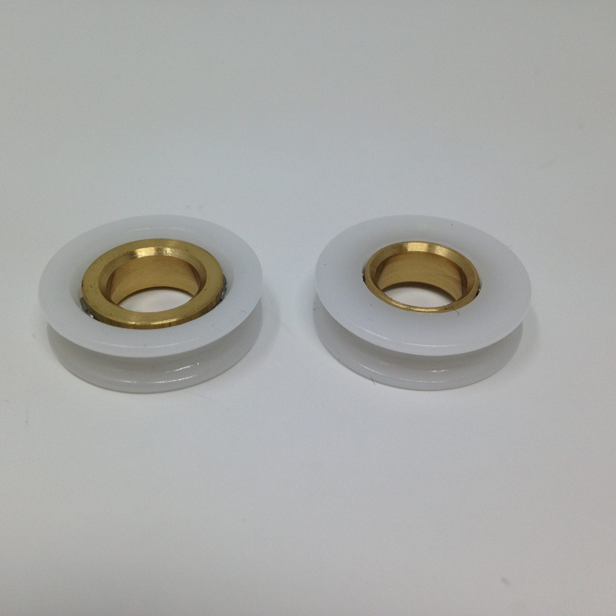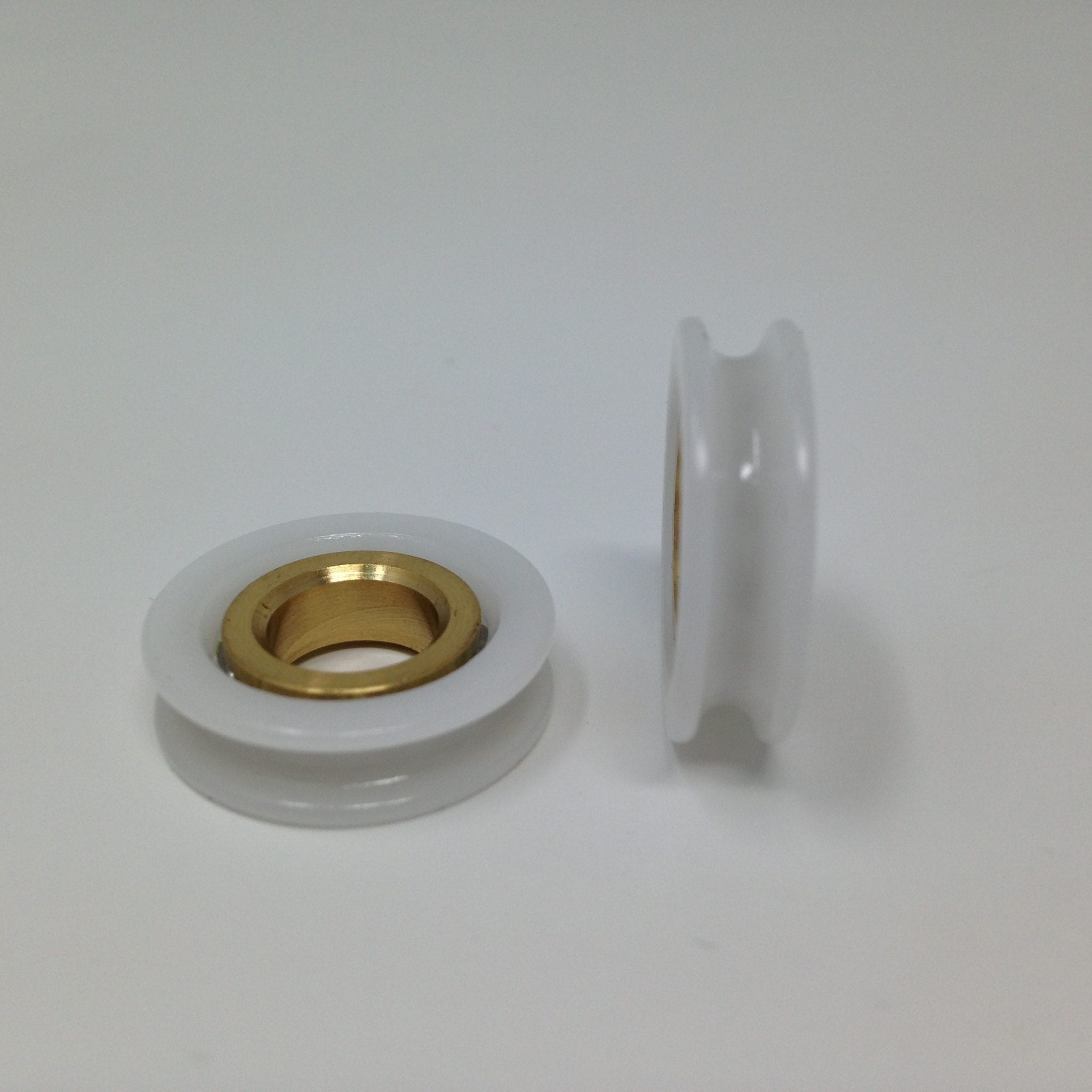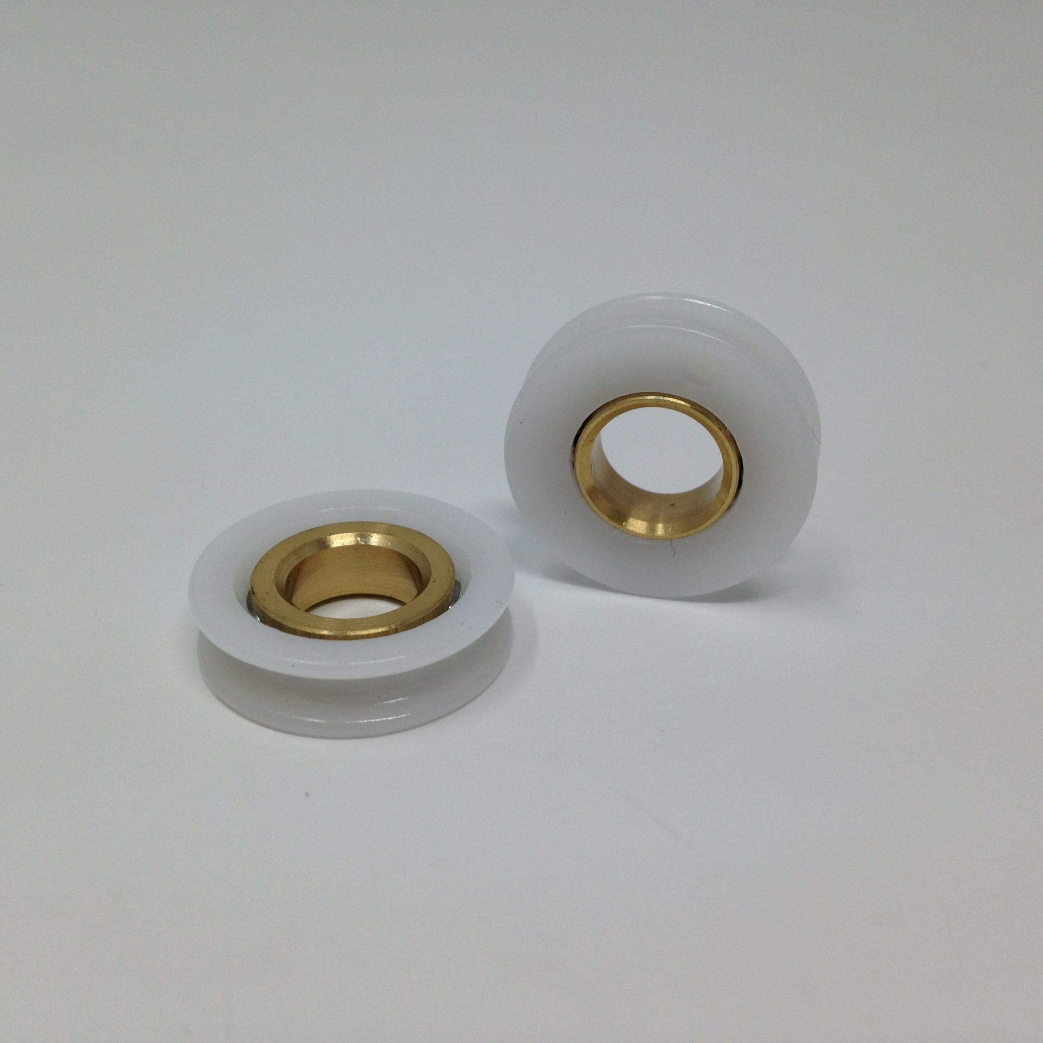 Roulette simple à gorge en U pour porte coulissante de cabine de douche. Vendue pat lot de 2, cette roulette se compose d’un corps en acier inoxydable. Le bandage de la roulette est en téflon, recouvrant un roulement à billes étanche en acier inoxydable. Le choix et la qualité des matériaux employés offrent une utilisation optimale de confort, limitant ainsi le frottement et le bruit lors de la manipulation de la porte.