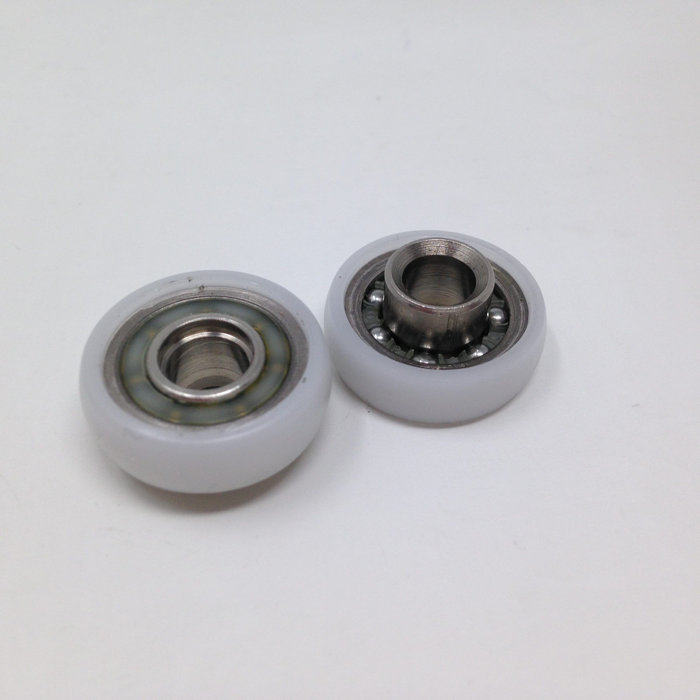 Roulette droite simple pour porte coulissante de cabine de douche. Vendue à l’unité, cette roulette se compose d’un corps en laiton. Le bandage plat de la roulette est en téflon, recouvrant un roulement à billes étanche en acier inoxydable. Le choix et la qualité des matériaux employés offrent une utilisation optimale de confort, limitant ainsi le frottement et le bruit lors de la manipulation de la porte.