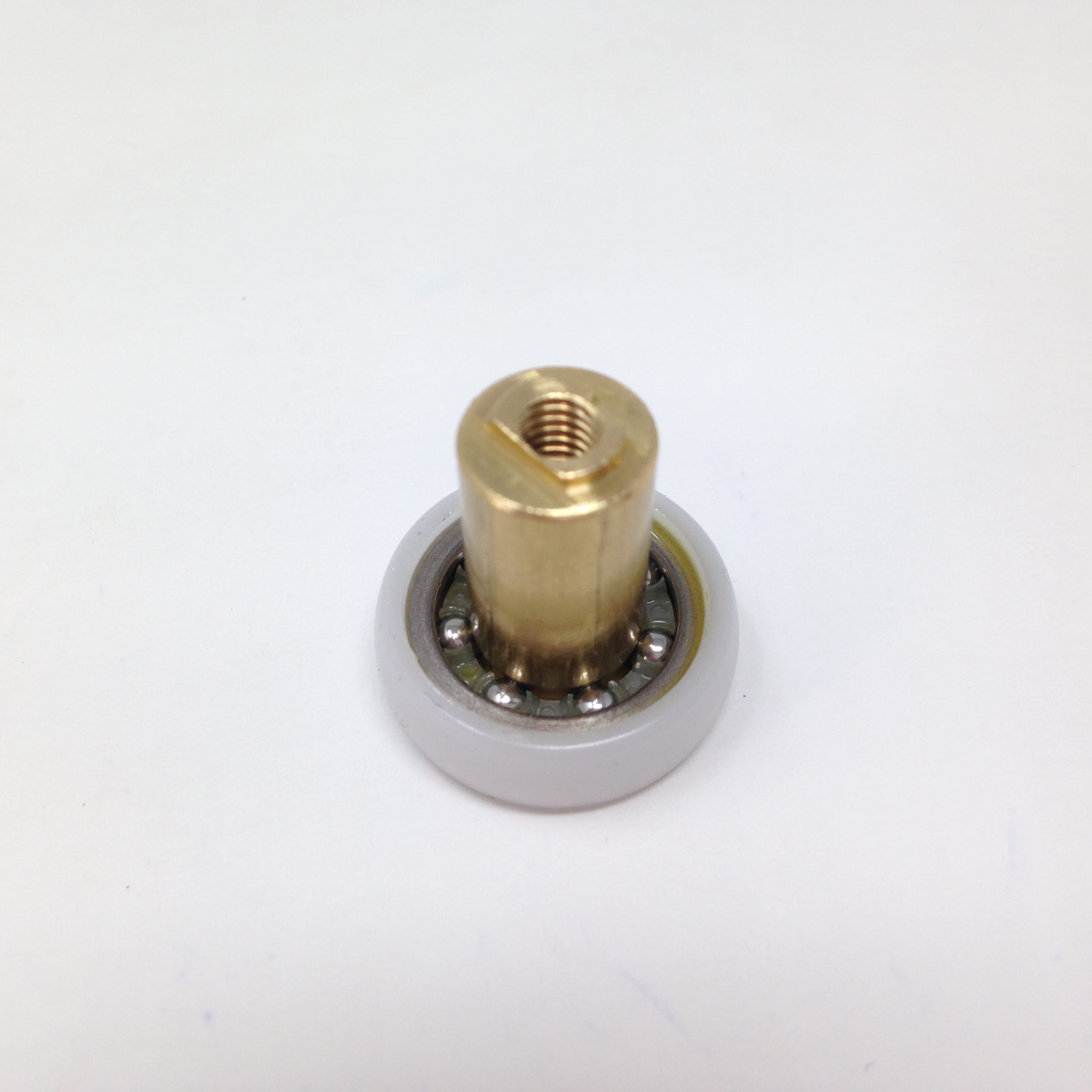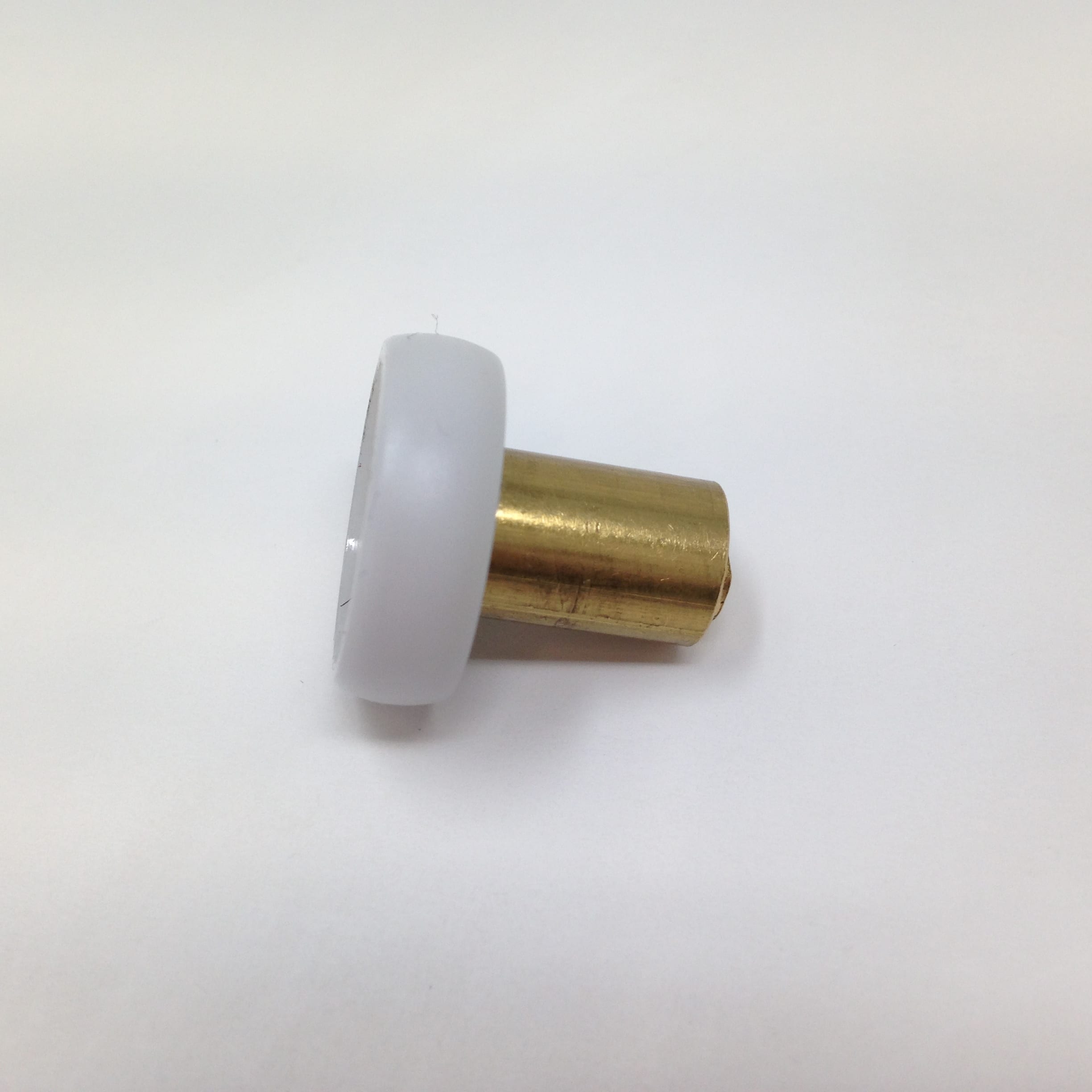 Roulette droite simple pour porte coulissante de cabine de douche. Vendue à l’unité, cette roulette se compose d’un corps en laiton. Le bandage plat de la roulette est en téflon, recouvrant un roulement à billes étanche en acier inoxydable. Le choix et la qualité des matériaux employés offrent une utilisation optimale de confort, limitant ainsi le frottement et le bruit lors de la manipulation de la porte.