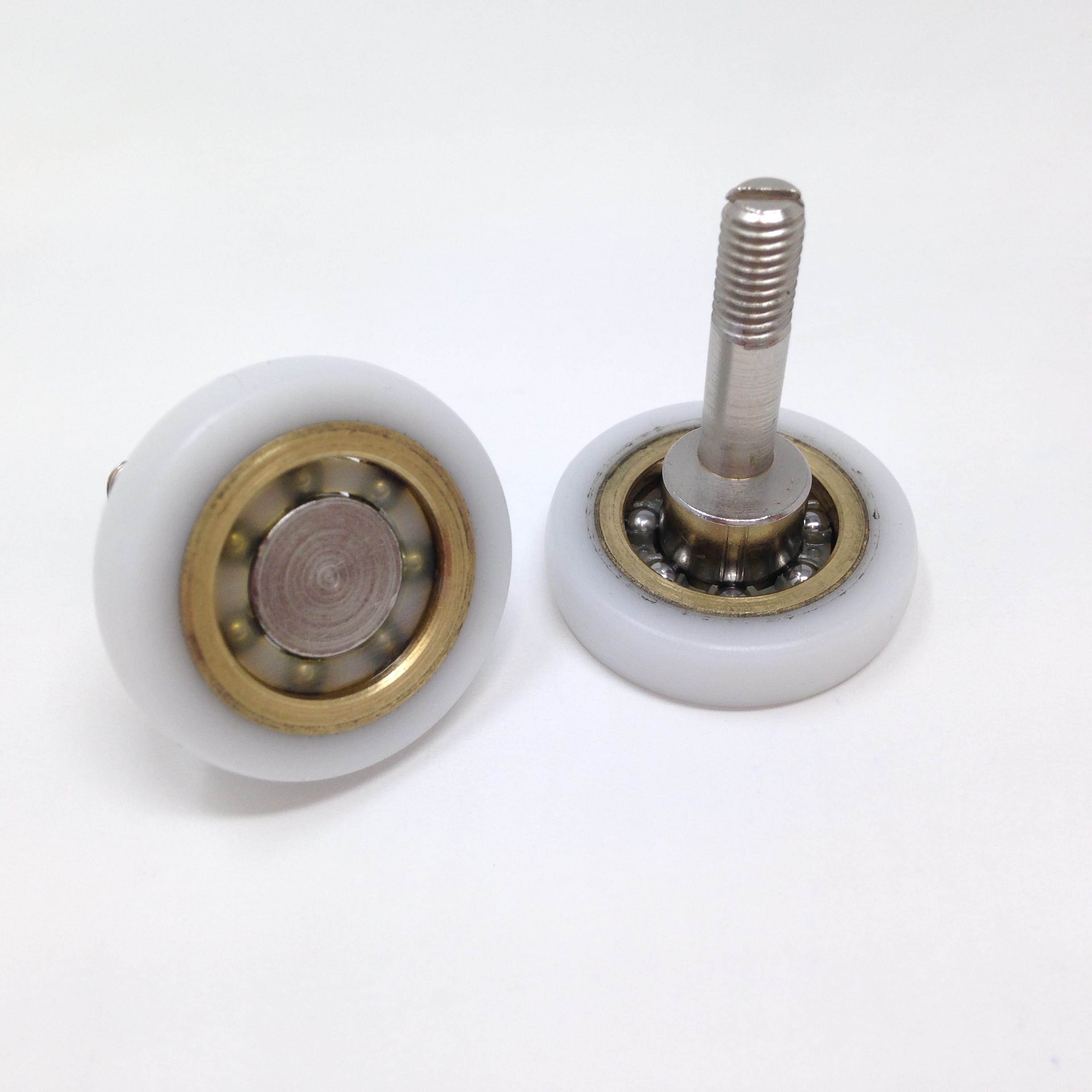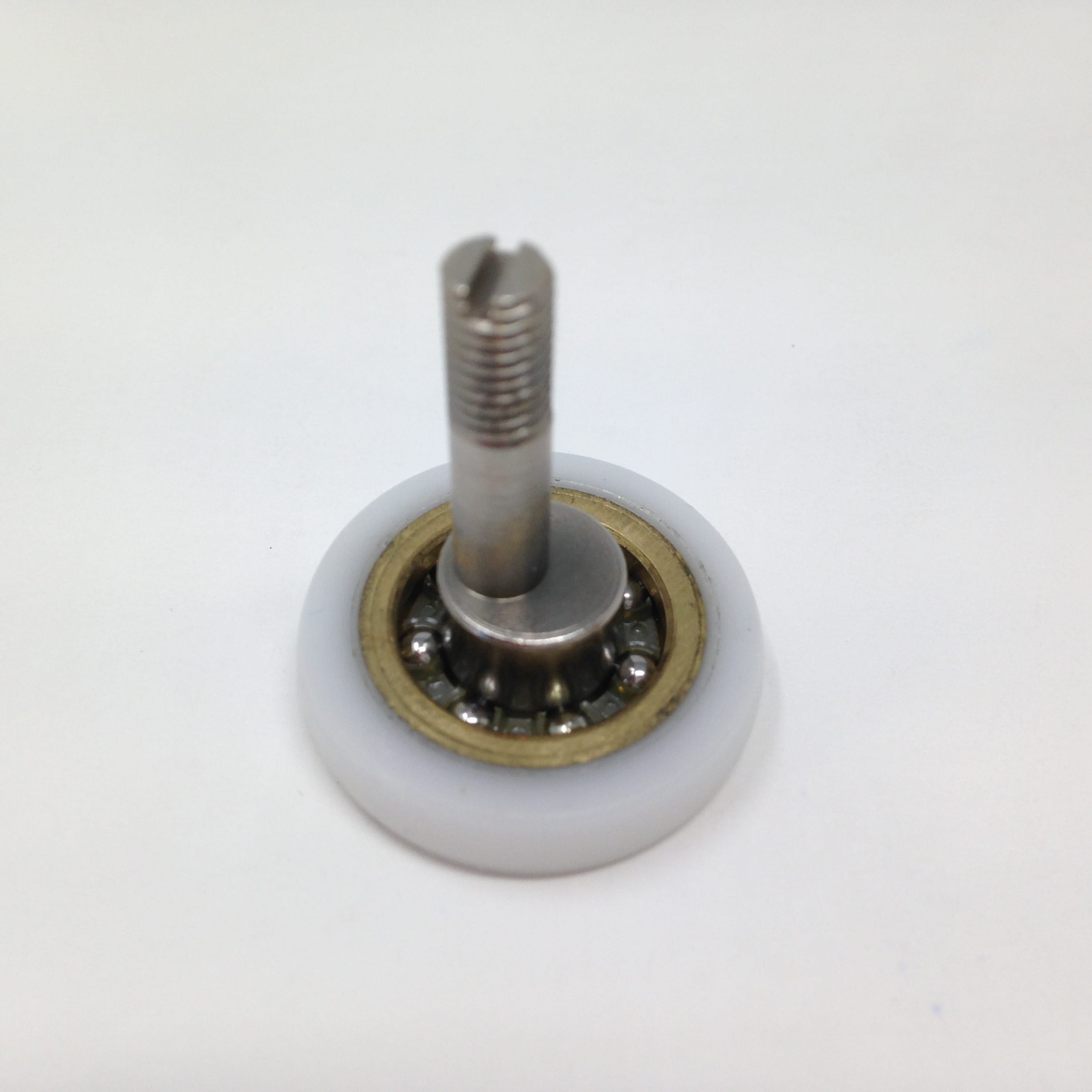 Roulette droite simple pour porte coulissante de cabine de douche. Vendue à l’unité, cette roulette se compose d’un corps en laiton. Le bandage plat de la roulette est en téflon, recouvrant un roulement à billes étanche en acier inoxydable. Le choix et la qualité des matériaux employés offrent une utilisation optimale de confort, limitant ainsi le frottement et le bruit lors de la manipulation de la porte.
