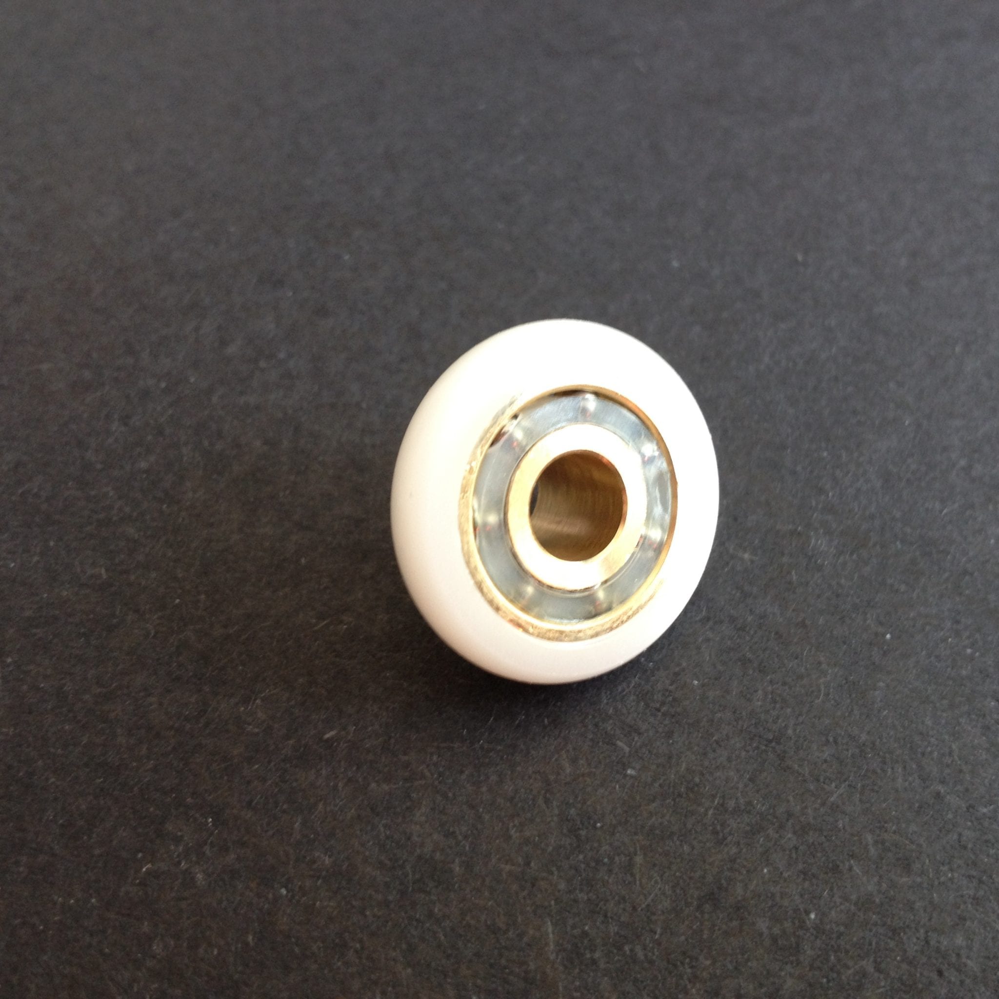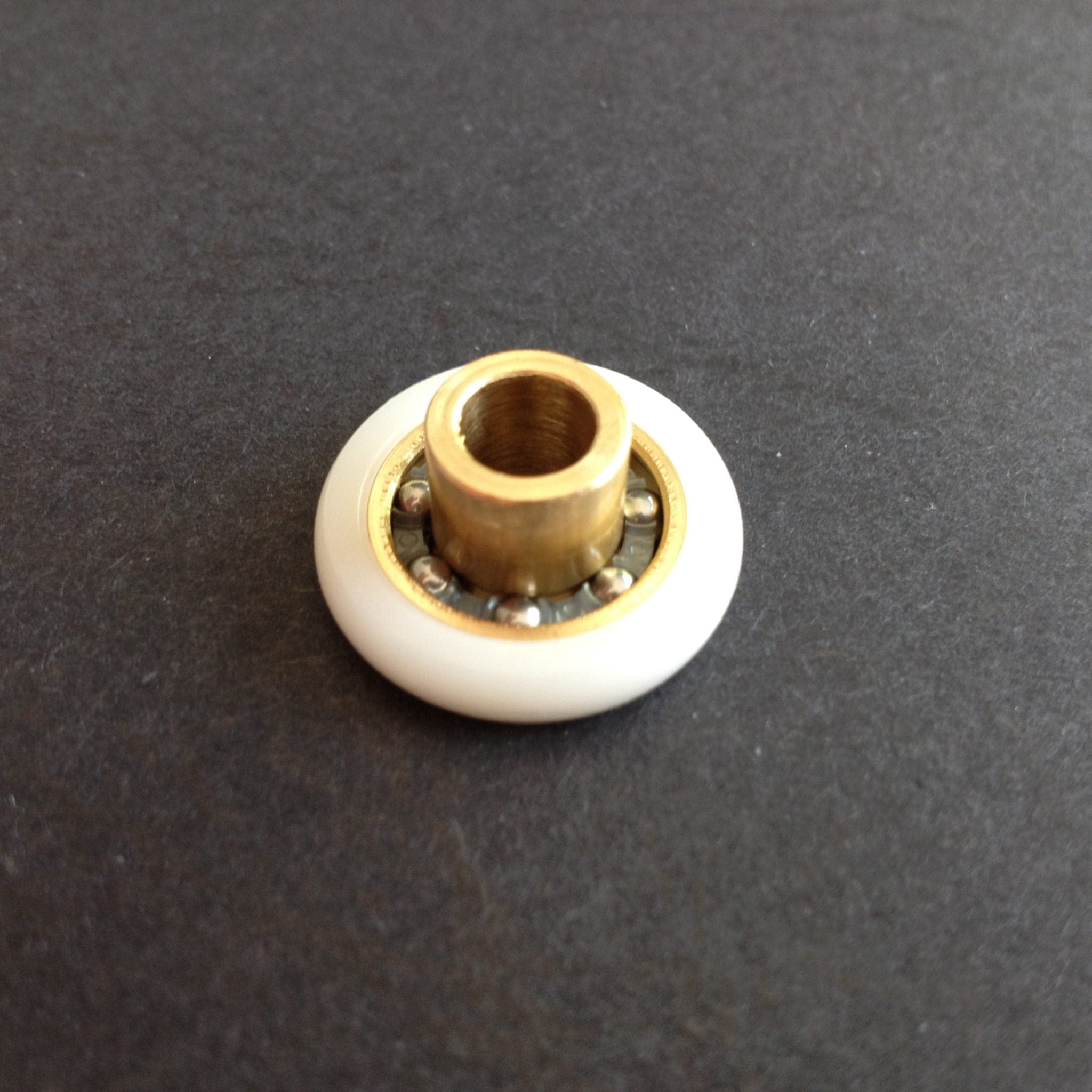 Roulette droite simple pour porte coulissante de cabine de douche. Vendue par lot de 2, cette roulette se compose d’un corps en laiton. Le bandage de la roulette est en téflon, recouvrant un roulement à billes étanche en acier inoxydable. Le choix et la qualité des matériaux employés offrent une utilisation optimale de confort, limitant ainsi le frottement et le bruit lors de la manipulation de la porte.