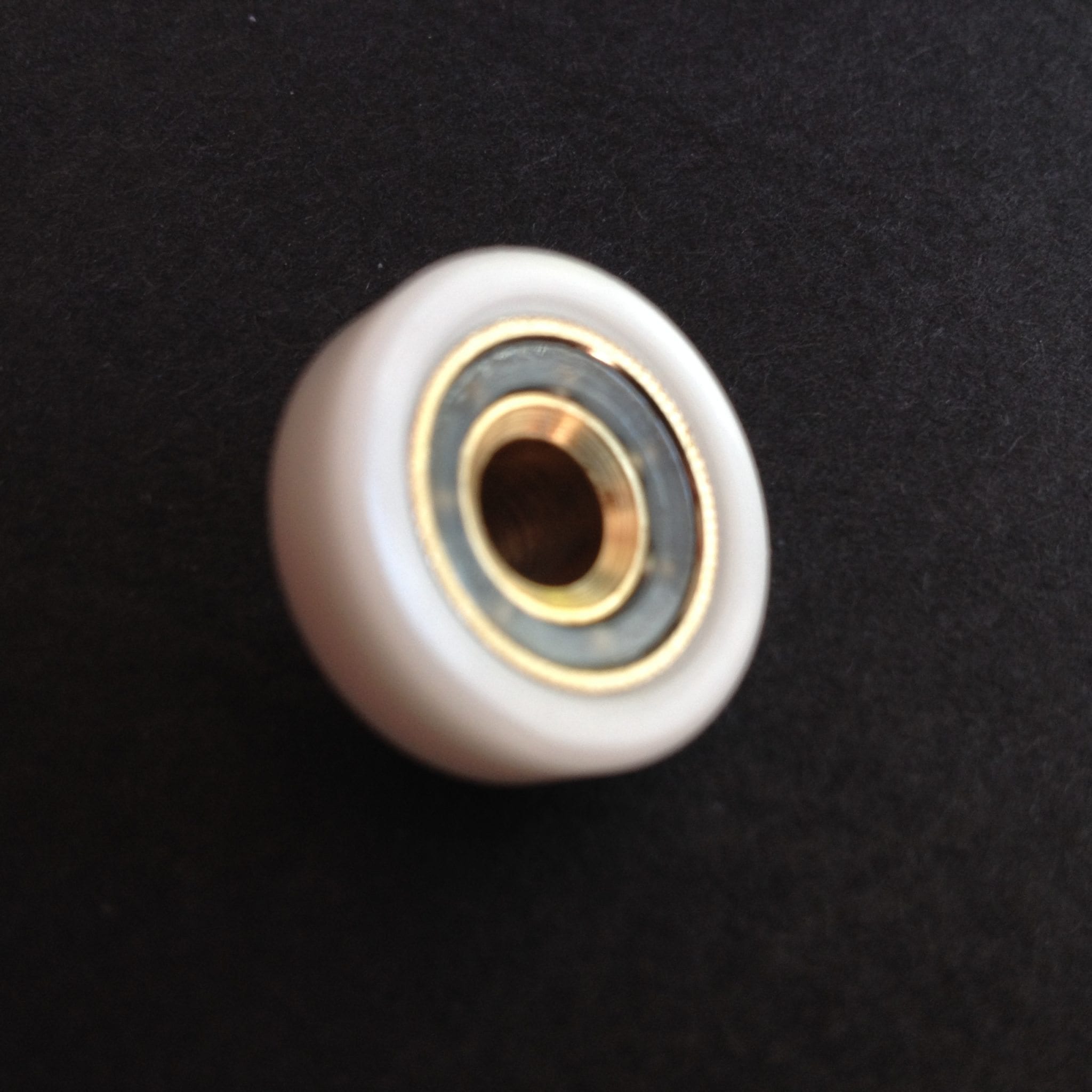 Roulette droite simple pour porte coulissante de cabine de douche. Vendue par lot de 2, cette roulette se compose d’un corps en laiton. Le bandage de la roulette est en téflon, recouvrant un roulement à billes étanche en acier inoxydable. Le choix et la qualité des matériaux employés offrent une utilisation optimale de confort, limitant ainsi le frottement et le bruit lors de la manipulation de la porte.