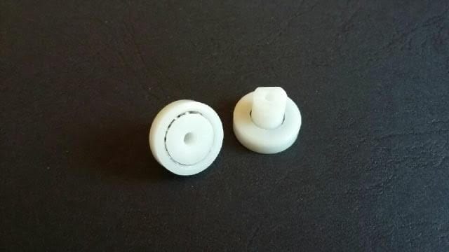 Roulette droite simple pour porte coulissante de cabine de douche. Vendue par lot de 2, ces roulettes se composent d’un corps en téflon. Le bandage de la roulette est en téflon, recouvrant un roulement à billes étanche en acier inoxydable. Le choix et la qualité des matériaux employés offrent une utilisation optimale de confort, limitant ainsi le frottement et le bruit lors de la manipulation de la porte.