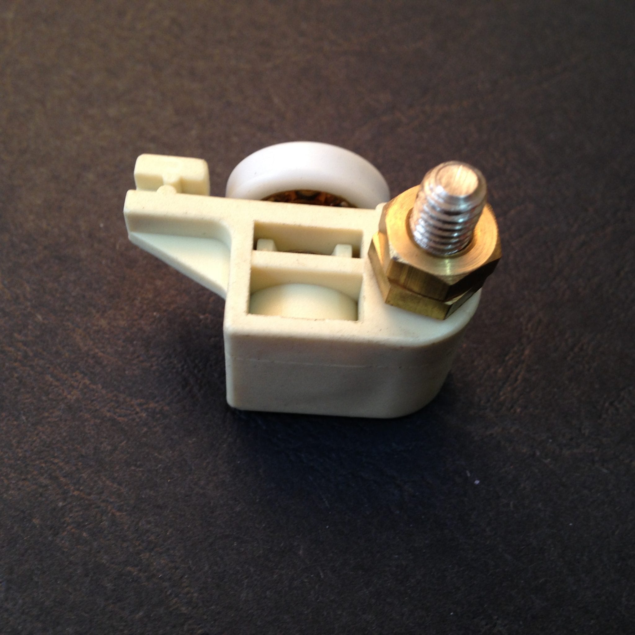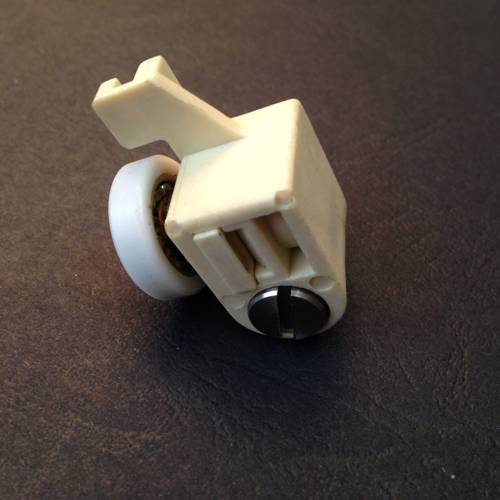 Roulette droite simple pour porte coulissante de cabine de douche. Vendue par lot de 2, cette roulette se compose d’un corps en téflon. Le bandage de la roulette est en téflon, recouvrant un roulement à billes étanche en acier inoxydable. Le choix et la qualité des matériaux employés offrent une utilisation optimale de confort, limitant ainsi le frottement et le bruit lors de la manipulation de la porte.