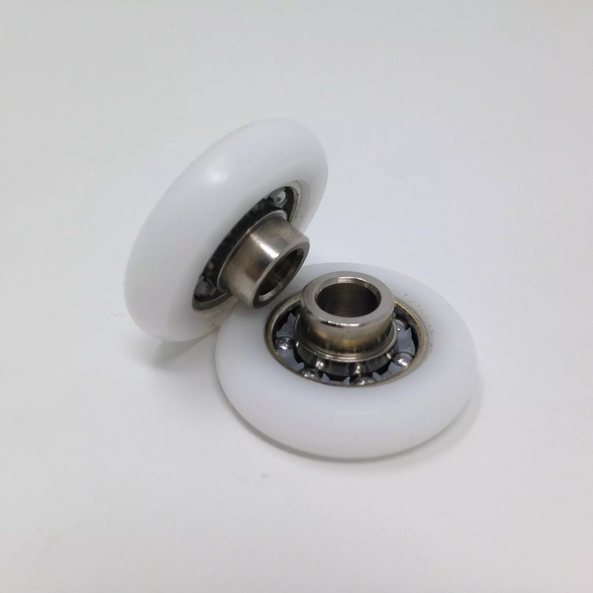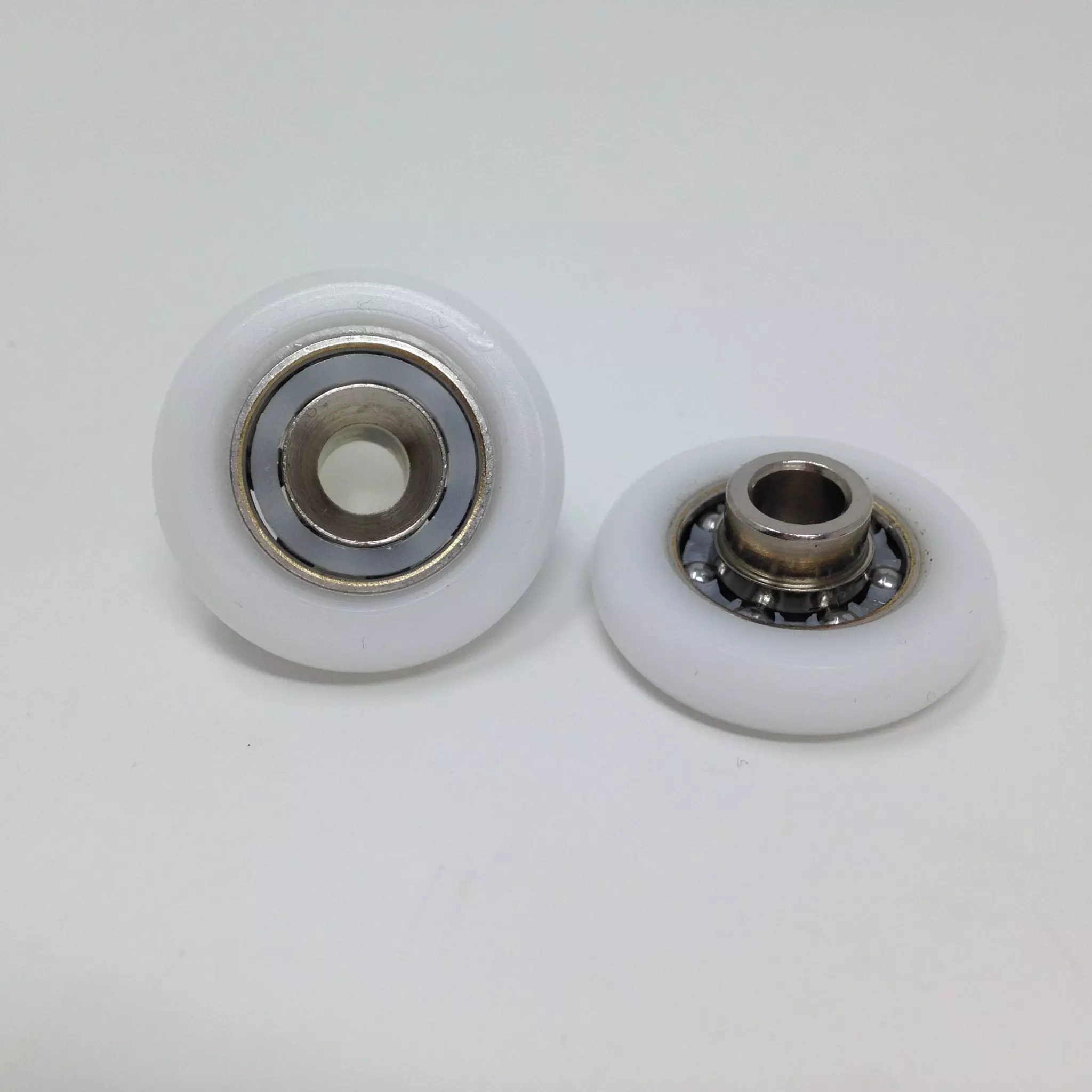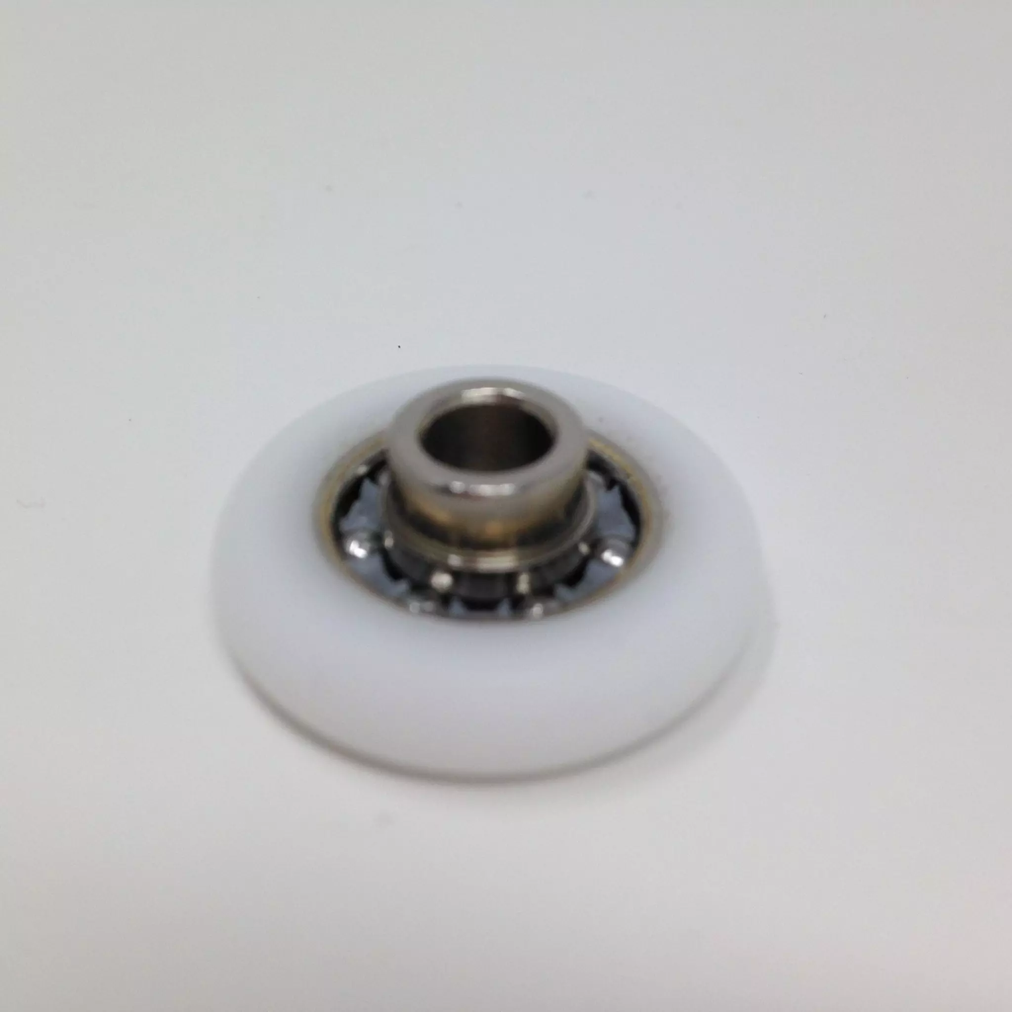 Roulette droite simple pour porte coulissante de cabine de douche. Vendue par lot de 2, cette roulette se compose d’un corps en laiton. Le bandage de la roulette est en téflon, recouvrant un roulement à billes étanche en acier inoxydable. Le choix et la qualité des matériaux employés offrent une utilisation optimale de confort, limitant ainsi le frottement et le bruit lors de la manipulation de la porte.