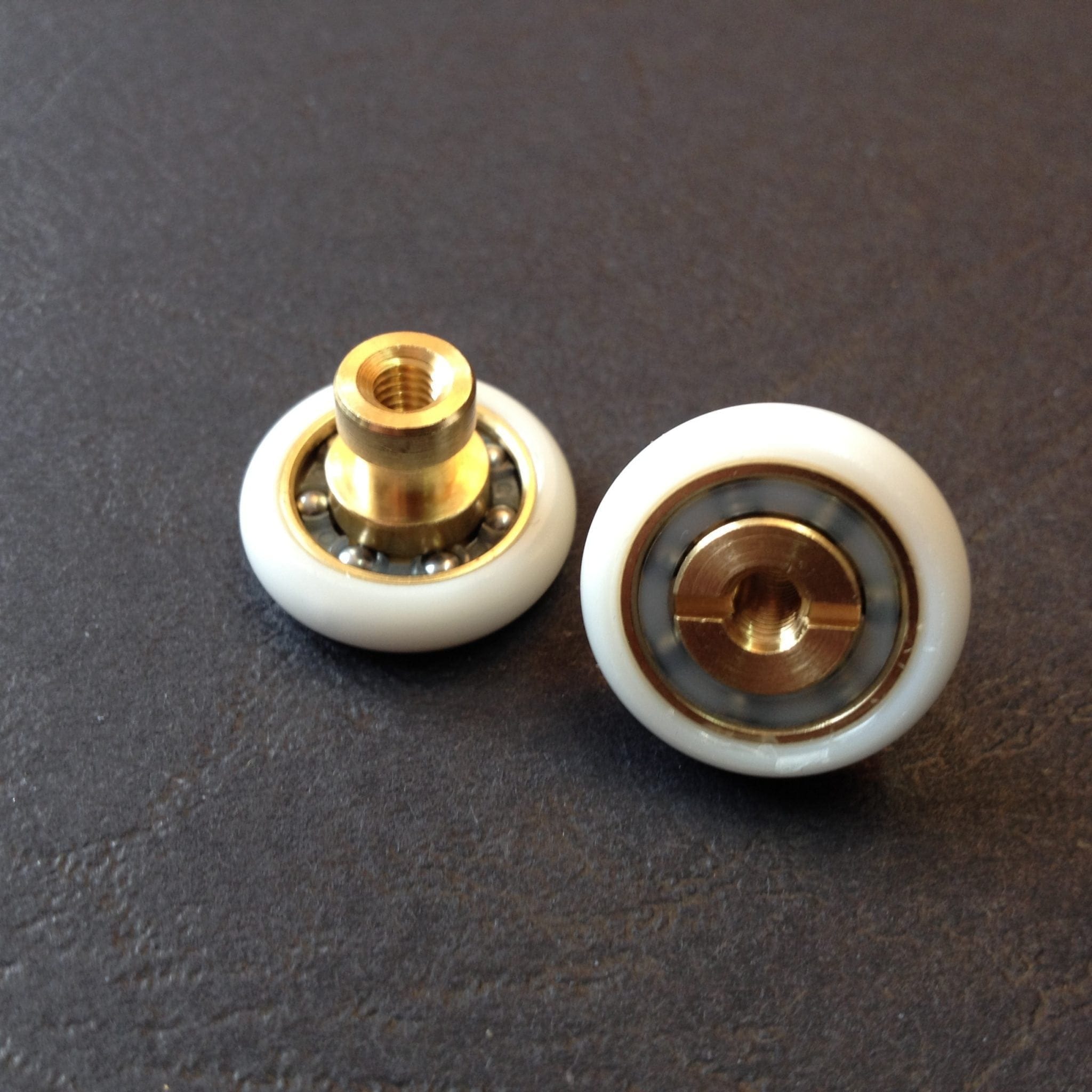Roulette droite simple pour porte coulissante de cabine de douche. Vendue à l’unité, cette roulette se compose d’un corps en laiton. Le bandage plat de la roulette est en téflon, recouvrant un roulement à billes étanche en acier inoxydable. Le choix et la qualité des matériaux employés offrent une utilisation optimale de confort, limitant ainsi le frottement et le bruit lors de la manipulation de la porte.