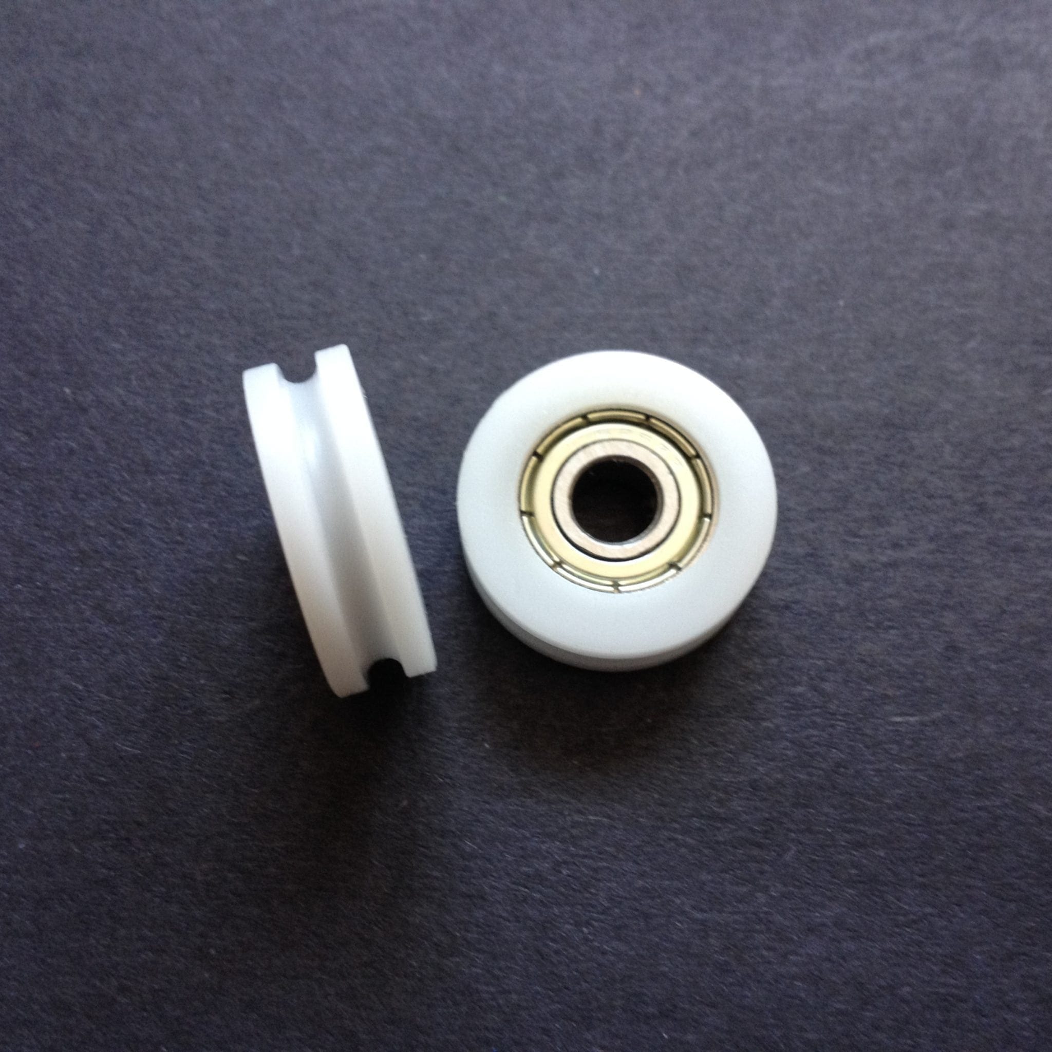 Roulette droite simple pour porte coulissante de cabine de douche. Vendue par lot de 4, cette roulette se compose d’un corps en laiton. Le bandage de la roulette est en téflon, recouvrant un roulement à billes étanche en acier inoxydable. Le choix et la qualité des matériaux employés offrent une utilisation optimale de confort, limitant ainsi le frottement et le bruit lors de la manipulation de la porte.