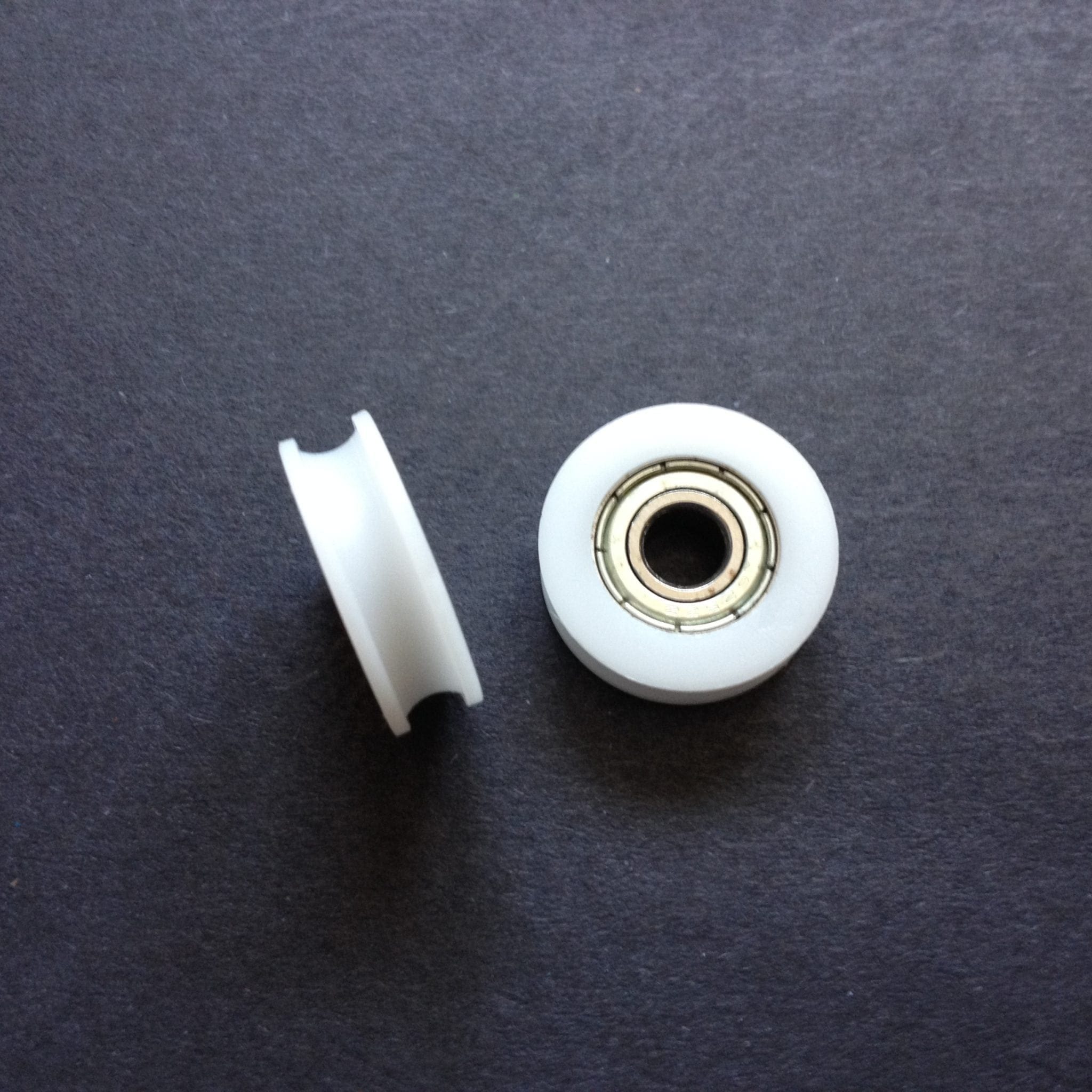 Roulette droite simple pour porte coulissante de cabine de douche. Vendue par lot de 4, cette roulette se compose d’un corps en laiton. Le bandage de la roulette est en téflon, recouvrant un roulement à billes étanche en acier inoxydable. Le choix et la qualité des matériaux employés offrent une utilisation optimale de confort, limitant ainsi le frottement et le bruit lors de la manipulation de la porte.
