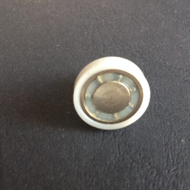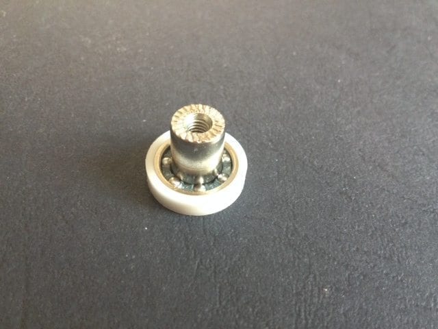 Roulette droite simple pour porte coulissante de cabine de douche. Vendue à l’unité, cette roulette se compose d’un corps en laiton. Le bandage plat de la roulette est en téflon, recouvrant un roulement à billes étanche en acier inoxydable. Le choix et la qualité des matériaux employés offrent une utilisation optimale de confort, limitant ainsi le frottement et le bruit lors de la manipulation de la porte.