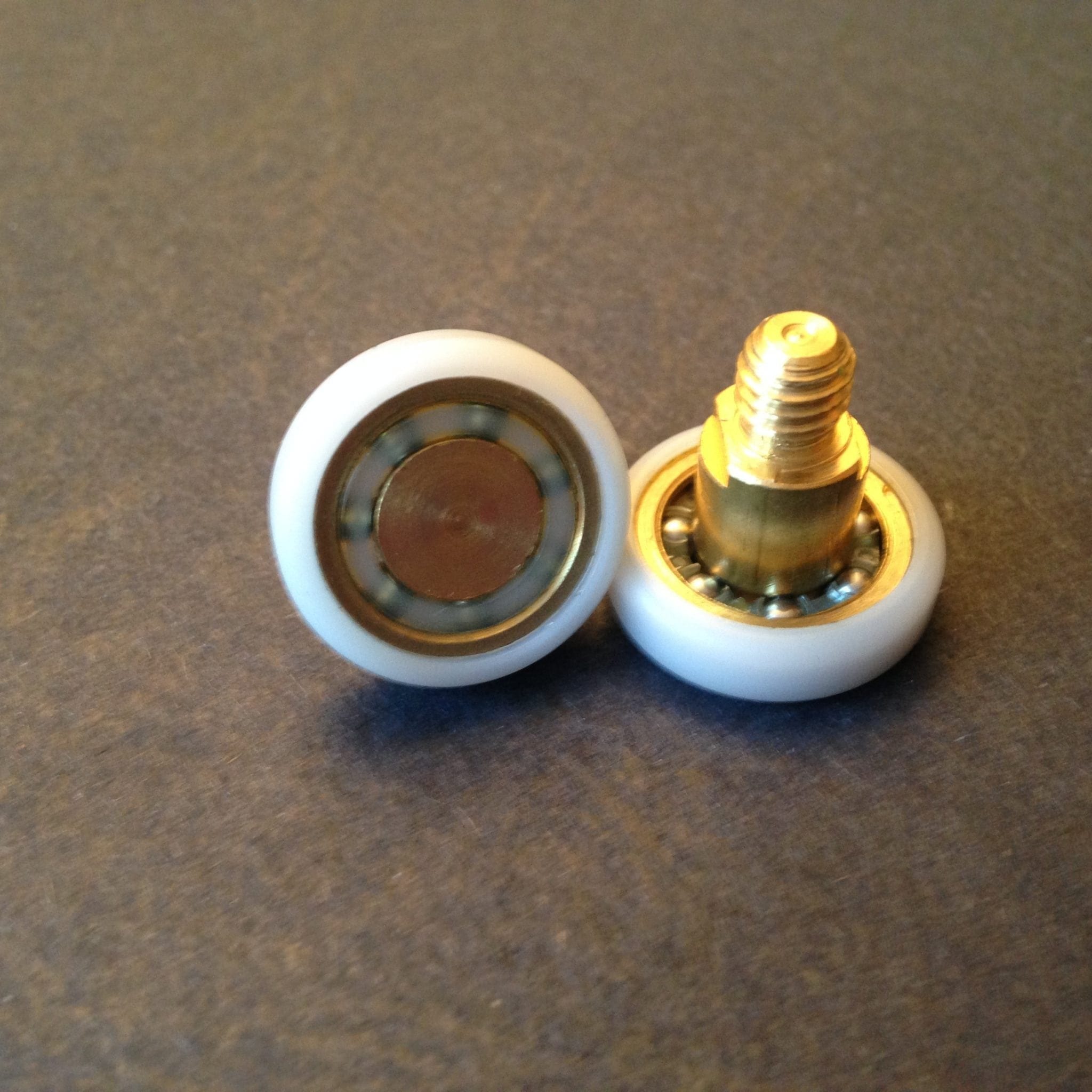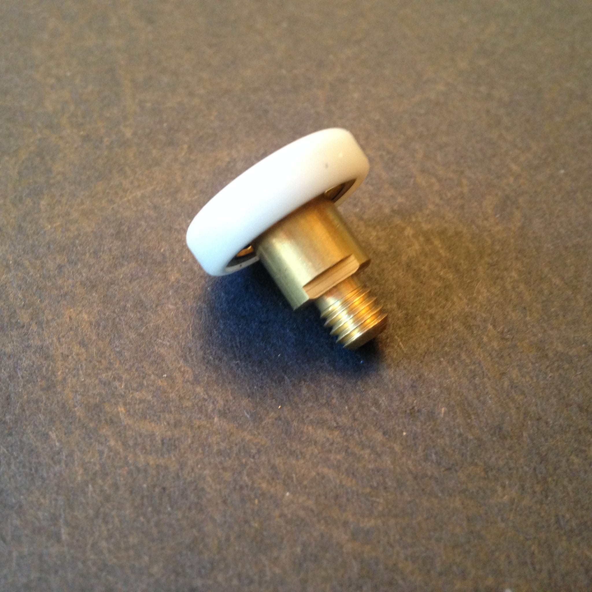 Roulette droite simple pour porte coulissante de cabine de douche. Vendue à l’unité, cette roulette se compose d’un corps en laiton. Le bandage plat de la roulette est en téflon, recouvrant un roulement à billes étanche en acier inoxydable. Le choix et la qualité des matériaux employés offrent une utilisation optimale de confort, limitant ainsi le frottement et le bruit lors de la manipulation de la porte.