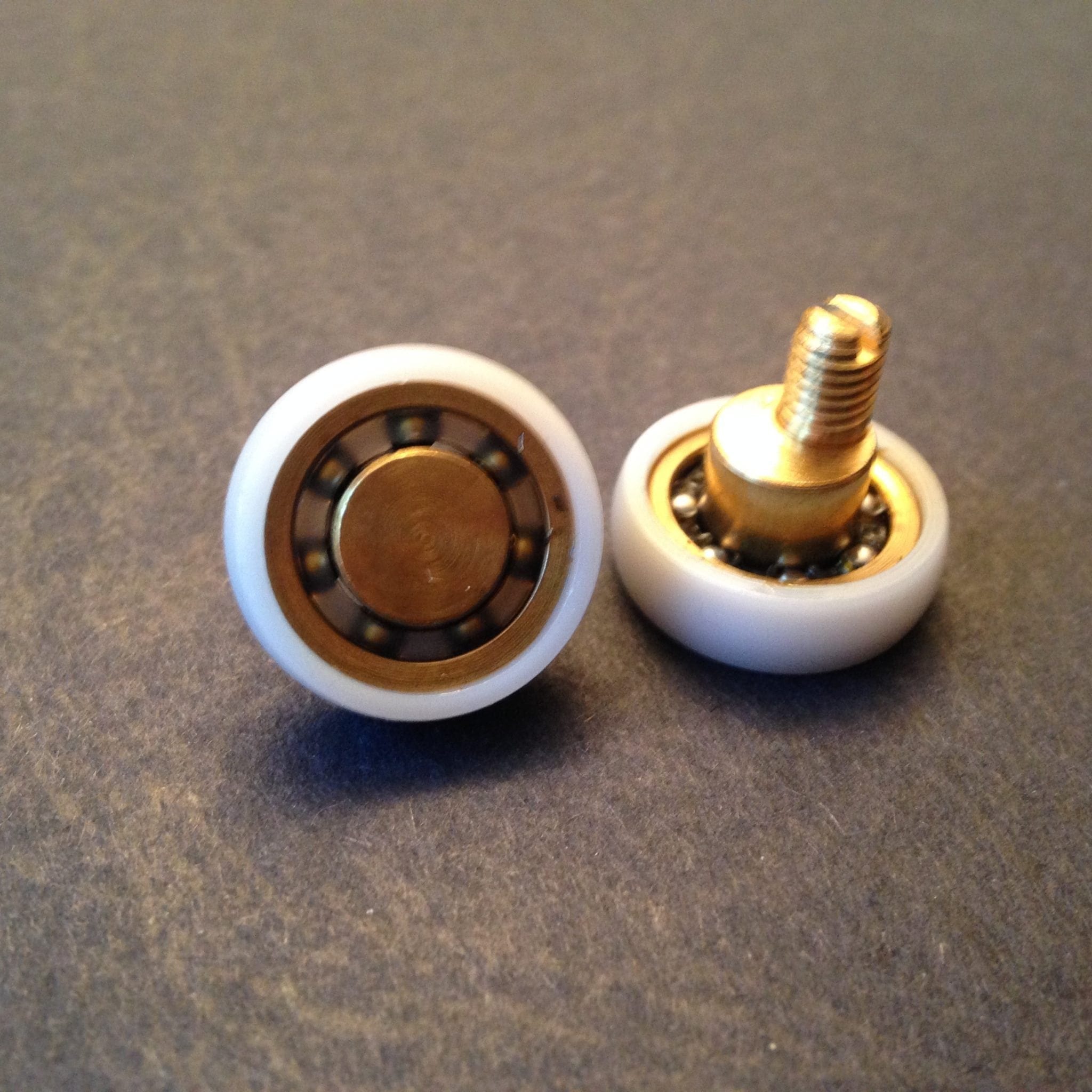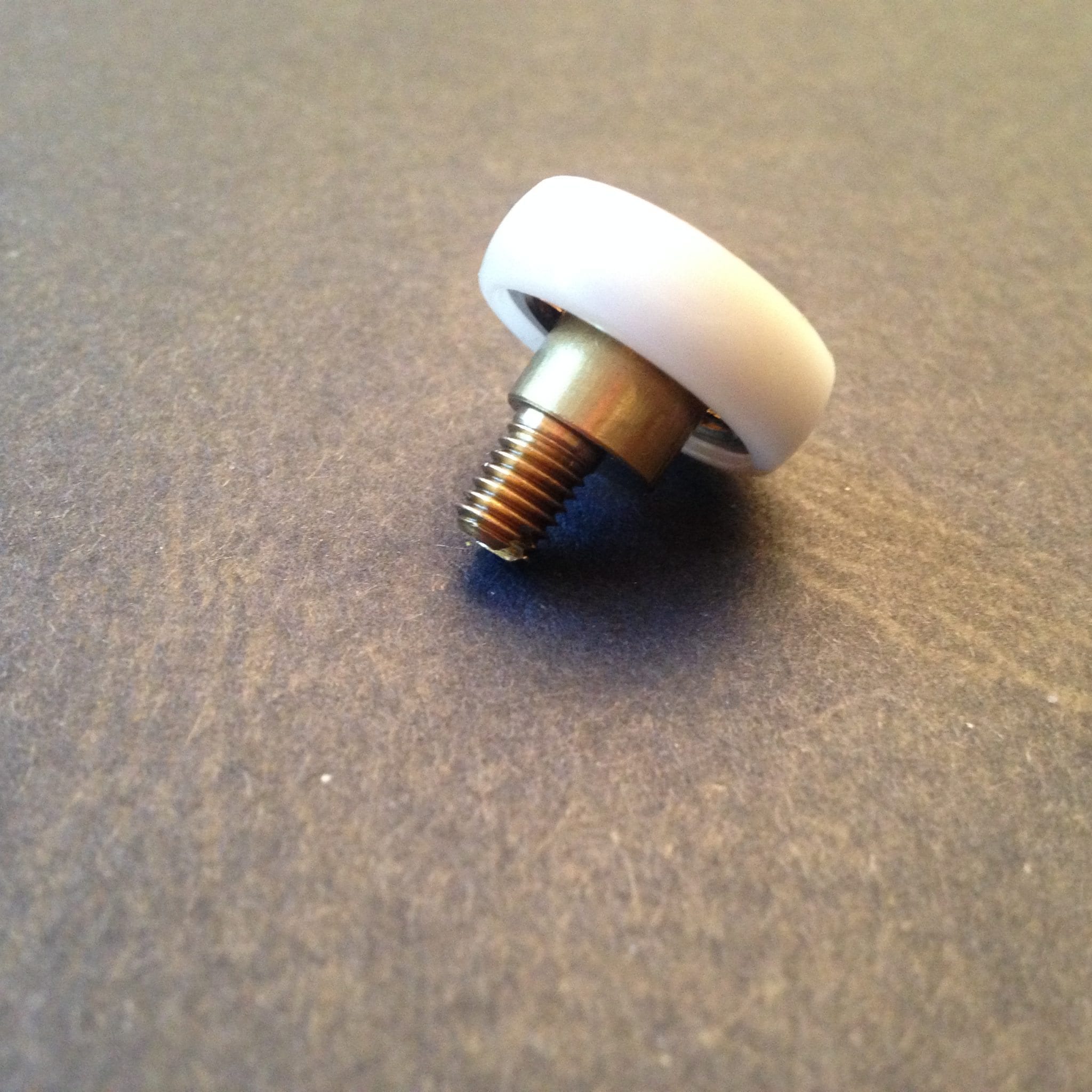 Roulette droite simple pour porte coulissante de cabine de douche. Vendue à l’unité, cette roulette se compose d’un corps en laiton. Le bandage plat de la roulette est en téflon, recouvrant un roulement à billes étanche en acier inoxydable. Le choix et la qualité des matériaux employés offrent une utilisation optimale de confort, limitant ainsi le frottement et le bruit lors de la manipulation de la porte.