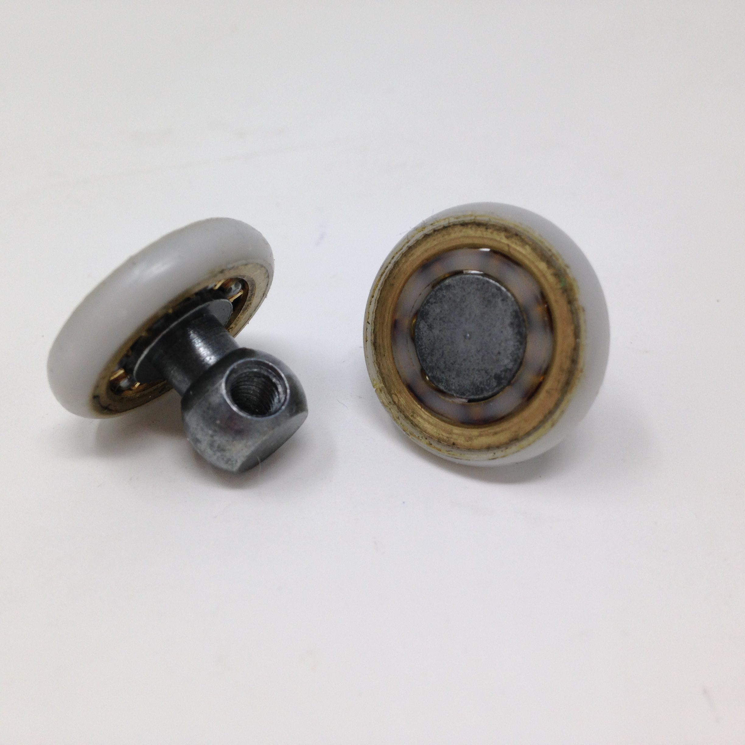 Roulette droite simple pour porte coulissante de cabine de douche. Vendue à l’unité, cette roulette se compose d’un corps en laiton. Le bandage plat de la roulette est en téflon, recouvrant un roulement à billes étanche en acier inoxydable. Le choix et la qualité des matériaux employés offrent une utilisation optimale de confort, limitant ainsi le frottement et le bruit lors de la manipulation de la porte.