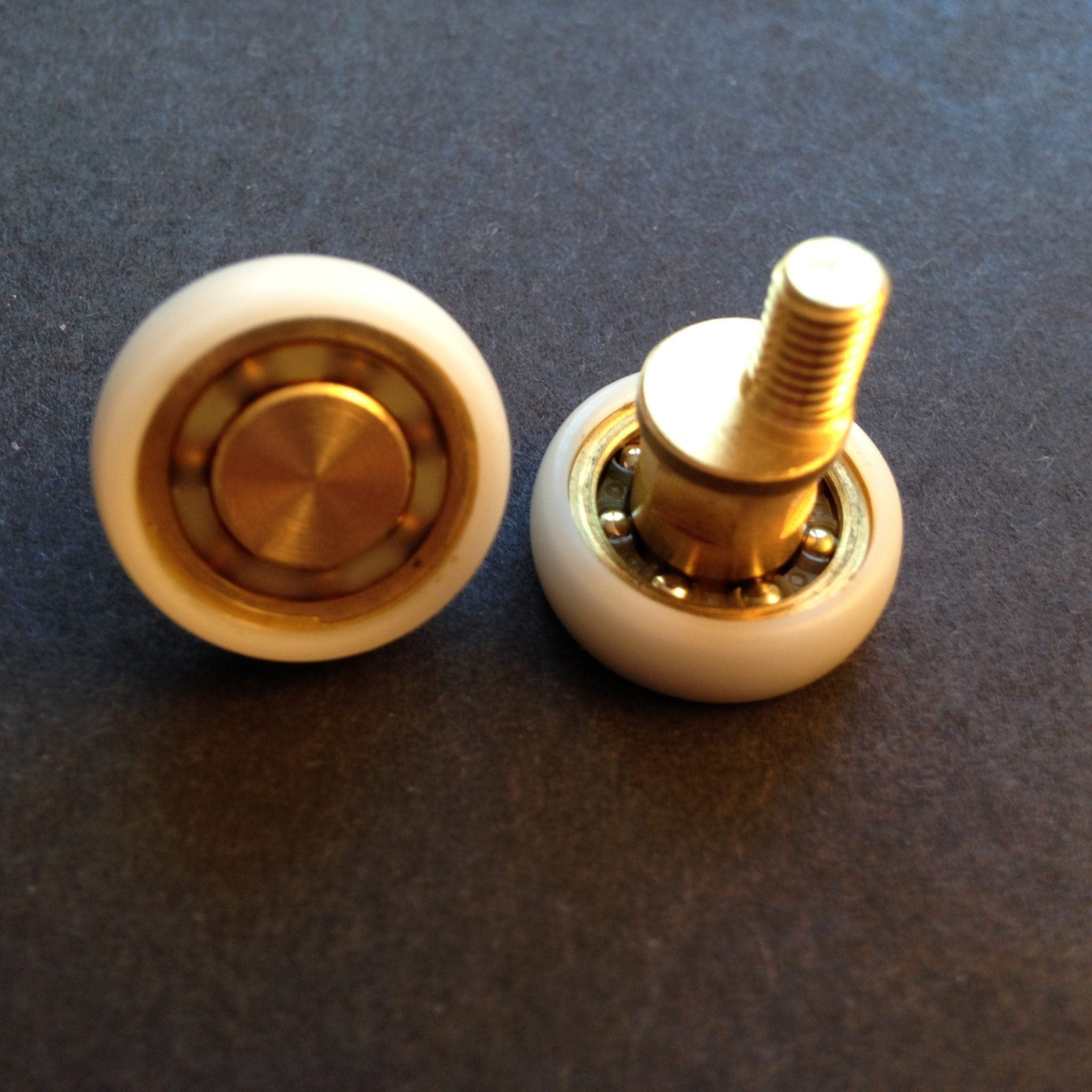 Roulette droite simple pour porte coulissante de cabine de douche. Vendue à l’unité, cette roulette se compose d’un corps en laiton. Le bandage plat de la roulette est en téflon, recouvrant un roulement à billes étanche en acier inoxydable. Le choix et la qualité des matériaux employés offrent une utilisation optimale de confort, limitant ainsi le frottement et le bruit lors de la manipulation de la porte.