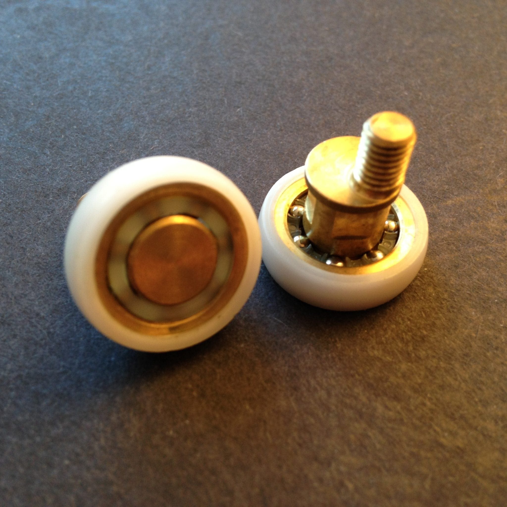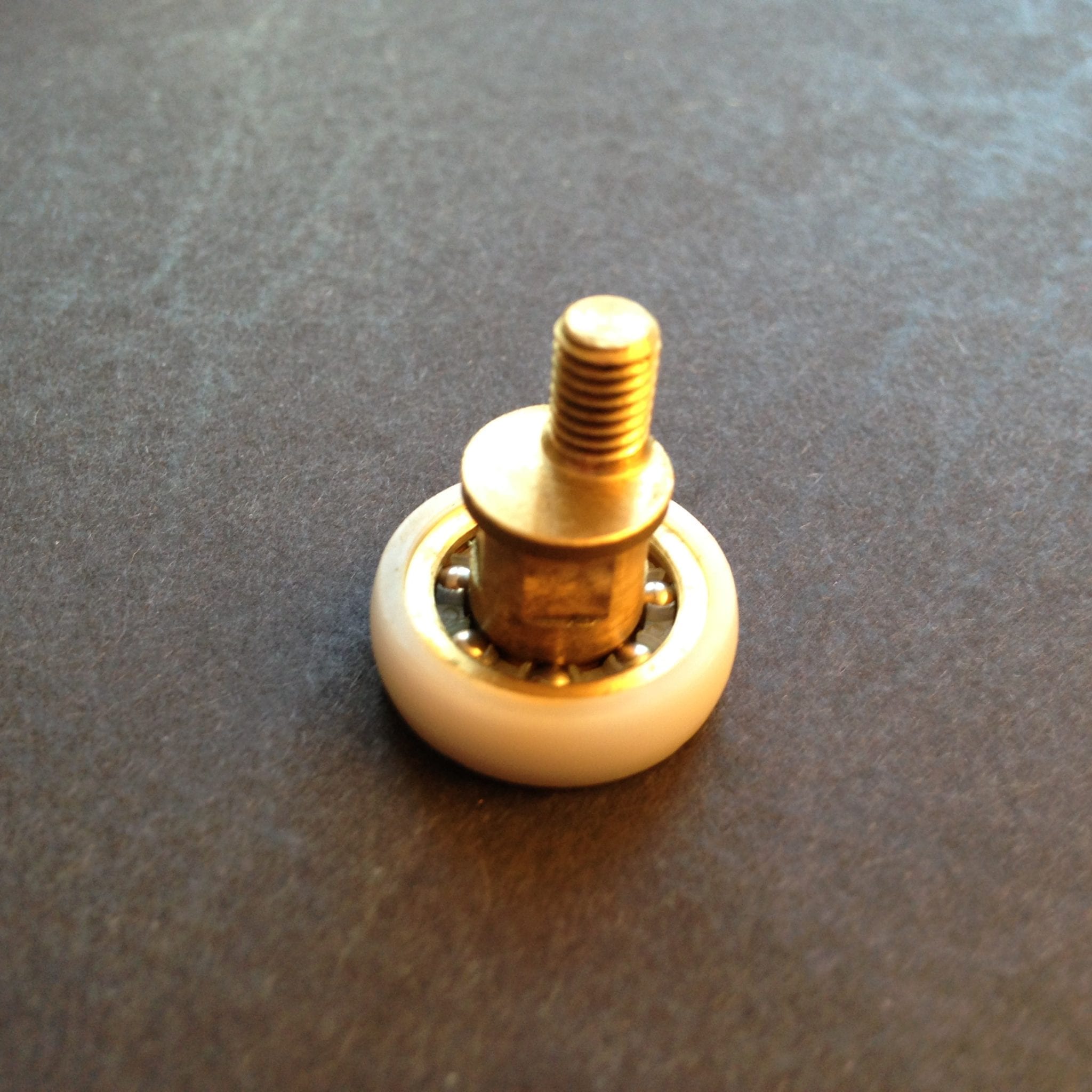 Roulette droite simple pour porte coulissante de cabine de douche. Vendue à l’unité, cette roulette se compose d’un corps en laiton. Le bandage plat de la roulette est en téflon, recouvrant un roulement à billes étanche en acier inoxydable. Le choix et la qualité des matériaux employés offrent une utilisation optimale de confort, limitant ainsi le frottement et le bruit lors de la manipulation de la porte.