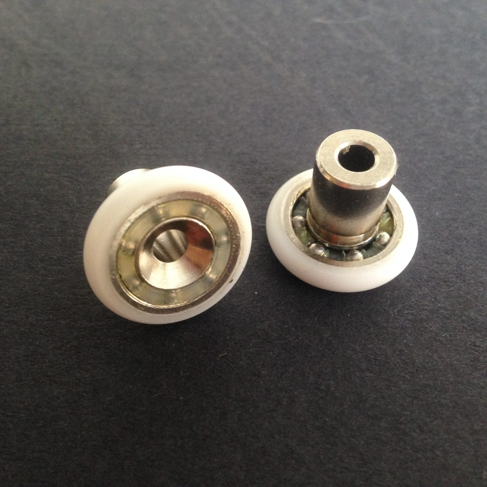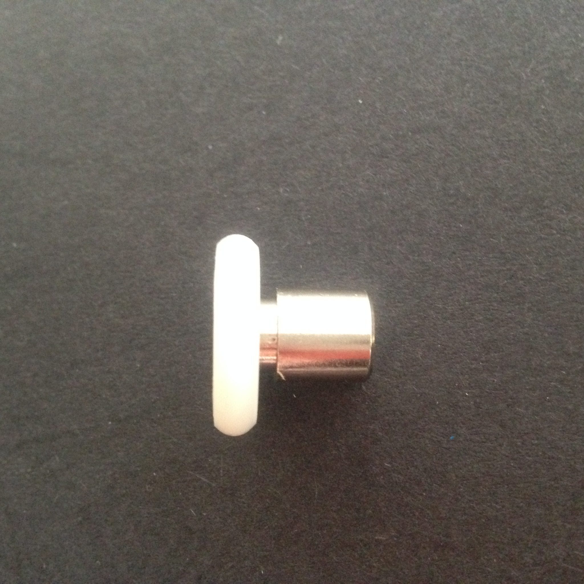 Roulette droite simple pour porte coulissante de cabine de douche. Vendue à l’unité, cette roulette se compose d’un corps en laiton. Le bandage plat de la roulette est en téflon, recouvrant un roulement à billes étanche en acier inoxydable. Le choix et la qualité des matériaux employés offrent une utilisation optimale de confort, limitant ainsi le frottement et le bruit lors de la manipulation de la porte.