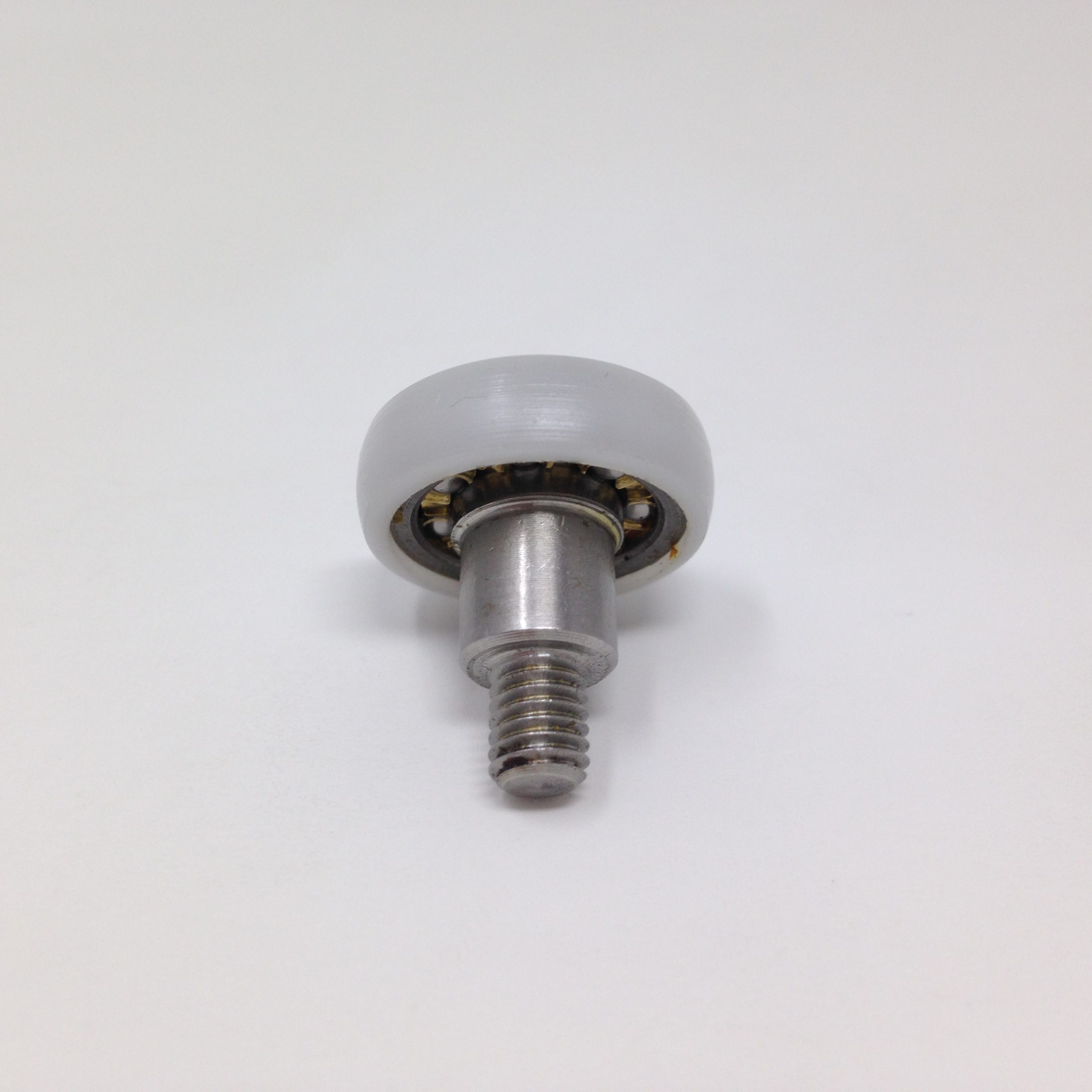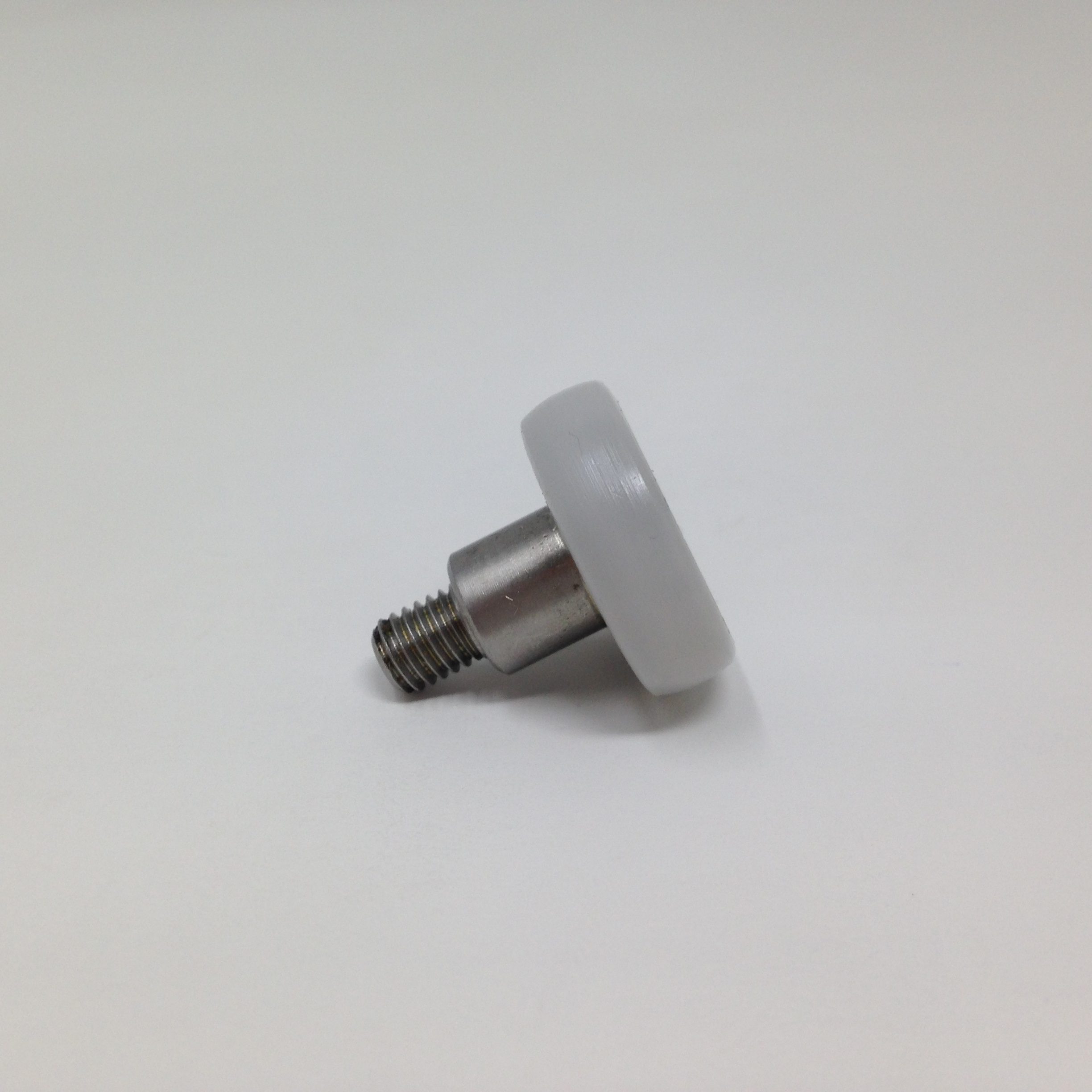Roulette droite simple pour porte coulissante de cabine de douche. Vendue à l’unité, cette roulette se compose d’un corps en laiton. Le bandage plat de la roulette est en téflon, recouvrant un roulement à billes étanche en acier inoxydable. Le choix et la qualité des matériaux employés offrent une utilisation optimale de confort, limitant ainsi le frottement et le bruit lors de la manipulation de la porte.