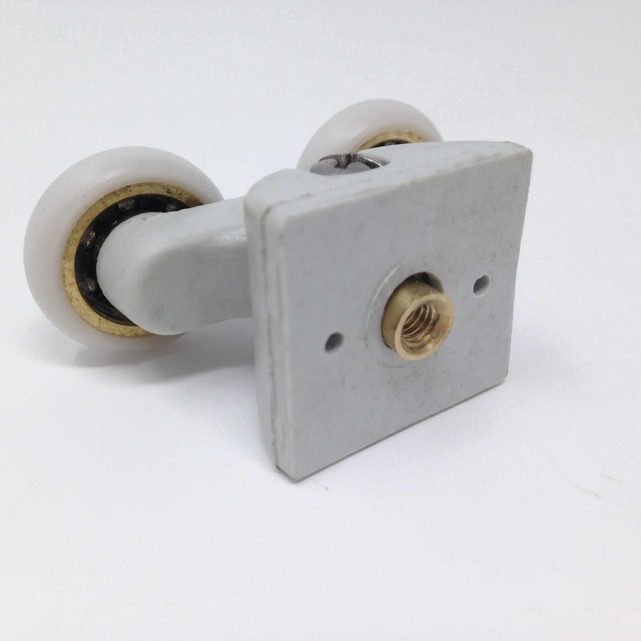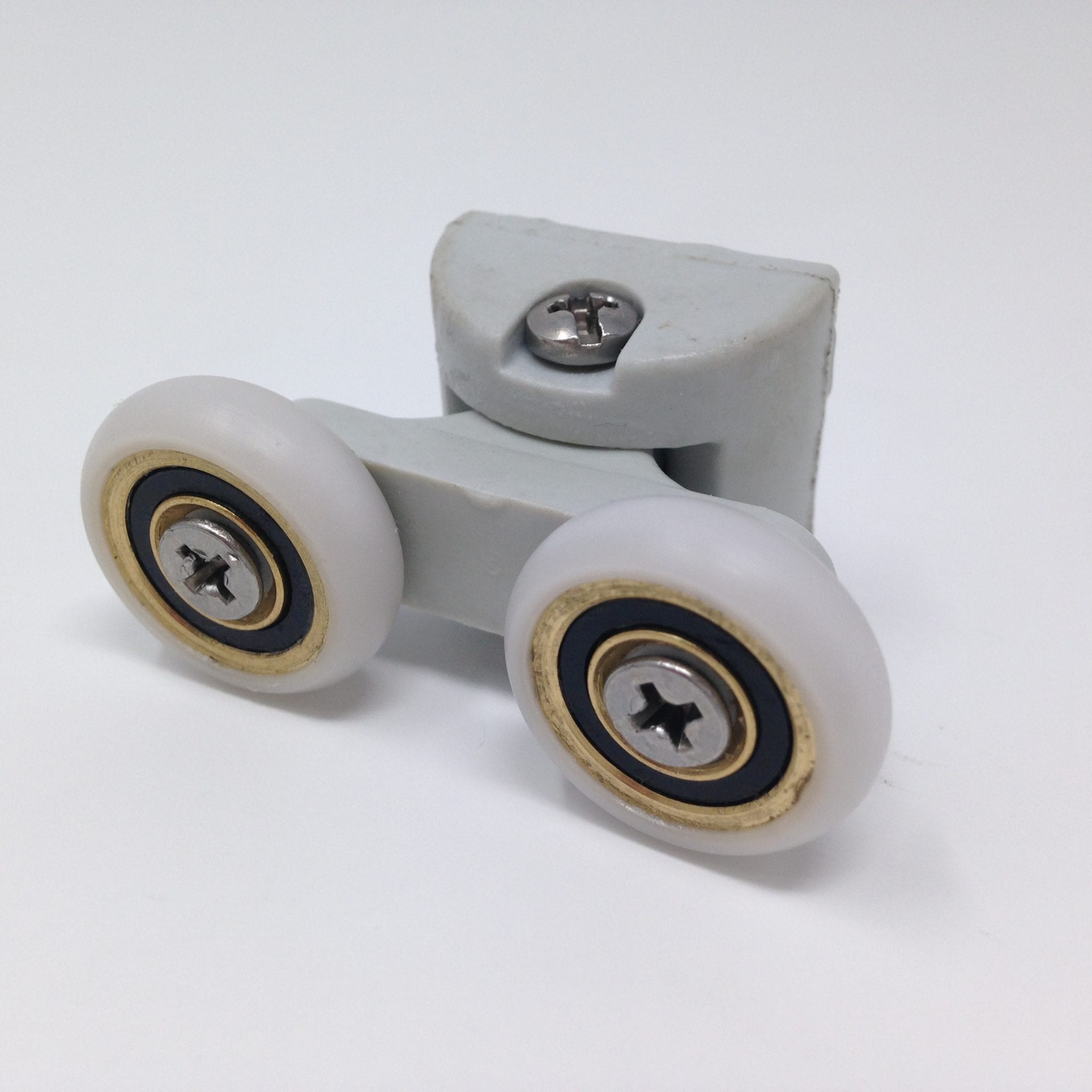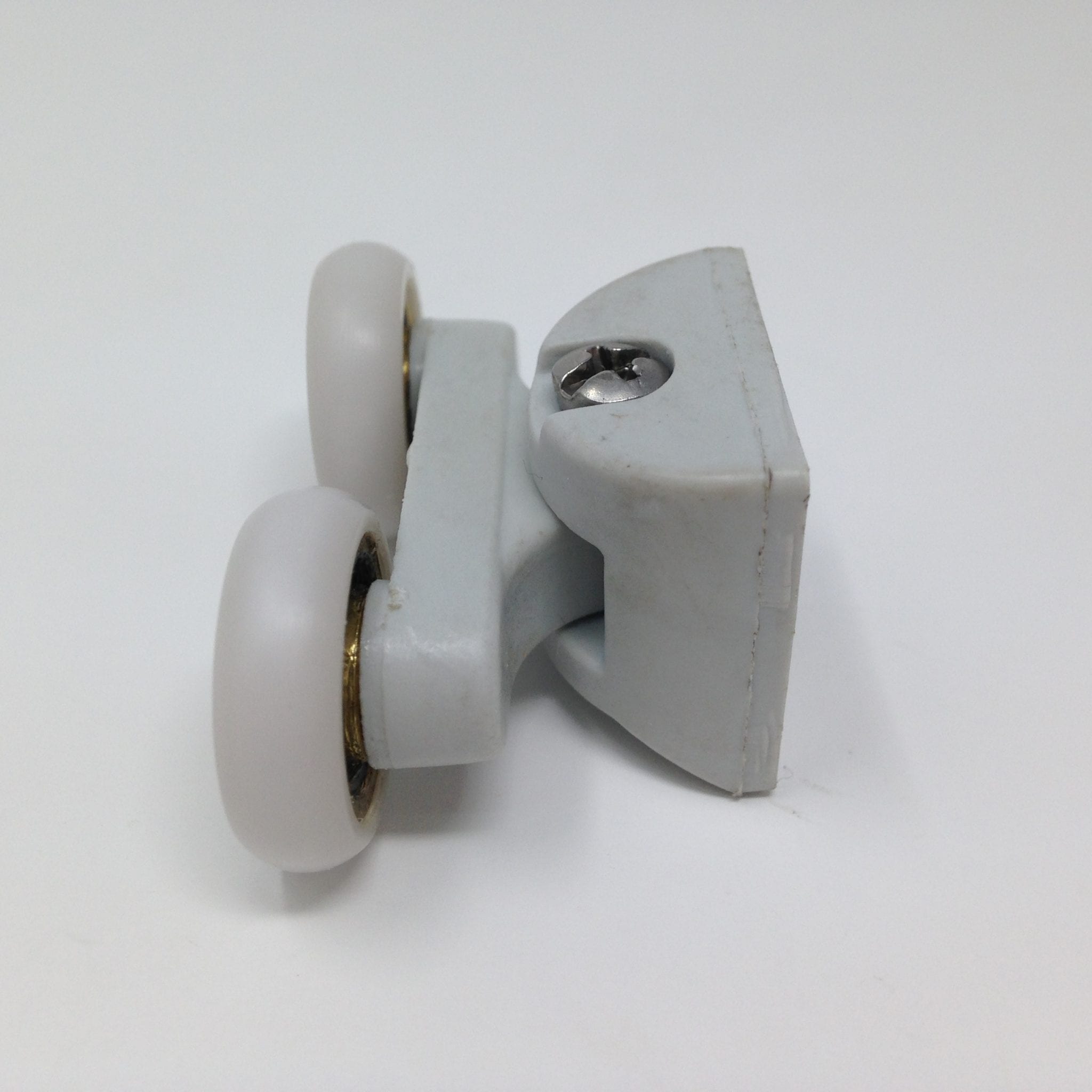 Roulette droite double pour porte coulissante de cabine de douche. Vendue à l’unité, cette roulette se compose d’un corps en PVC et d’un bandage en téflon, recouvrant un roulement en acier inoxydable. Le choix et la qualité des matériaux employés offrent une utilisation optimale de confort, limitant ainsi le frottement et le bruit lors de la manipulation de la porte.