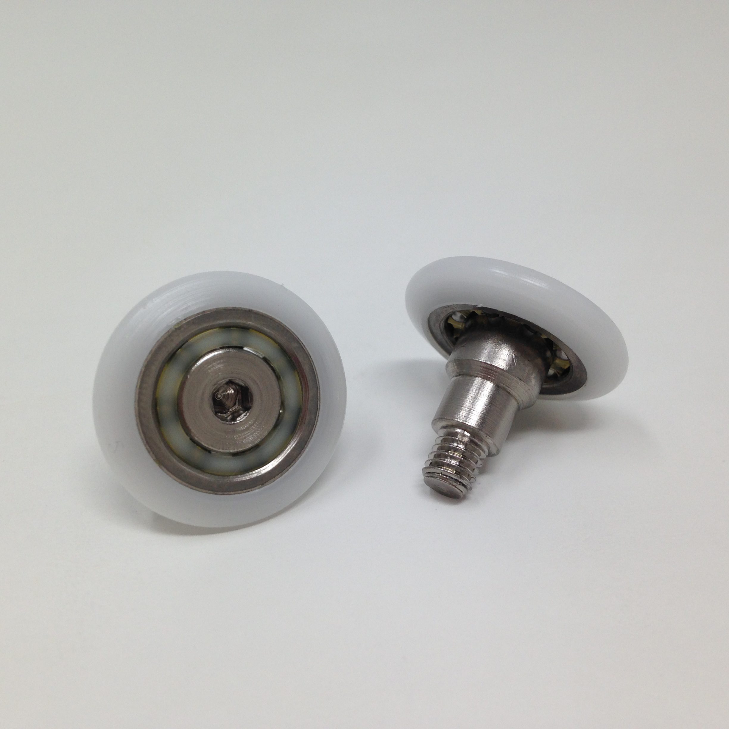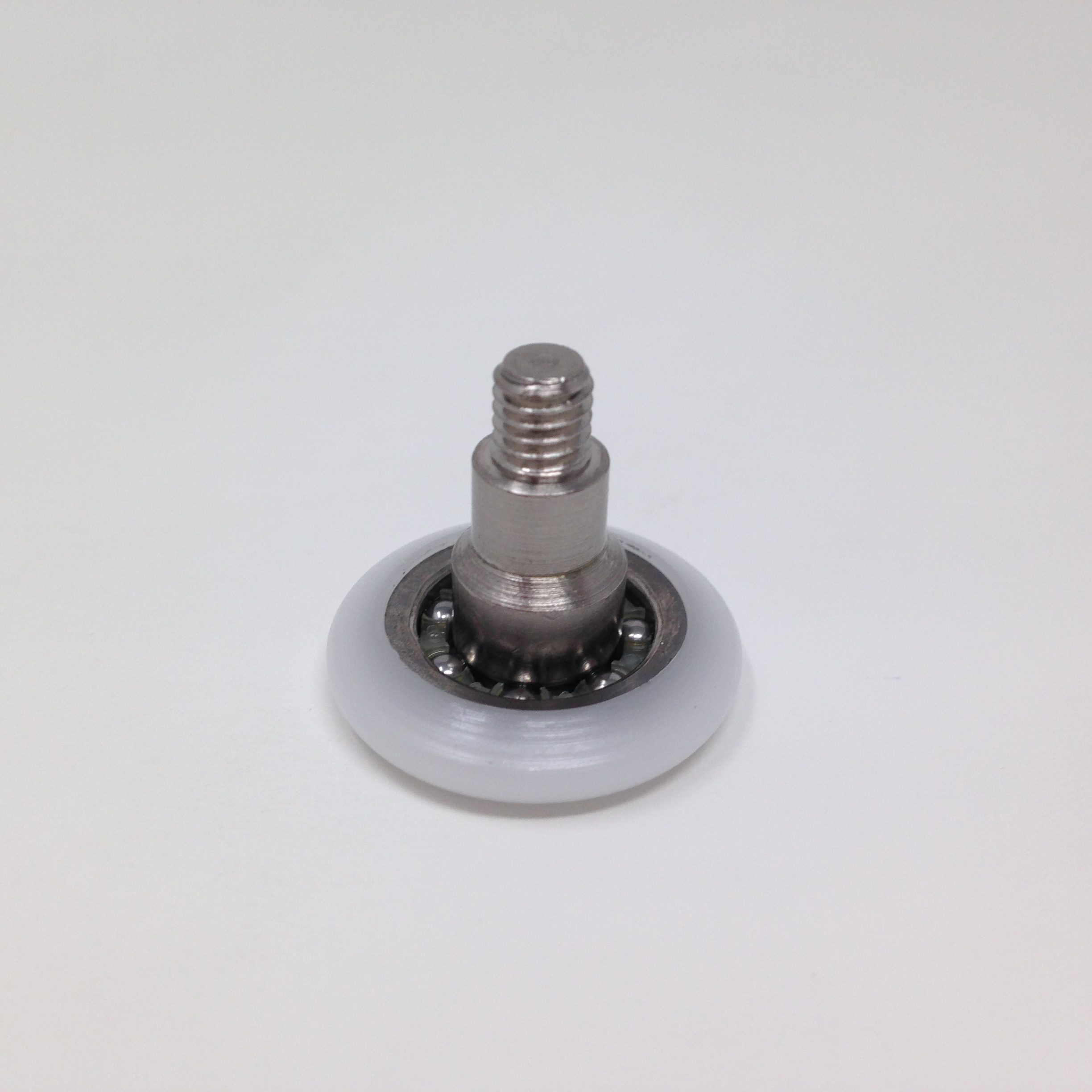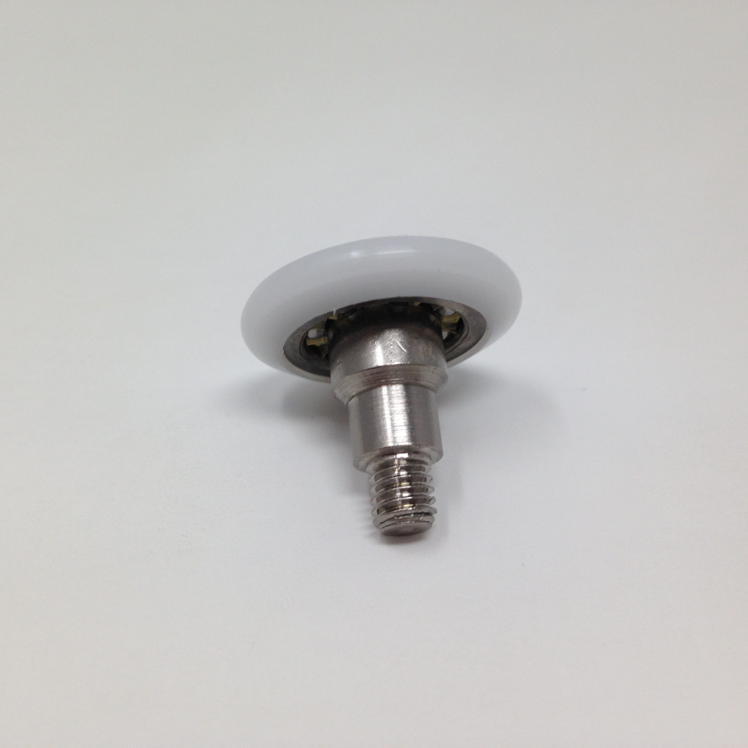 Roulette droite simple pour porte coulissante de cabine de douche. Vendue à l’unité, cette roulette se compose d’un corps en laiton. Le bandage plat de la roulette est en téflon, recouvrant un roulement à billes étanche en acier inoxydable. Le choix et la qualité des matériaux employés offrent une utilisation optimale de confort, limitant ainsi le frottement et le bruit lors de la manipulation de la porte.
