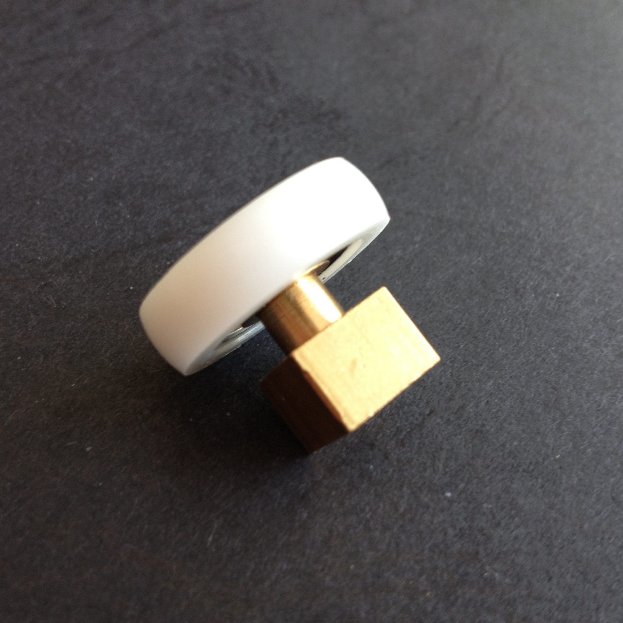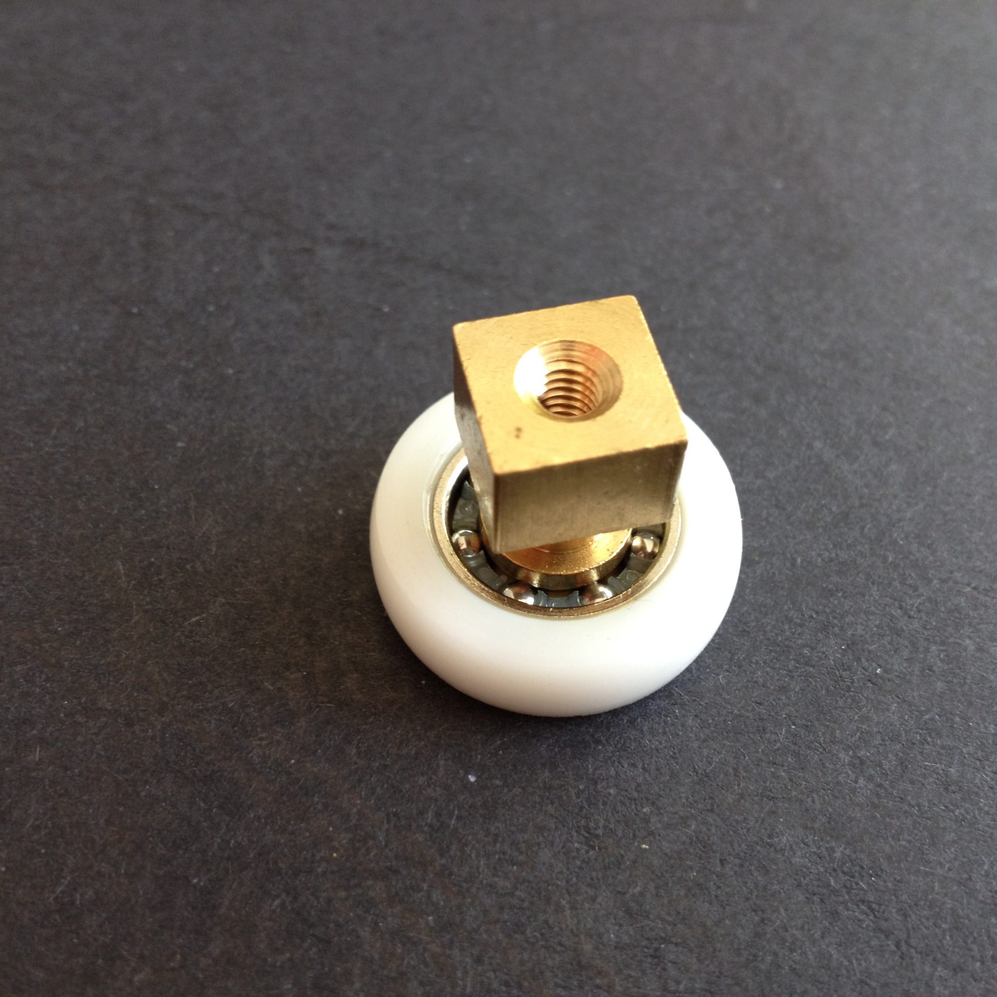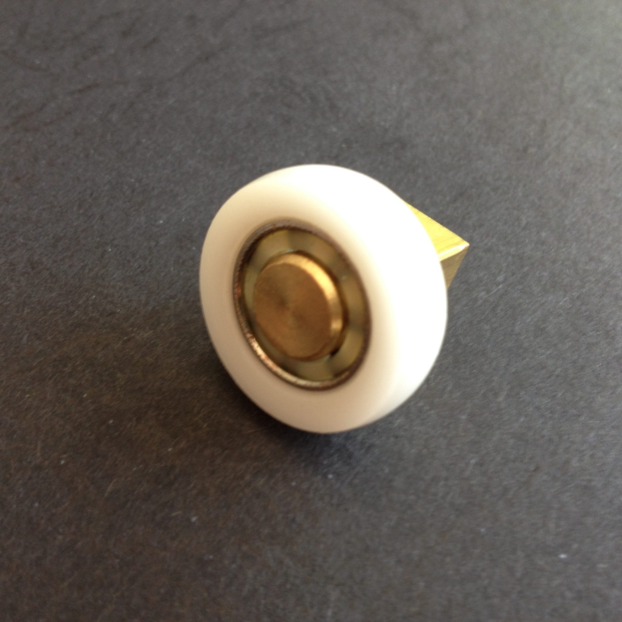 Roulette droite simple pour porte coulissante de cabine de douche. Vendue à l’unité, cette roulette se compose d’un corps en laiton. Le bandage de la roulette est en téflon, recouvrant un roulement à billes étanche en acier inoxydable. Le choix et la qualité des matériaux employés offrent une utilisation optimale de confort, limitant ainsi le frottement et le bruit lors de la manipulation de la porte.