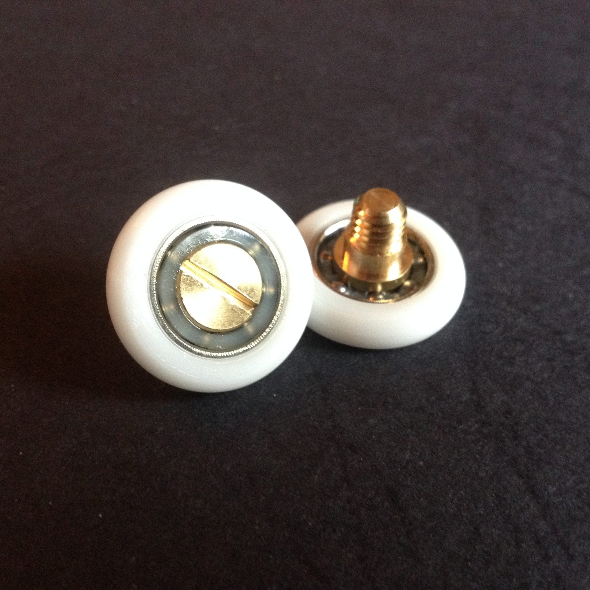 Roulette droite simple pour porte coulissante de cabine de douche. Vendue à l’unité, cette roulette se compose d’un corps en laiton. Le bandage de la roulette est en téflon, recouvrant un roulement à billes étanche en acier inoxydable. Le choix et la qualité des matériaux employés offrent une utilisation optimale de confort, limitant ainsi le frottement et le bruit lors de la manipulation de la porte.