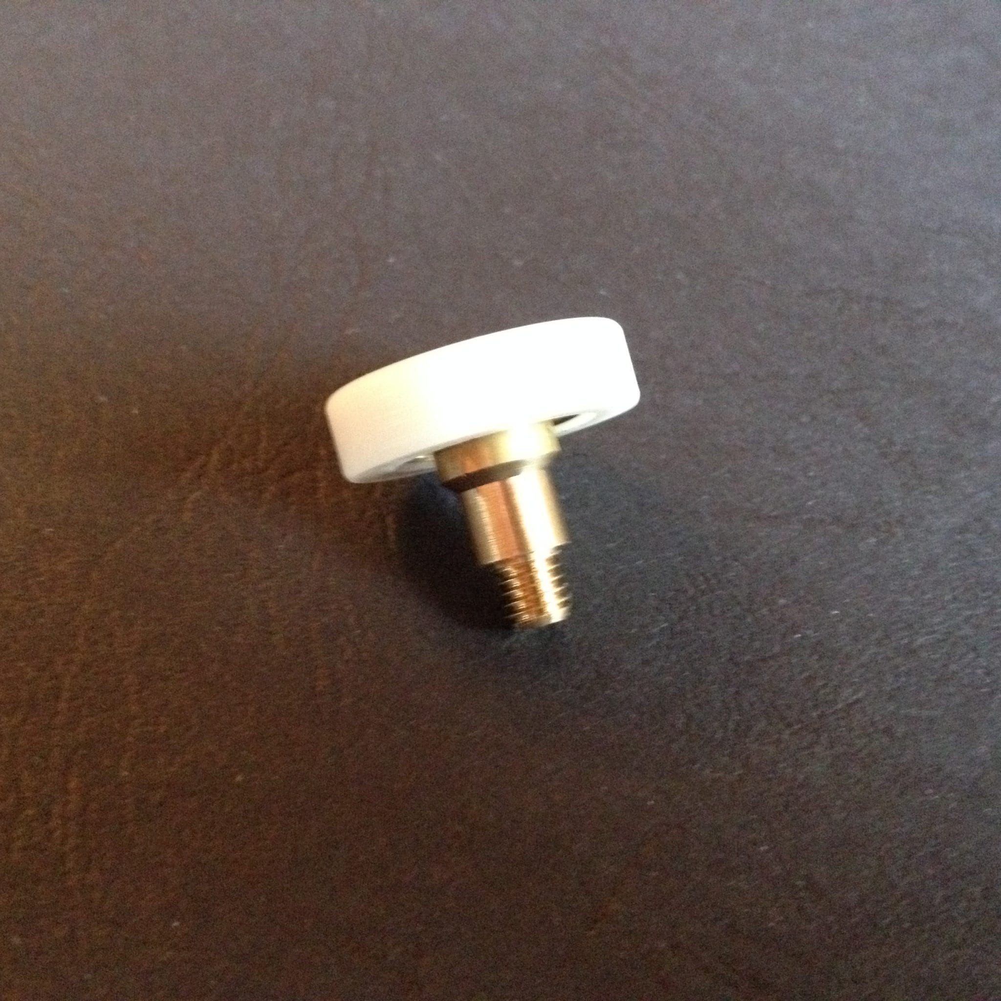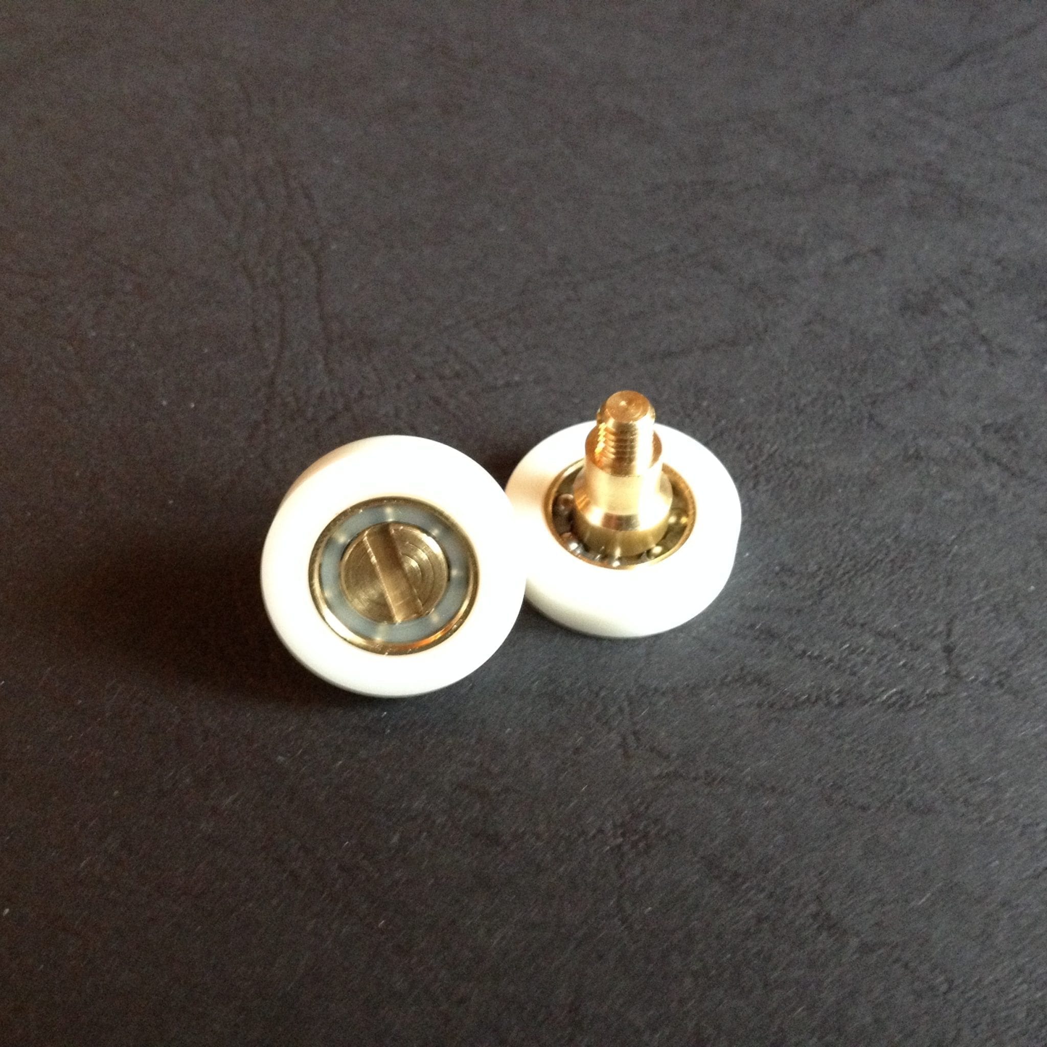 Roulette droite simple pour porte coulissante de cabine de douche. Vendue à l’unité, cette roulette se compose d’un corps en laiton. Le bandage de la roulette est en téflon, recouvrant un roulement à billes étanche en acier inoxydable. Le choix et la qualité des matériaux employés offrent une utilisation optimale de confort, limitant ainsi le frottement et le bruit lors de la manipulation de la porte.