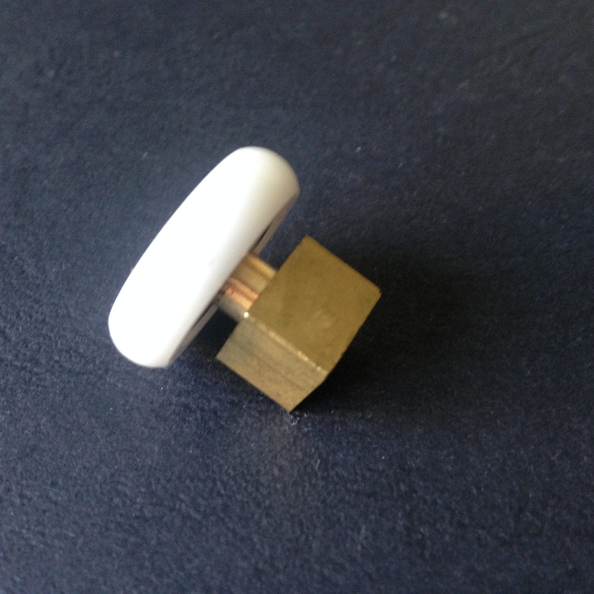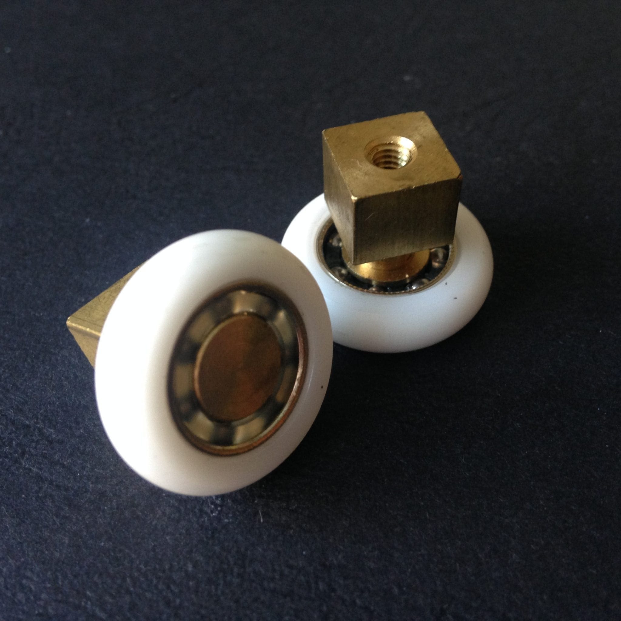 Roulette droite simple pour porte coulissante de cabine de douche. Vendue à l’unité, cette roulette se compose d’un corps en laiton. Le bandage de la roulette est en téflon, recouvrant un roulement à billes étanche en acier inoxydable. Le choix et la qualité des matériaux employés offrent une utilisation optimale de confort, limitant ainsi le frottement et le bruit lors de la manipulation de la porte.