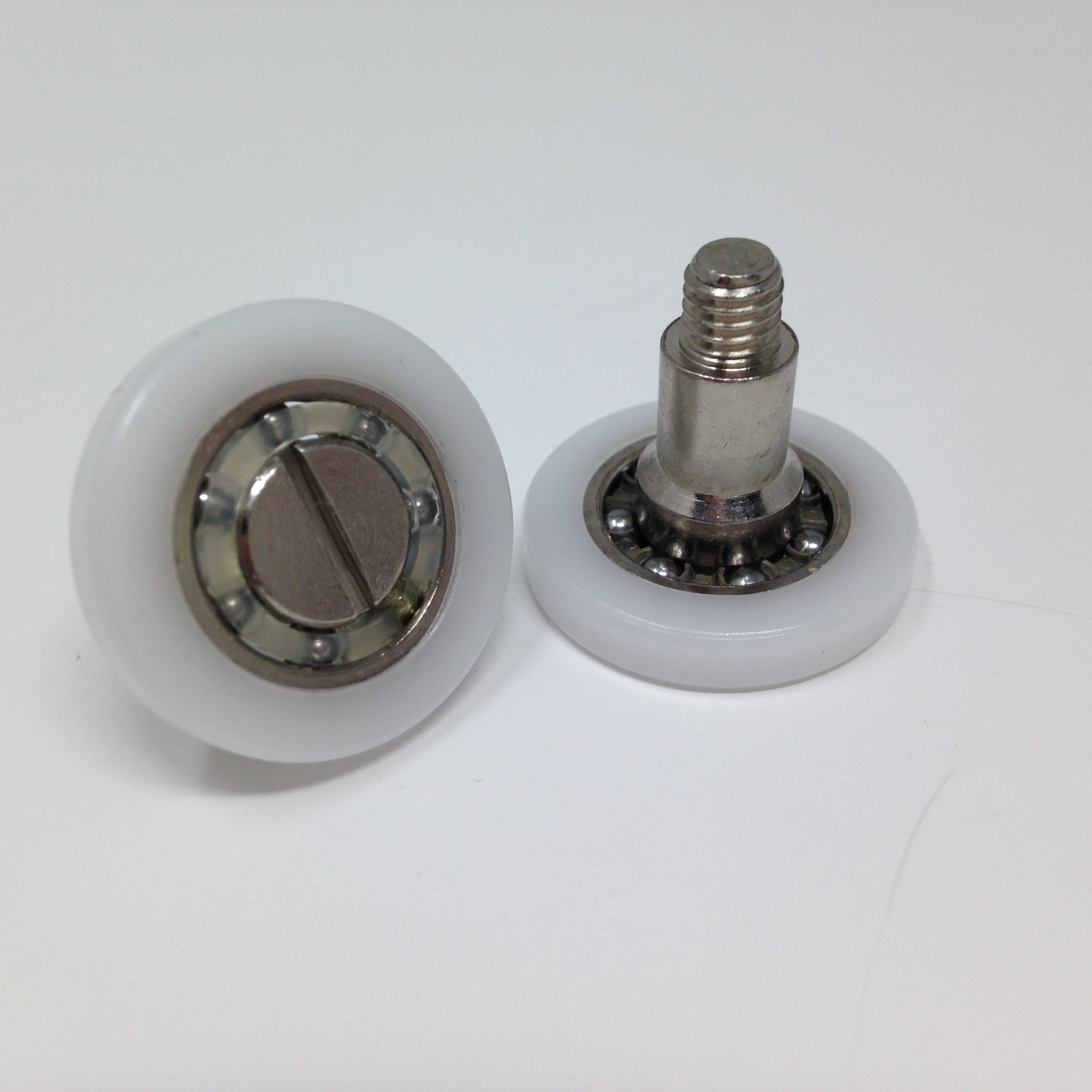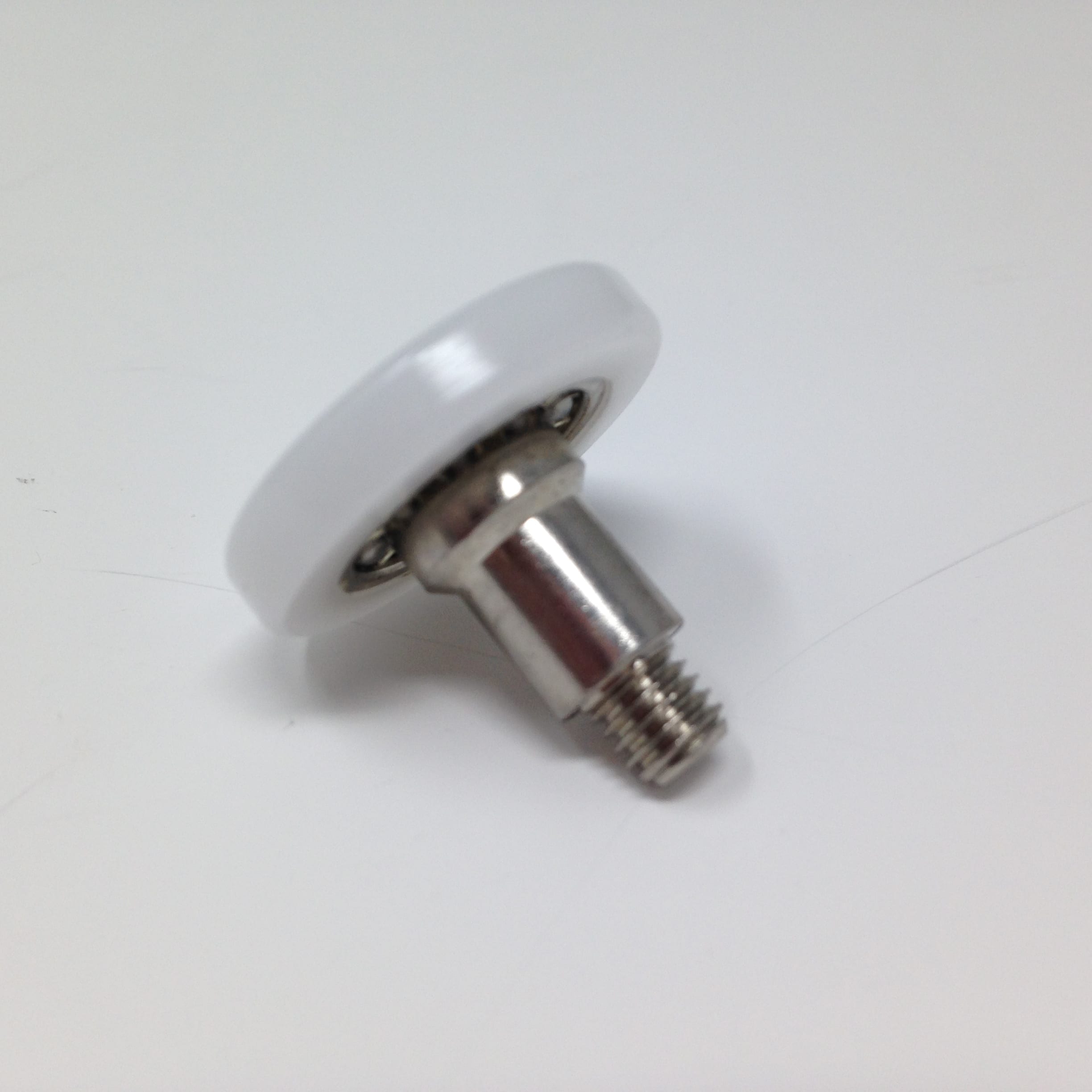 Roulette droite simple pour porte coulissante de cabine de douche. Vendue à l’unité, cette roulette se composent d’un corps en laiton. Le bandage plat de la roulette est en téflon, recouvrant un roulement à billes étanche en acier inoxydable. Le choix et la qualité des matériaux employés offrent une utilisation optimale de confort, limitant ainsi le frottement et le bruit lors de la manipulation de la porte.